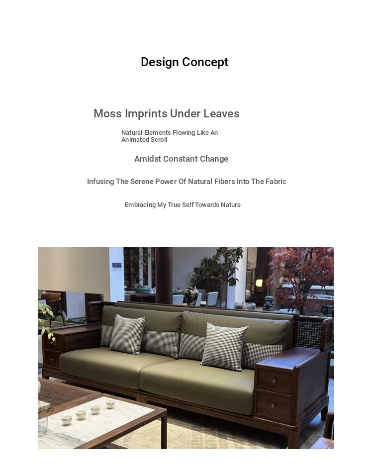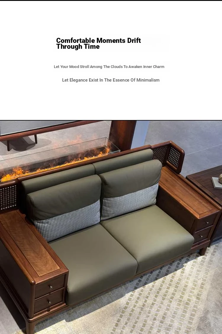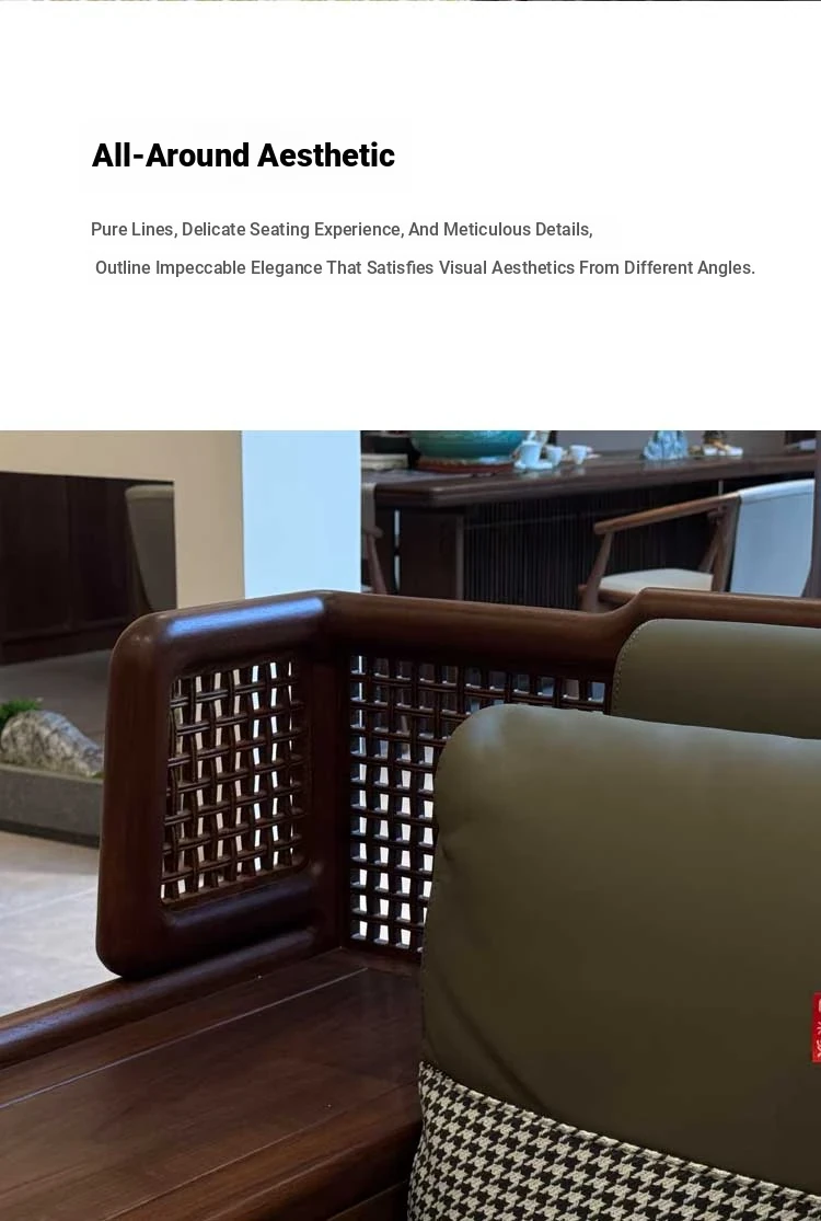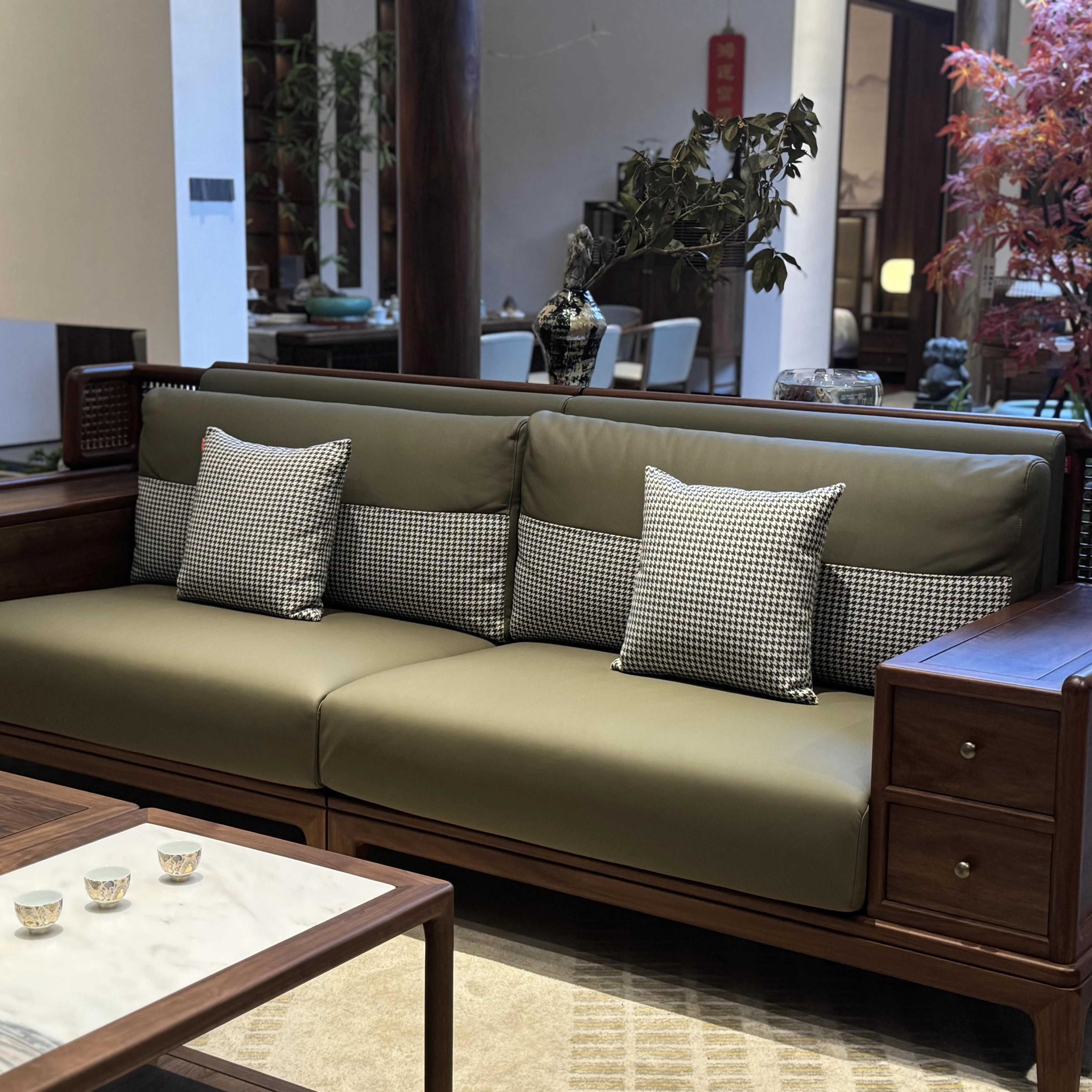 Modern Chinese Style Minimalist Sofa Set with Antique Black Walnut Coffee Table - Ideal for Living Room Furniture, Blending Tradition and Elegance.