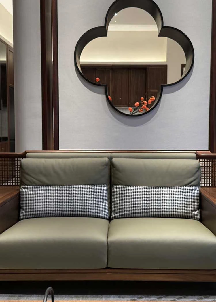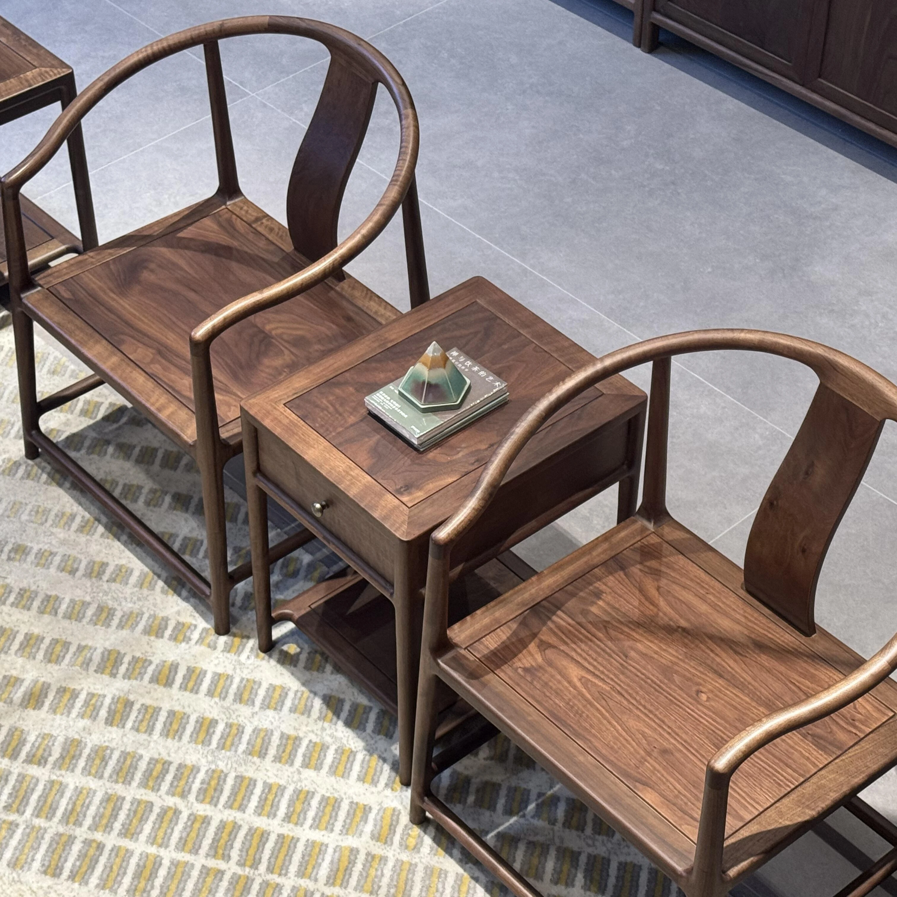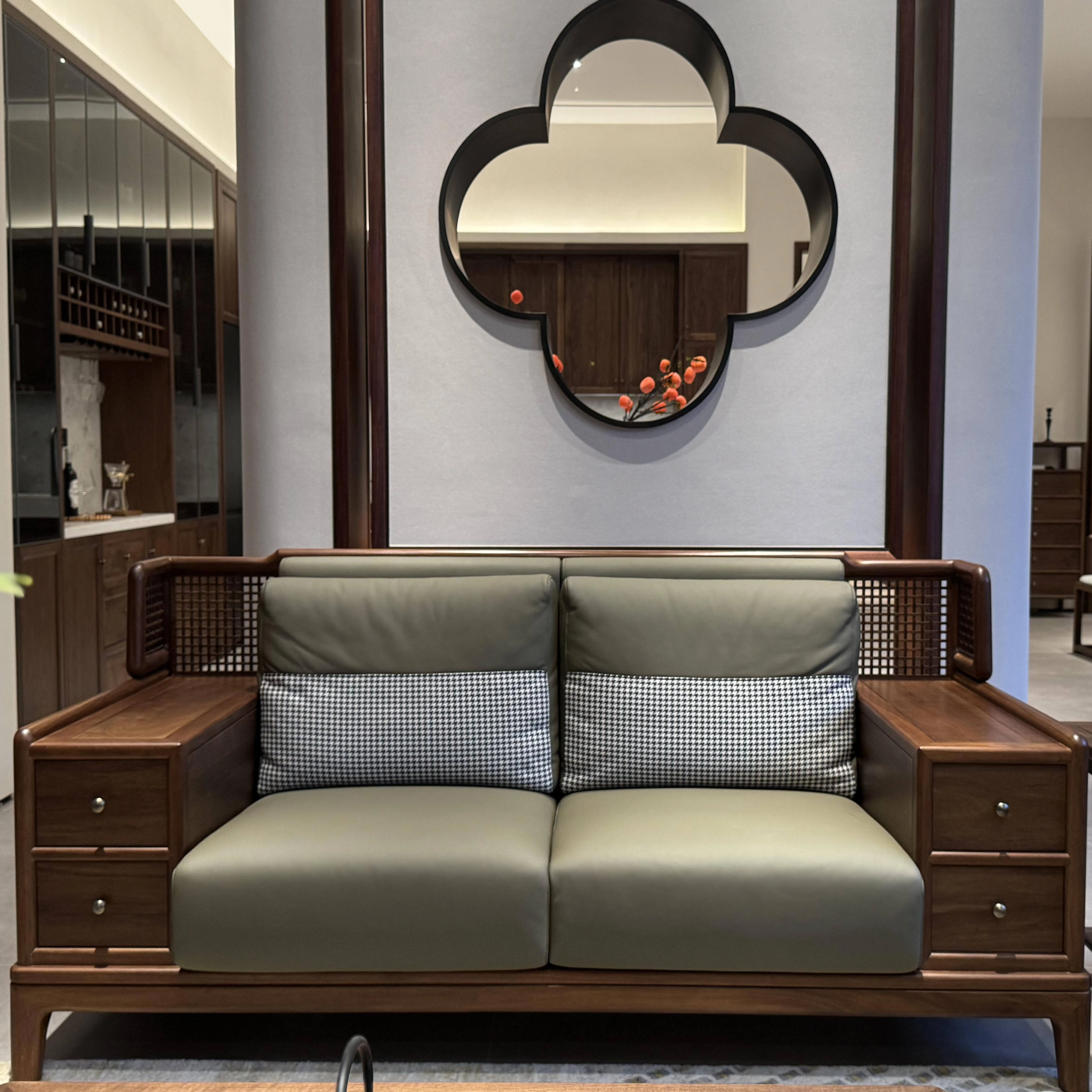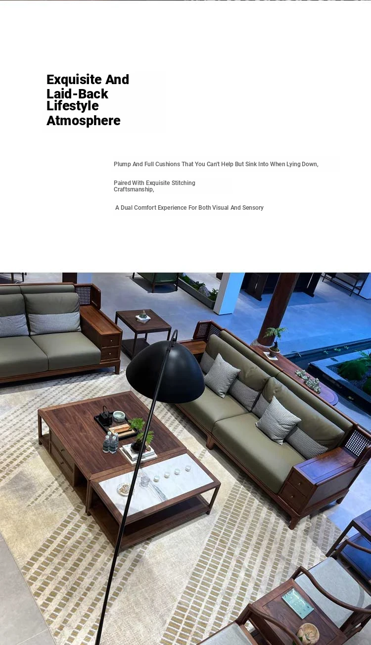 Modern Chinese Style Minimalist Sofa Set with Antique Black Walnut Coffee Table - Ideal for Living Room Furniture, Blending Tradition and Elegance.