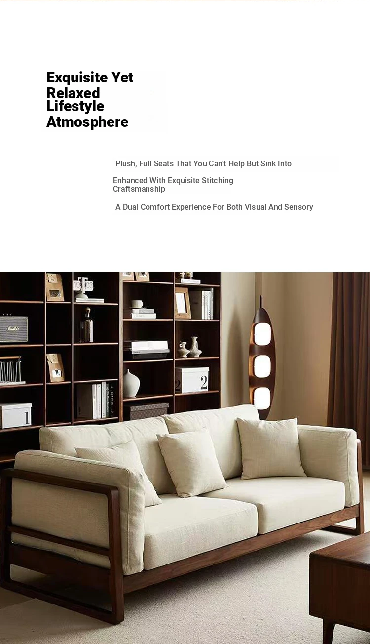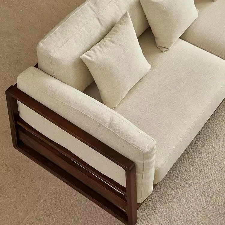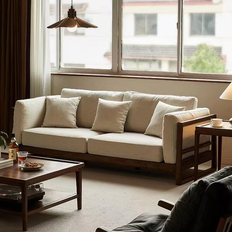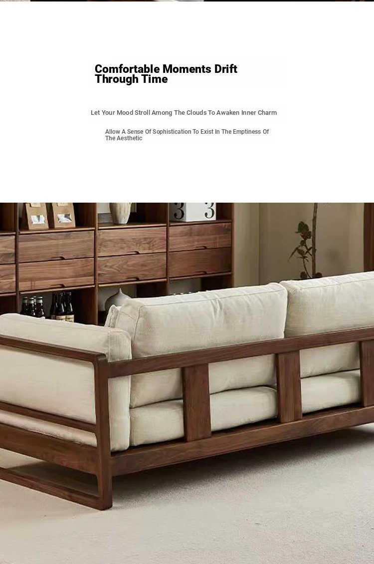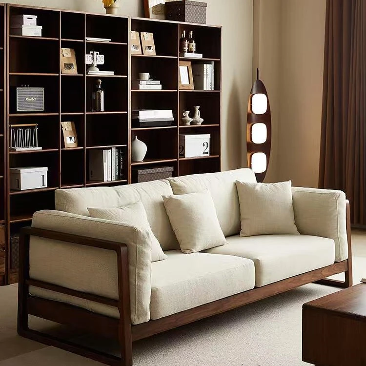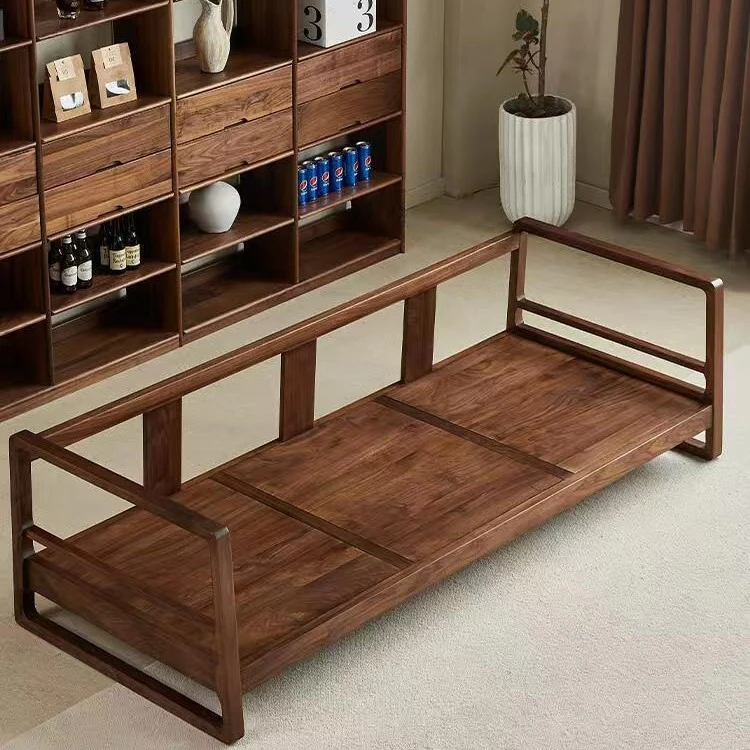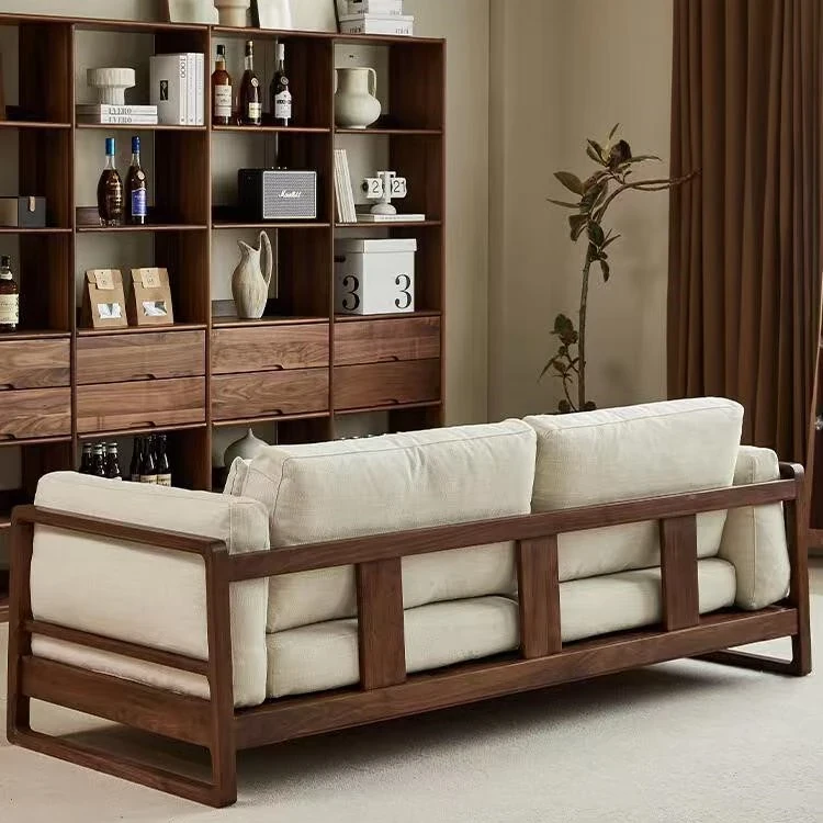Modern Chinese Style North American Black Walnut and Ash Wood Sofa - Perfect for Offices, B&Bs, and Hotels - Contemporary Leisure Furniture for a Chic Atmosphere