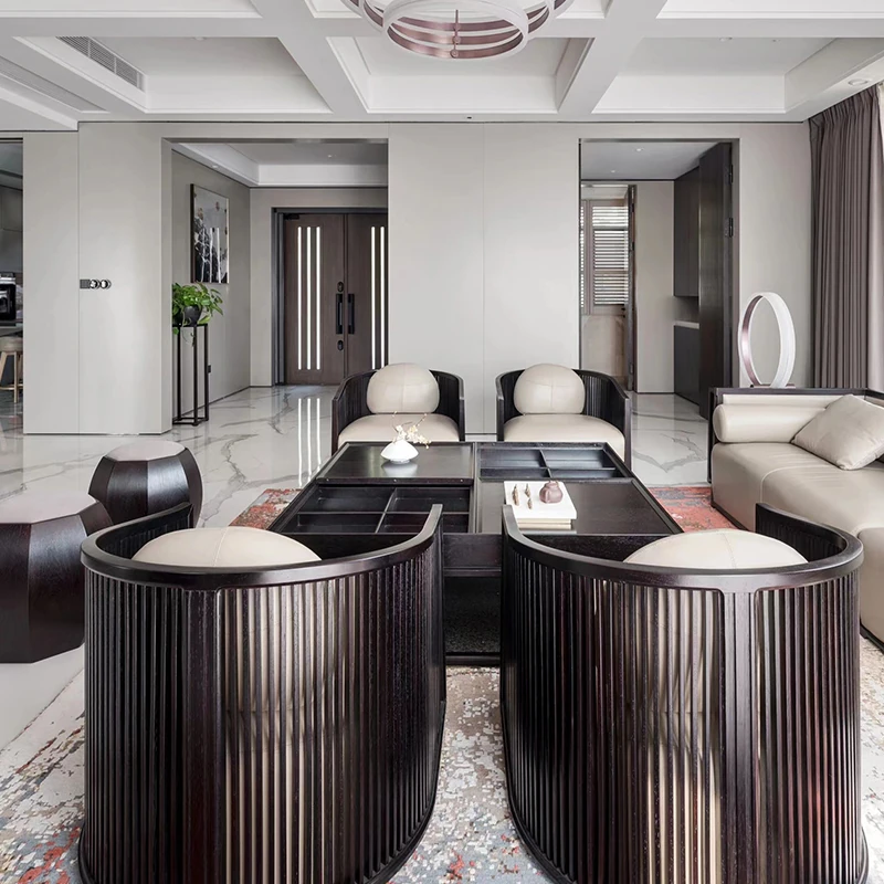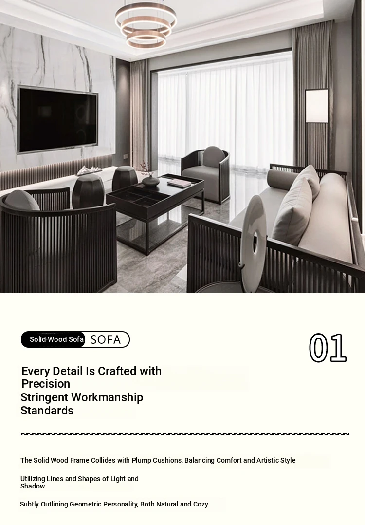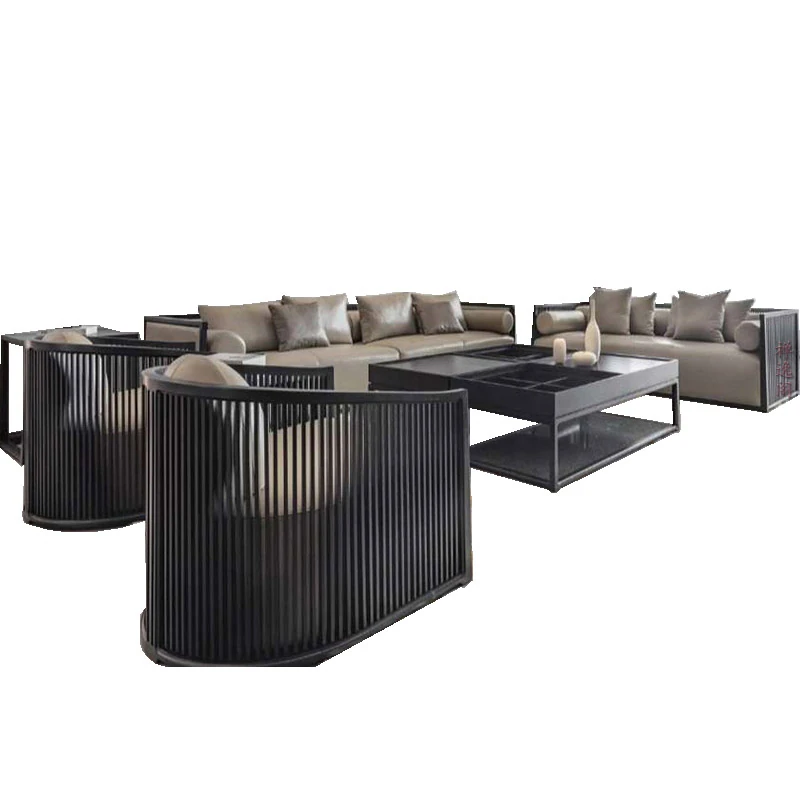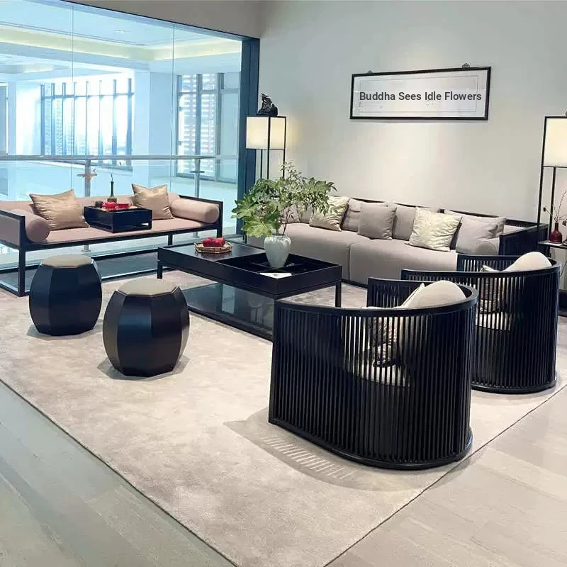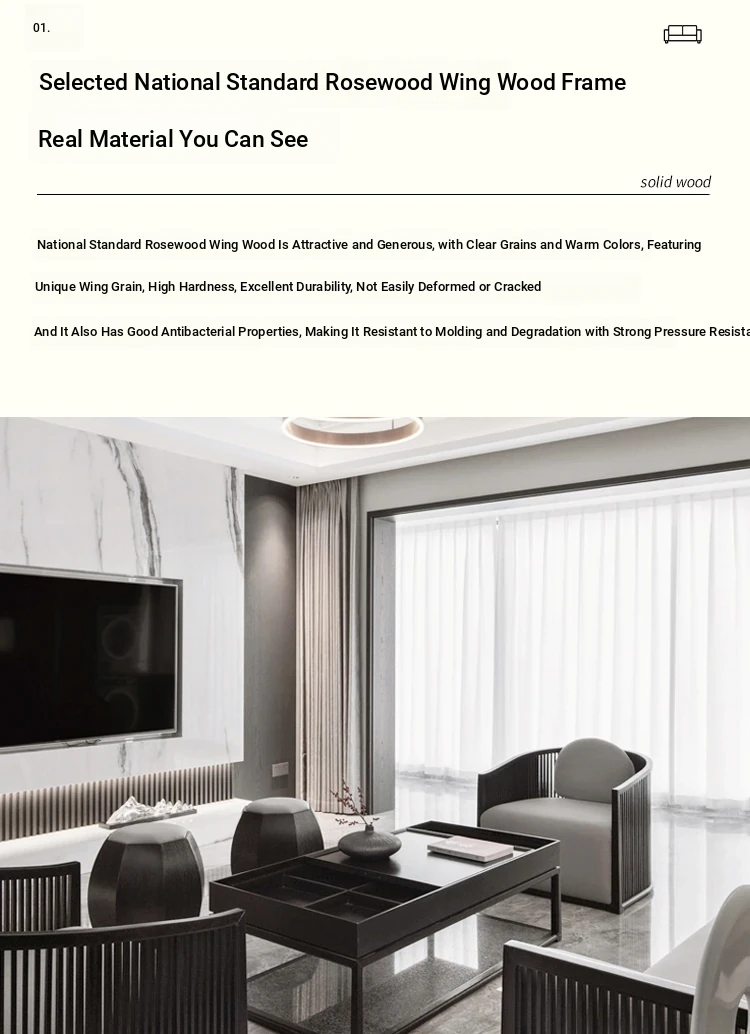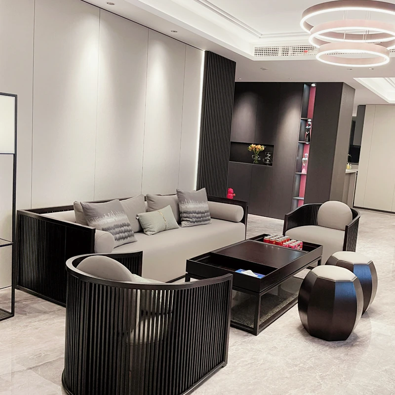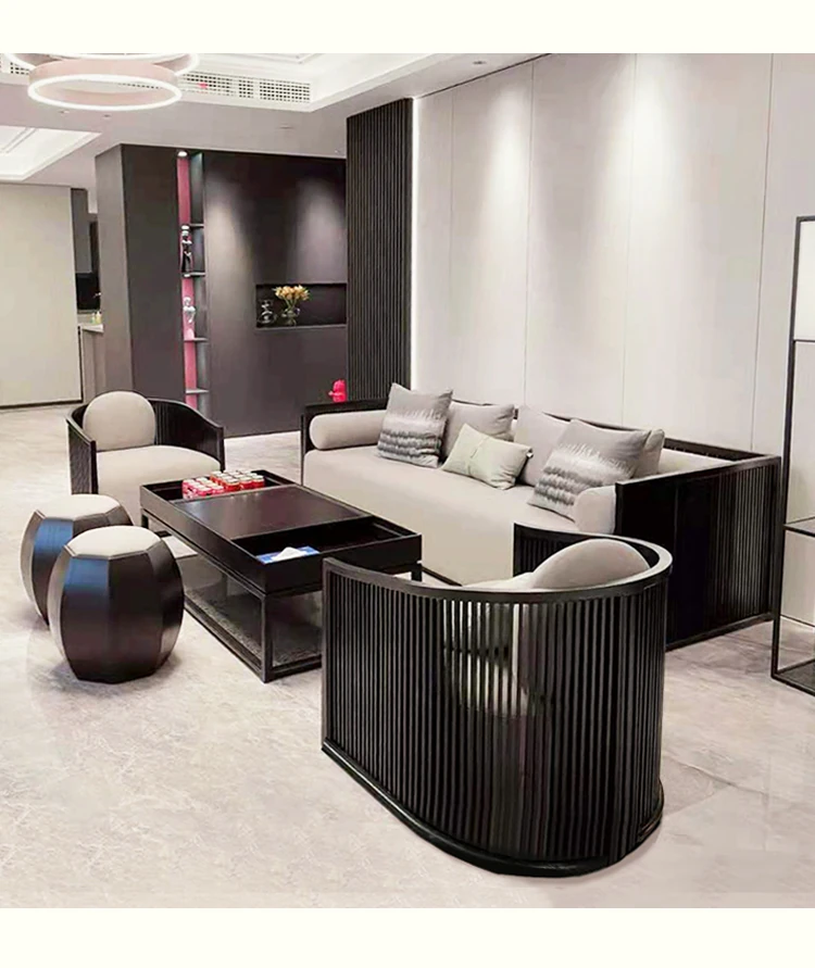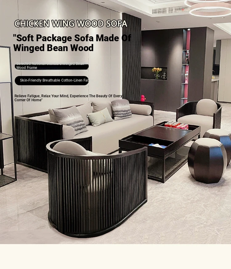 Modern Chinese Style Sofa Set - Elegant Minimalist Design in Premium Chicken Wing Wood for Villas, Living Rooms, and Boutique Hotels. Perfect Furniture for Sample Rooms!