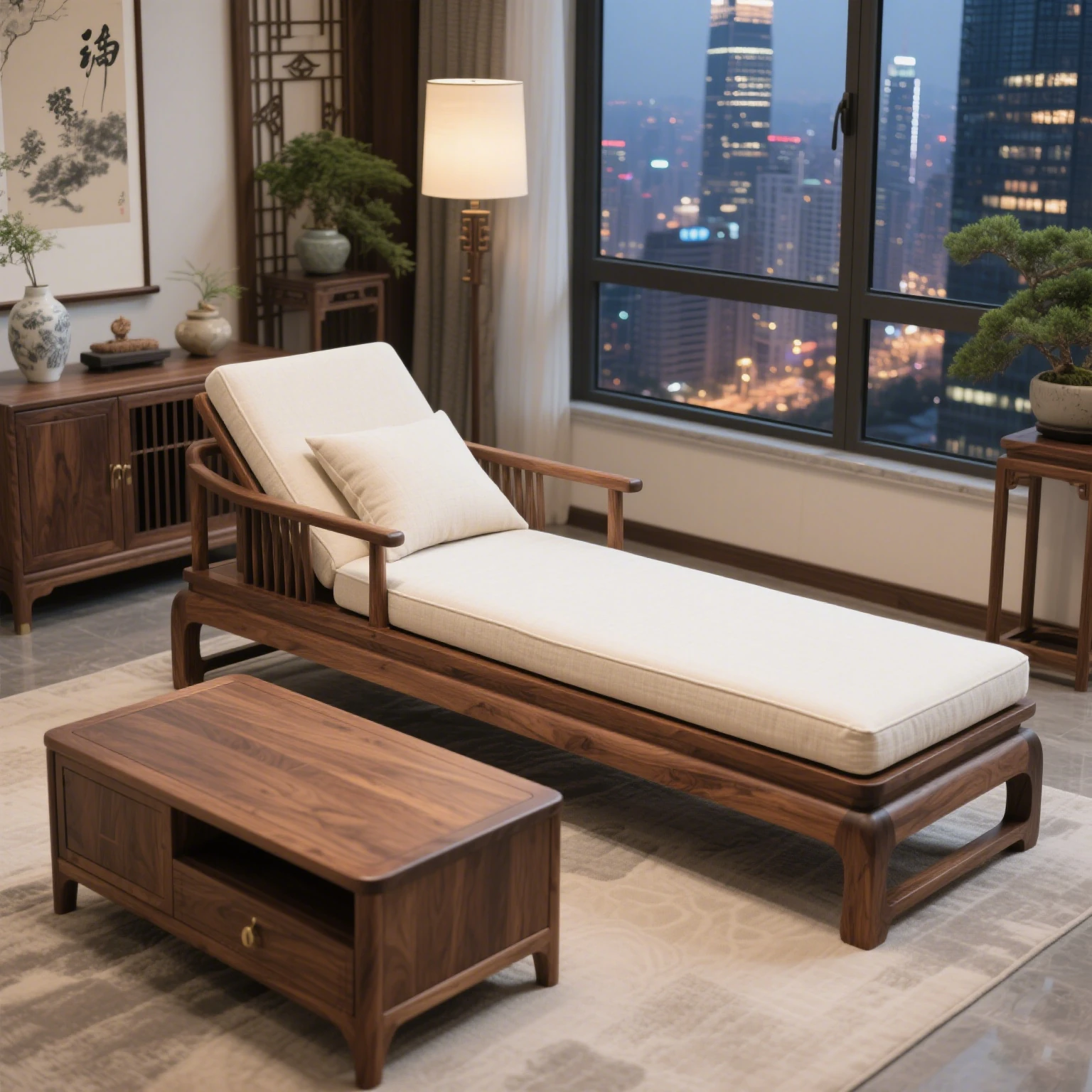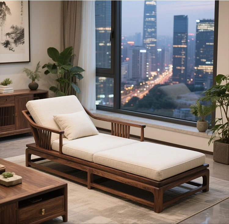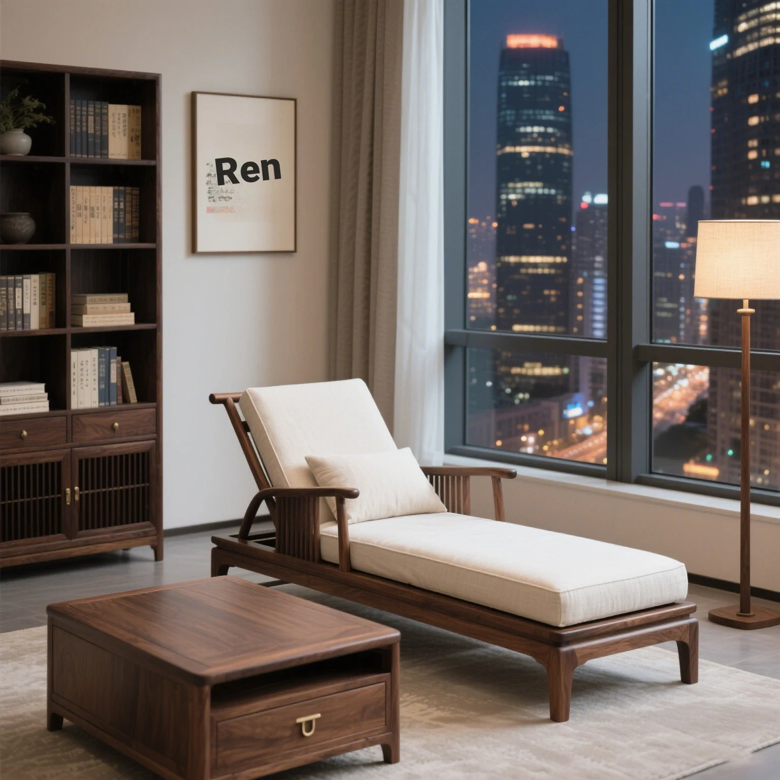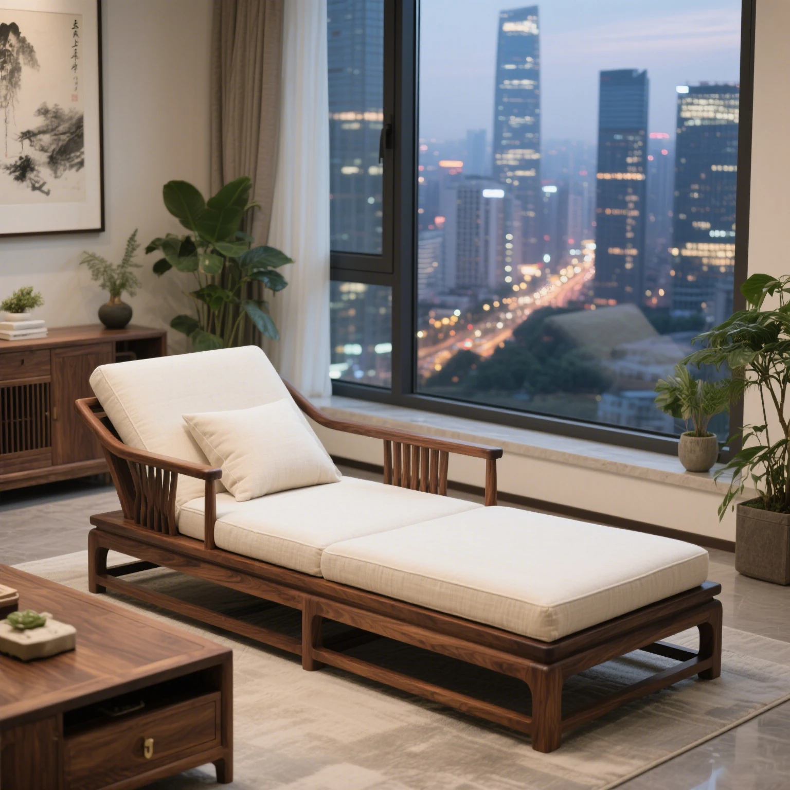 Modern Chinese Style Solid Black Walnut Lounge Chair - Versatile Chaise for Balcony and Living Room, Perfect for Relaxation and Office Use, Ideal for Sitting or Napping