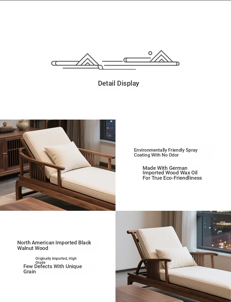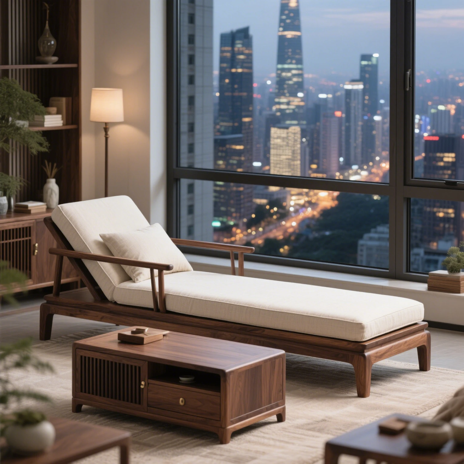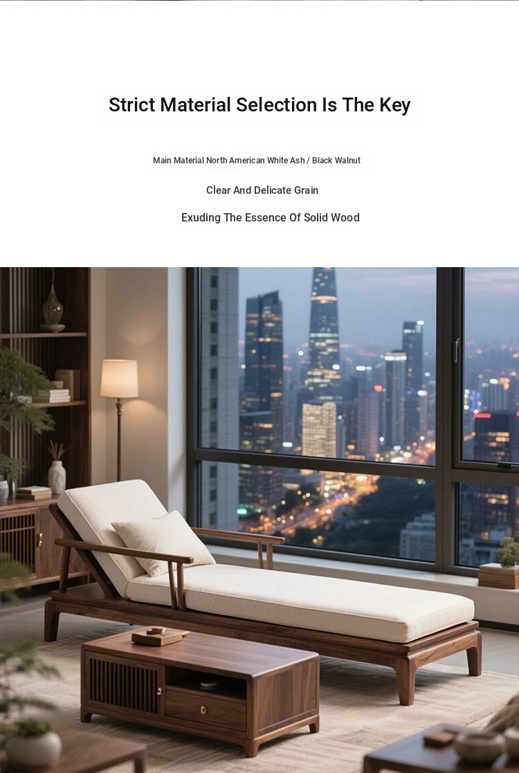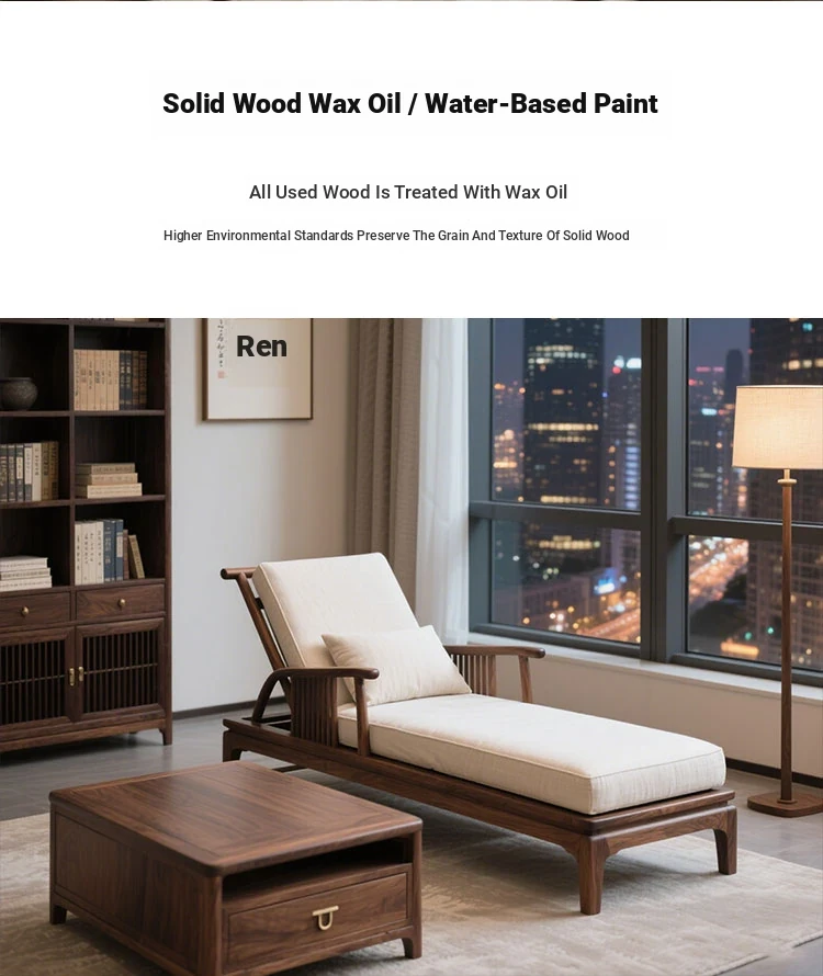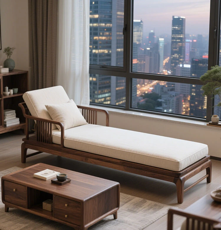 Modern Chinese Style Solid Black Walnut Lounge Chair - Versatile Chaise for Balcony and Living Room, Perfect for Relaxation and Office Use, Ideal for Sitting or Napping