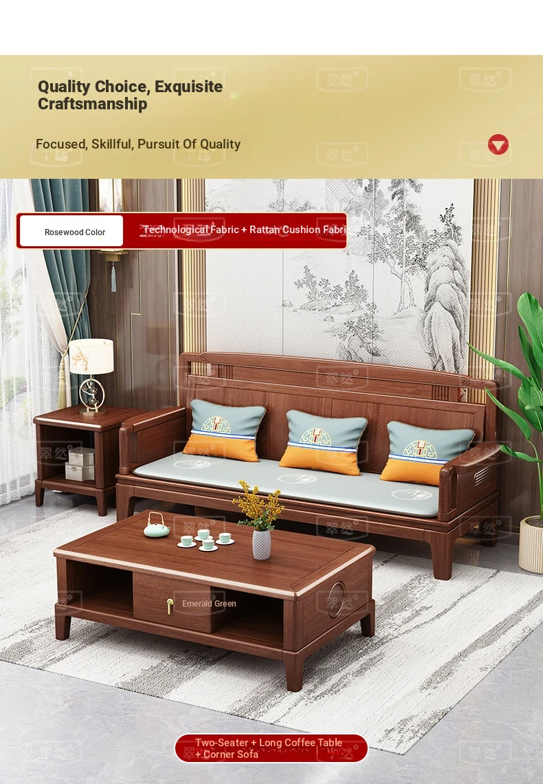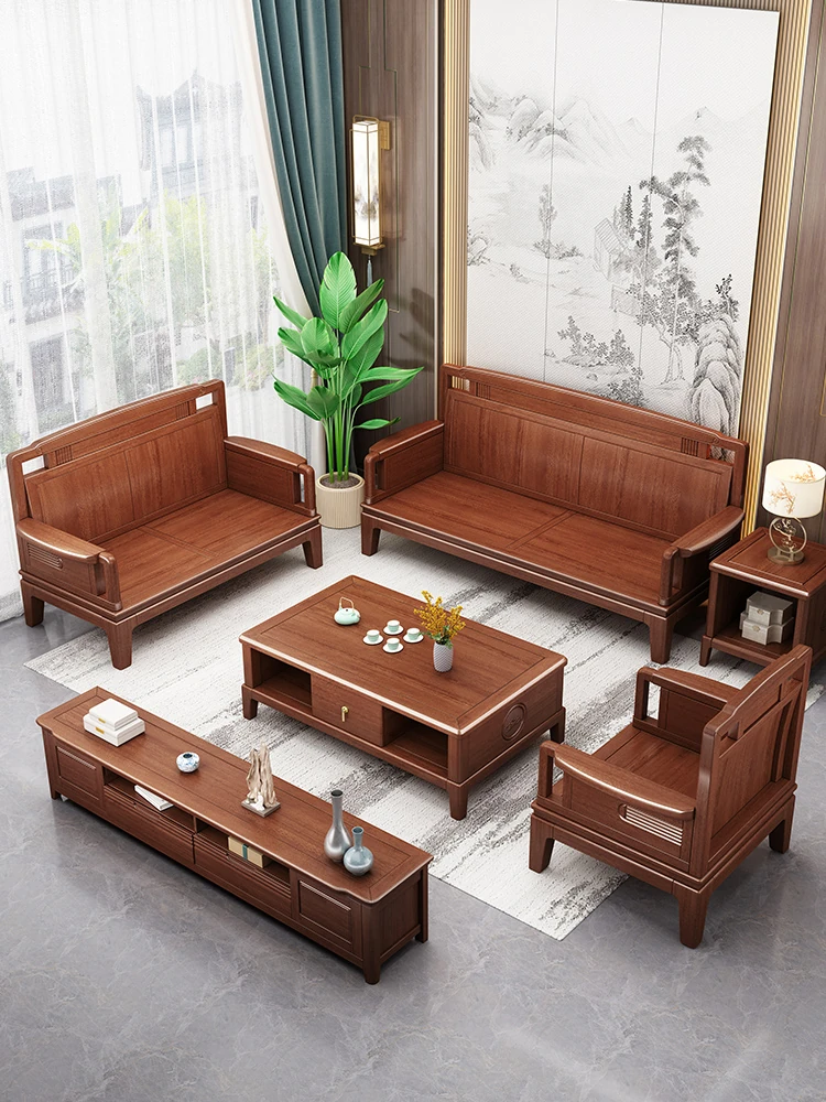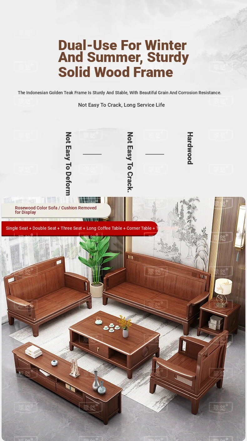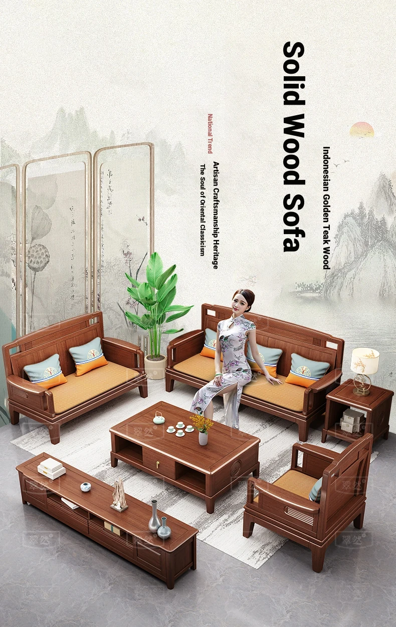 Modern Chinese Style Solid Wood Sofa Set - Elegant Three-Seater for Small Living Rooms, Versatile for All Seasons, Minimalist Design