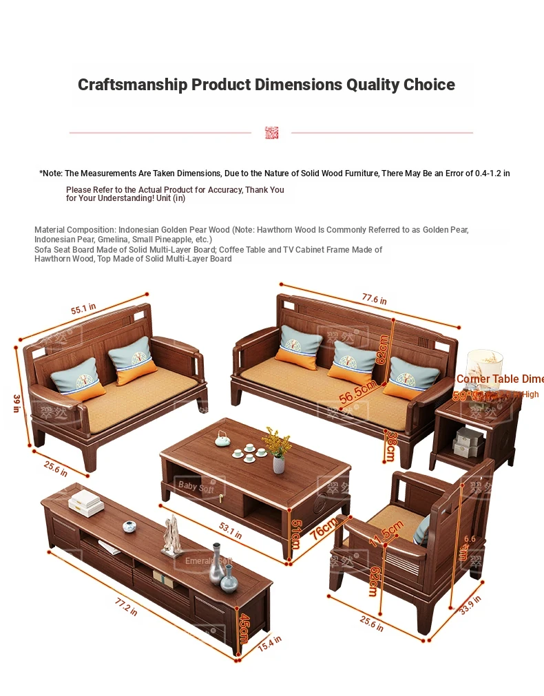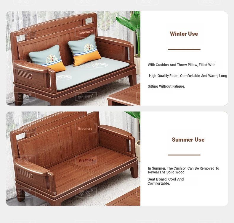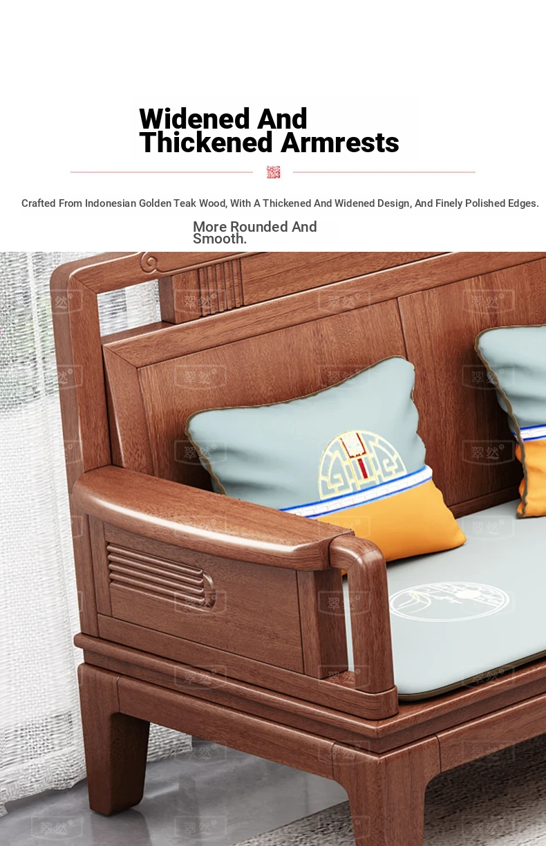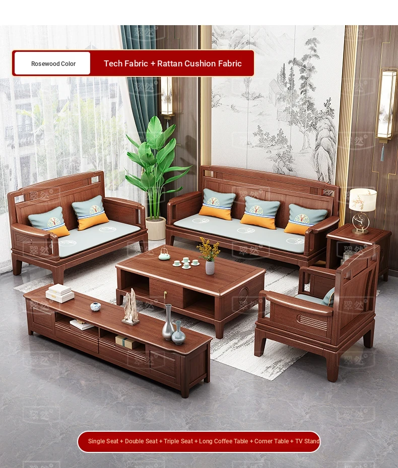 Modern Chinese Style Solid Wood Sofa Set - Elegant Three-Seater for Small Living Rooms, Versatile for All Seasons, Minimalist Design