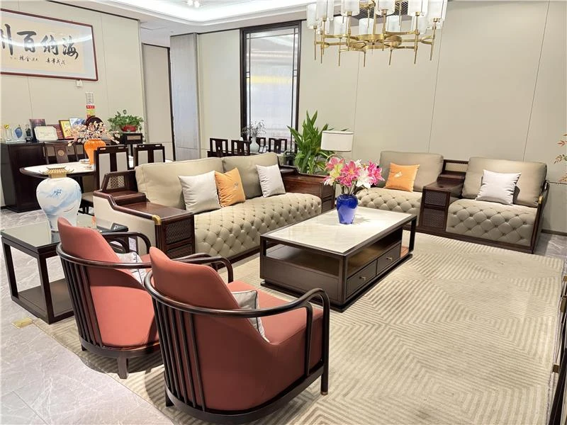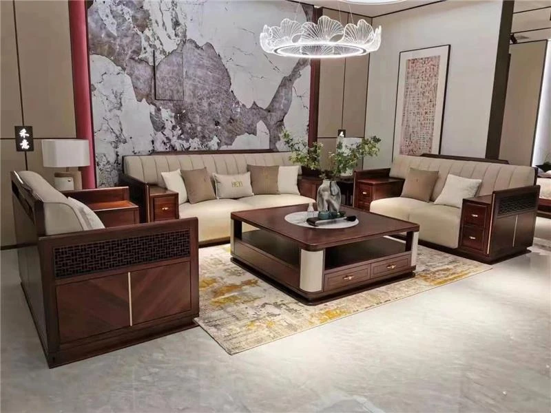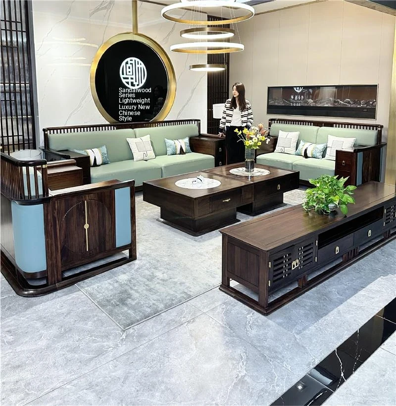 Modern Chinese Style Solid Wood Sofa Set with Black Gold Wood for Spacious Master Bedroom - Elegant and Minimalist Design for Luxury Villas and Large Apartments
