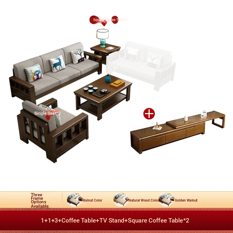 Four persons + imperial concubine + middle box + tea table + TV cabinet + single person