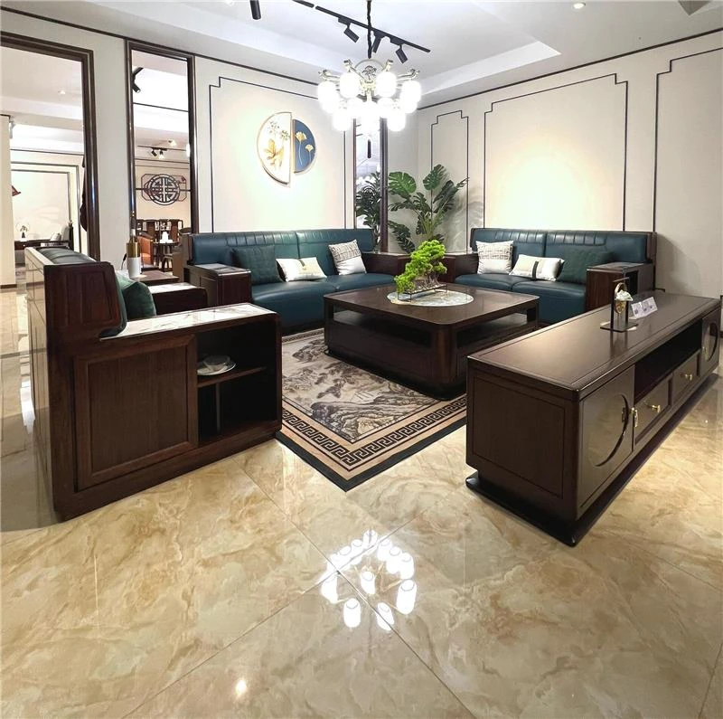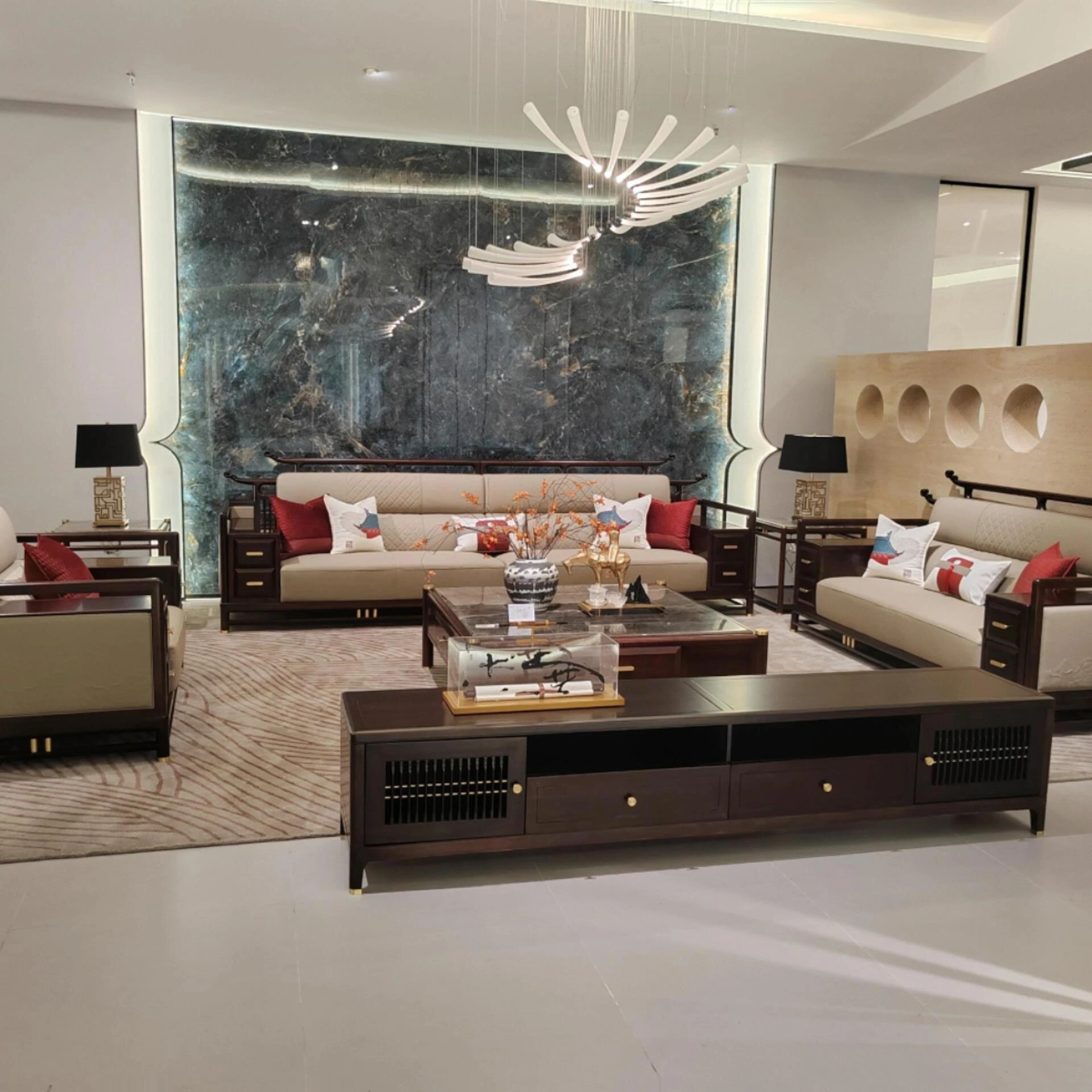 Modern Minimalist New Chinese Style Black Walnut Sofa for Living Room - Ideal for Spacious Villas and Clubs, Perfect for Home Use