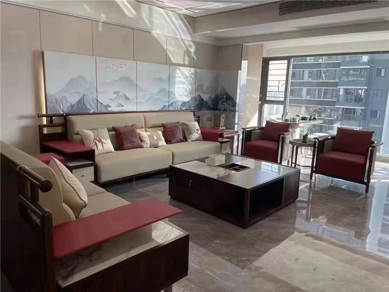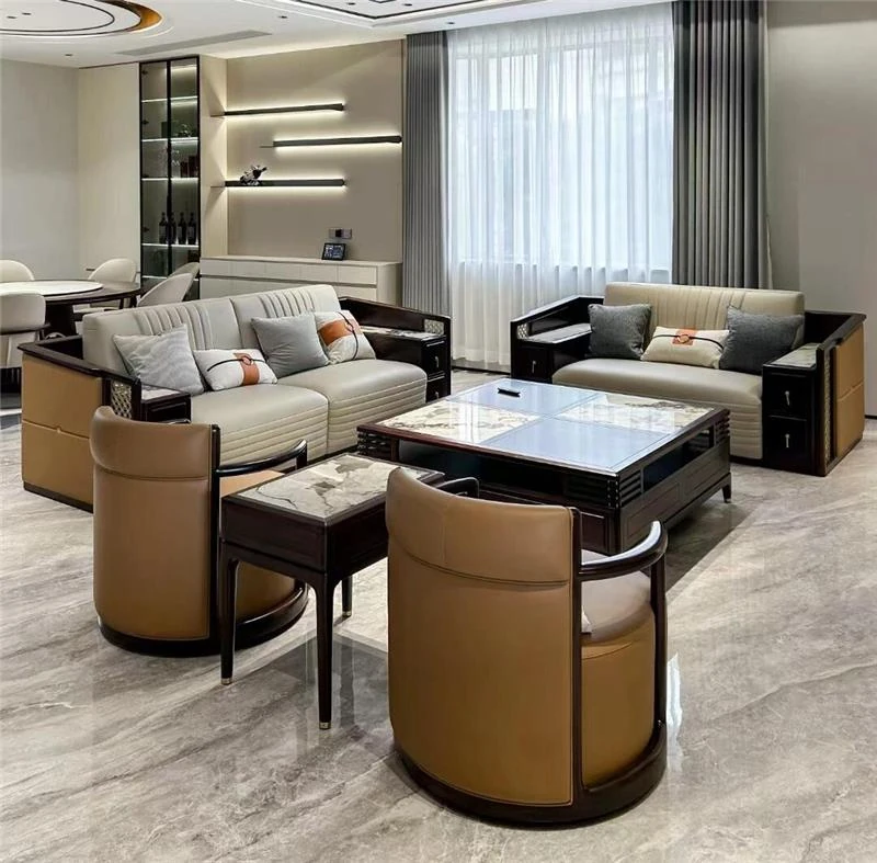 Modern Minimalist New Chinese Style Wujin Wood Sofa Set for Master Bedroom - Solid Wood, Perfect for Large Villas, Luxury Homes, and Spacious Apartments