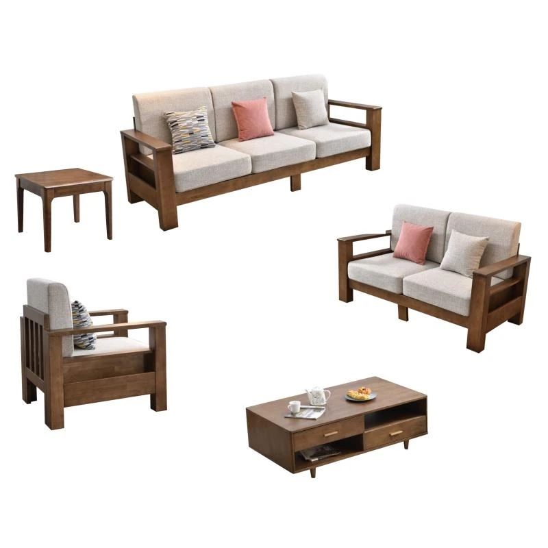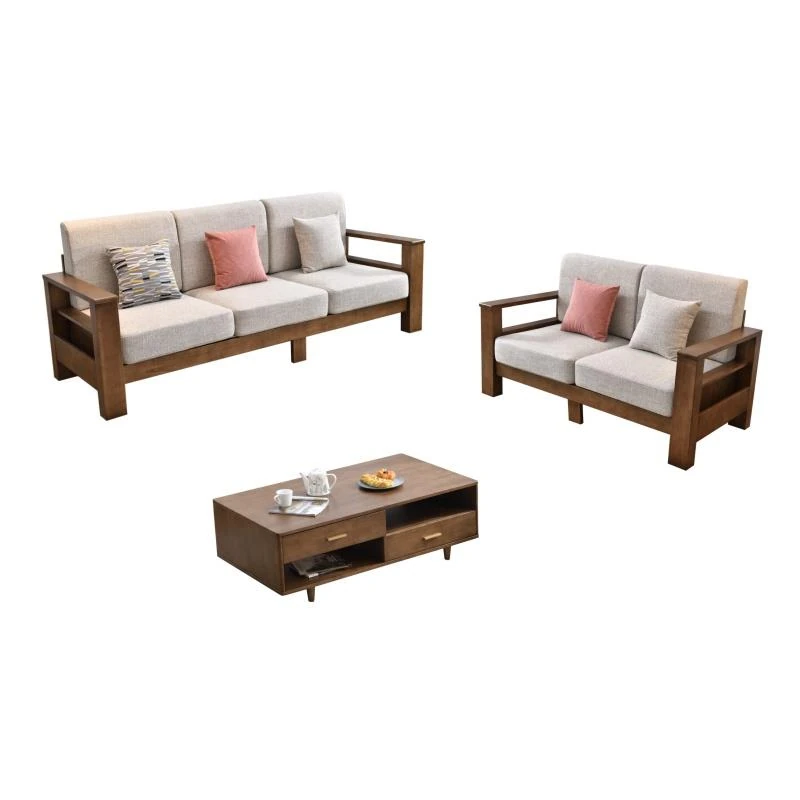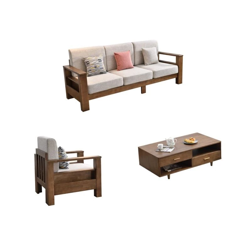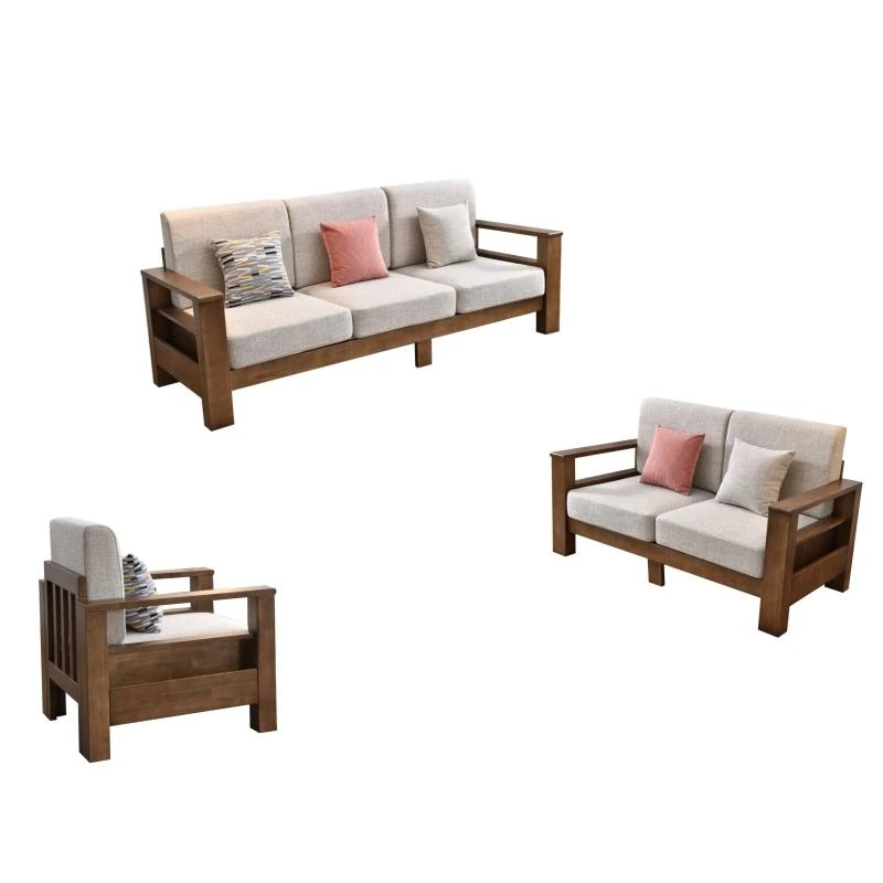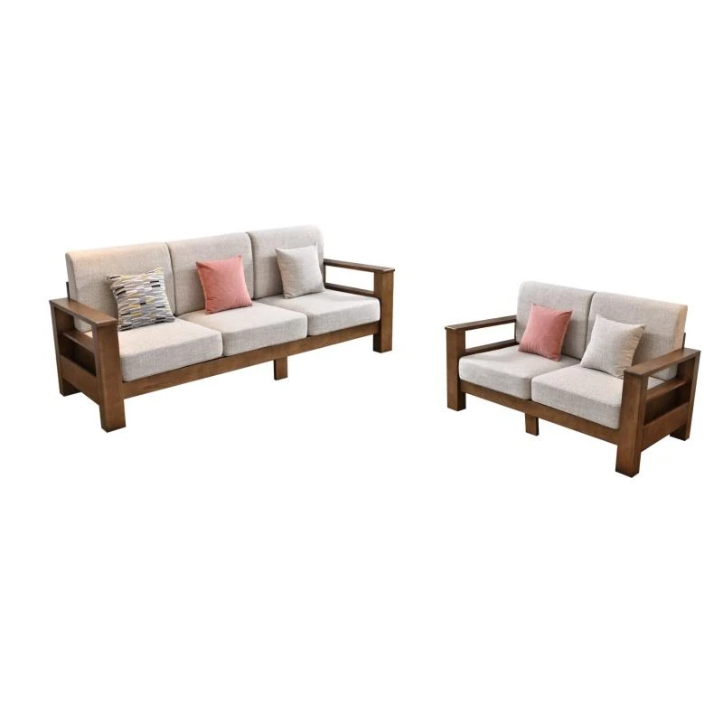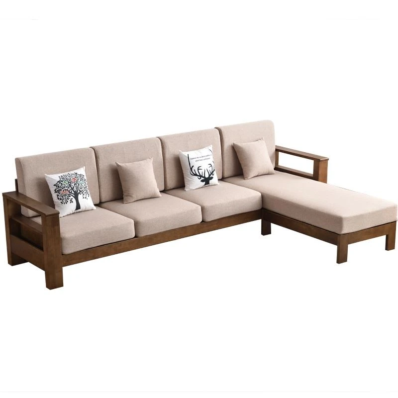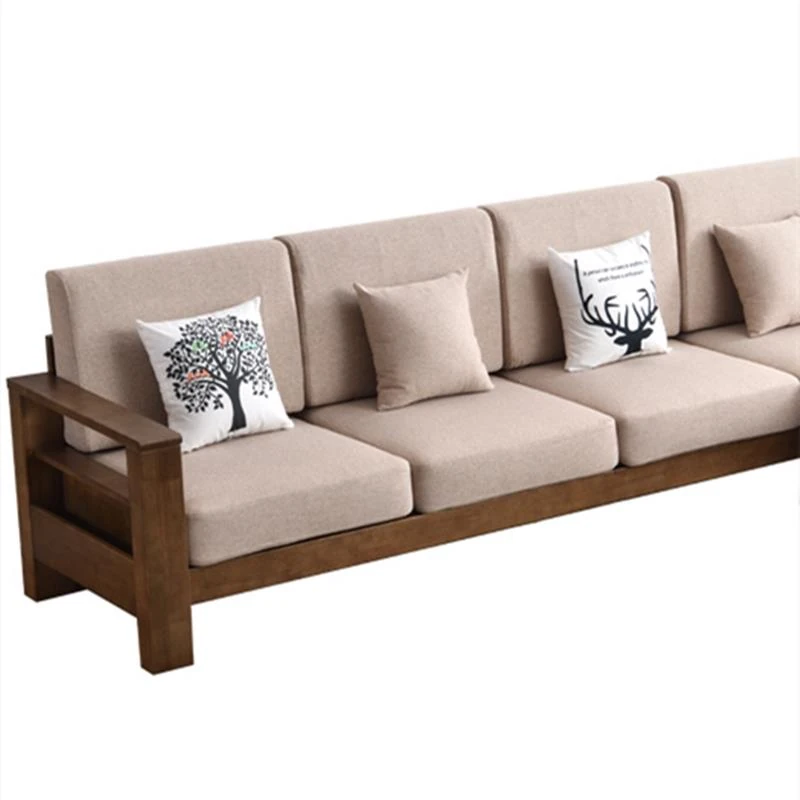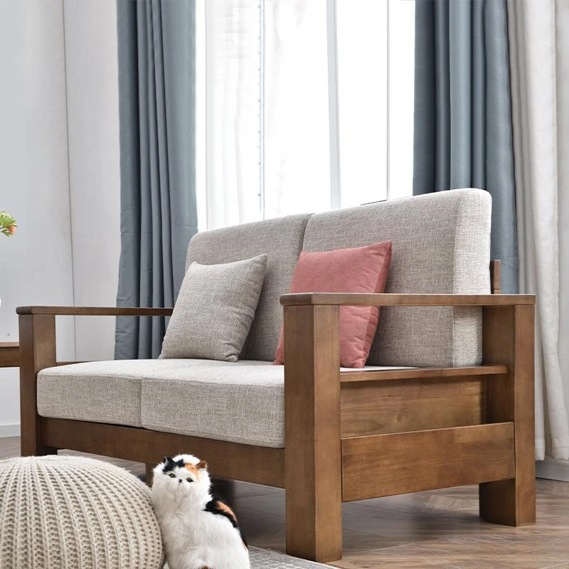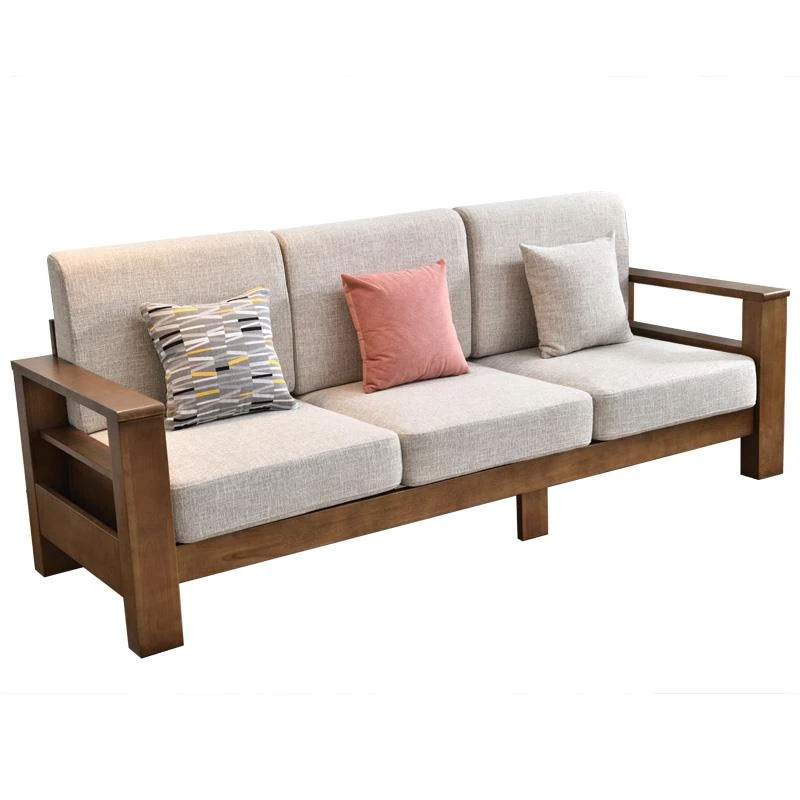 Modern Minimalist Solid Wood Sofa - New Chinese Style, Corner Chaise Lounge, Nordic 3-Seater Fabric Sofa for Small Living Rooms