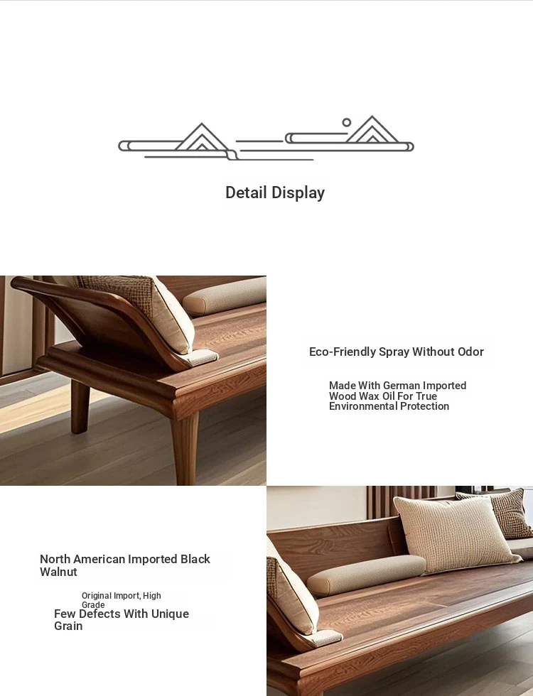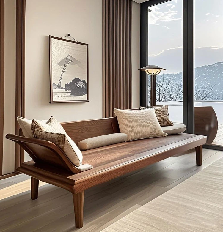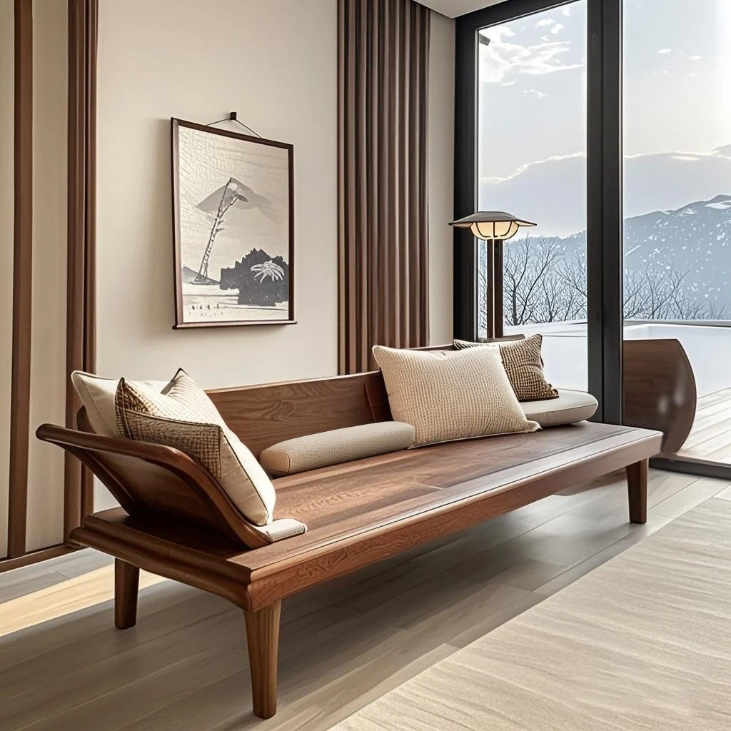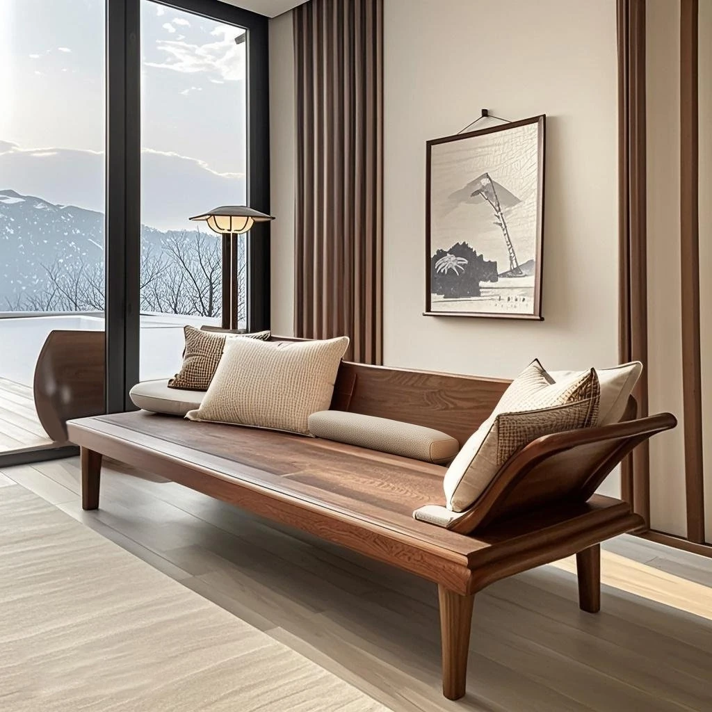 Modern Minimalist Zen Black Walnut Solid Wood Chaise Lounge - High-End Luxury Daybed for Living Room and Bedroom