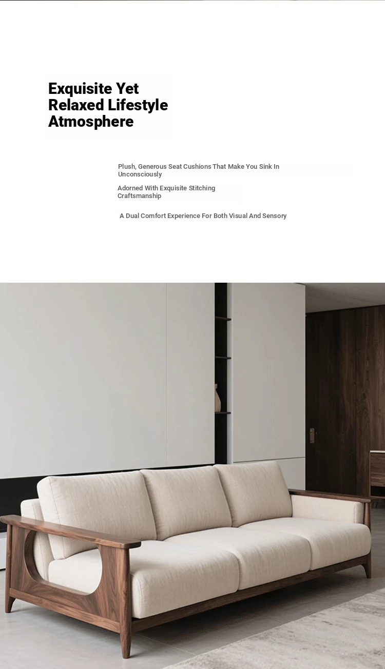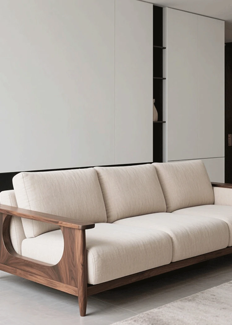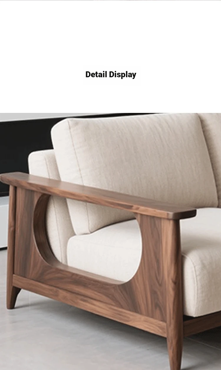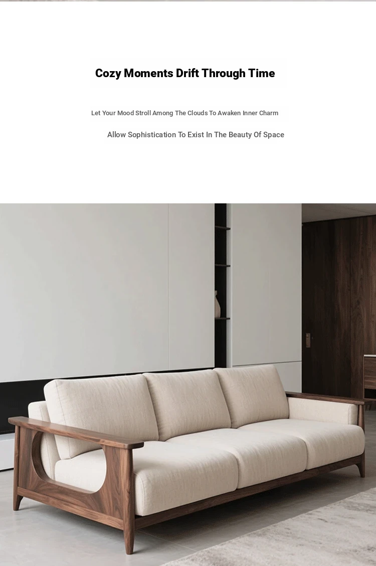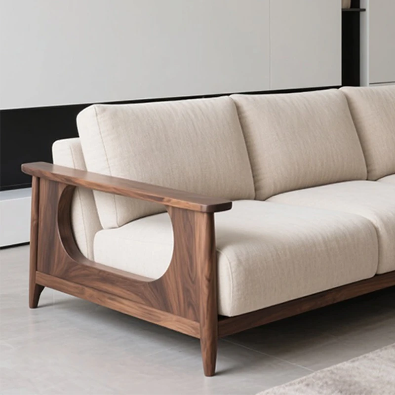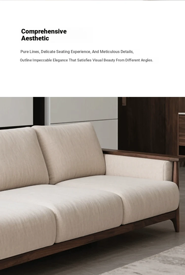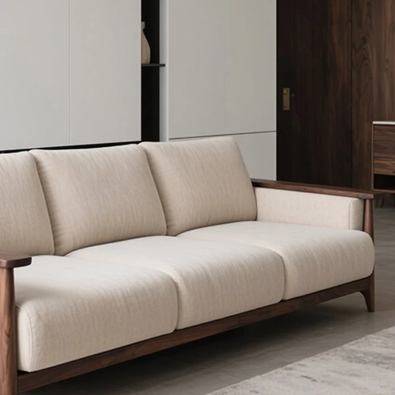 Modern New Chinese Style Sofa 2025 - Premium Walnut Wood Solid Three-Seat Couch for Living Room, Elegant Fabric Design for Contemporary Comfort