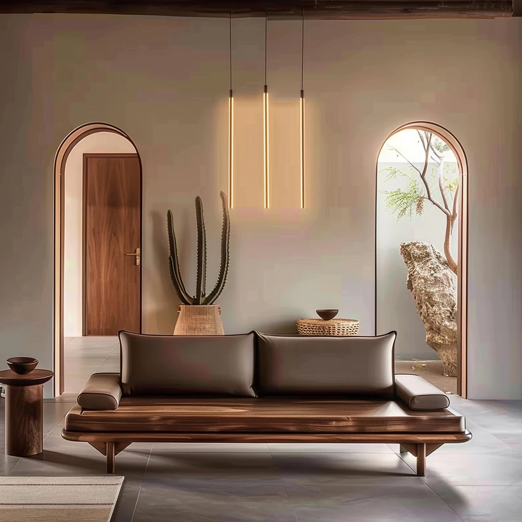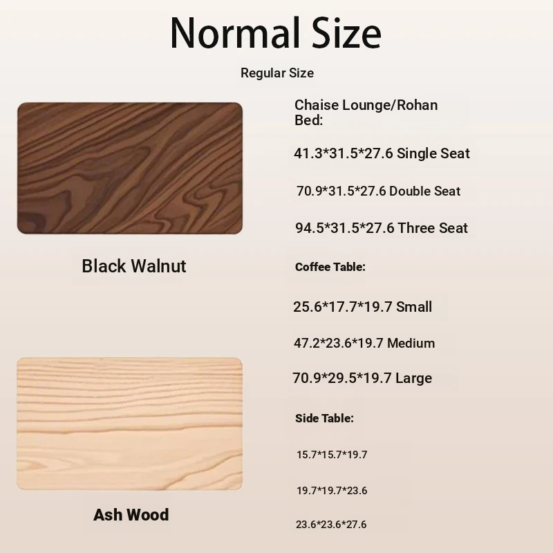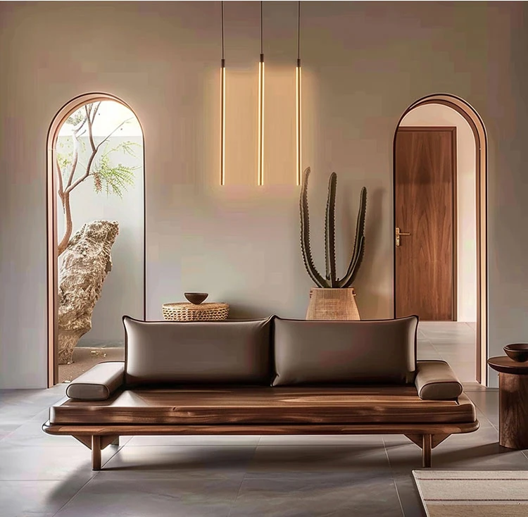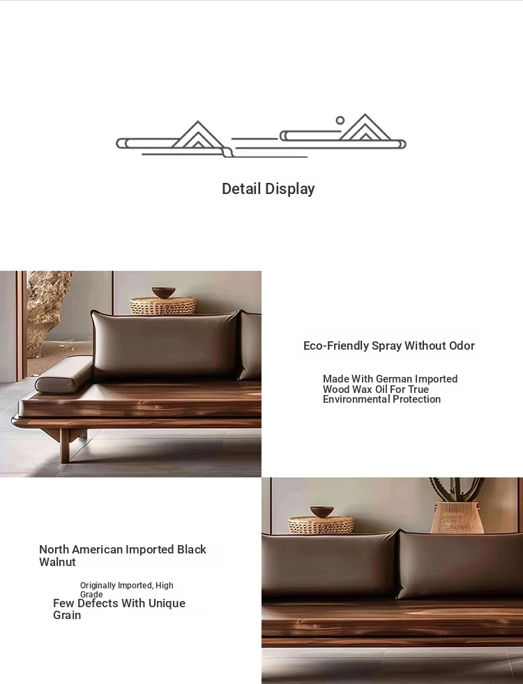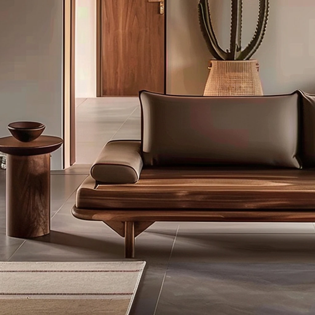 Modern Zen Style North American Black Walnut Rohan Bed - Solid Wood Sofa Bed for Living Room, Minimalist Italian Chaise Lounge