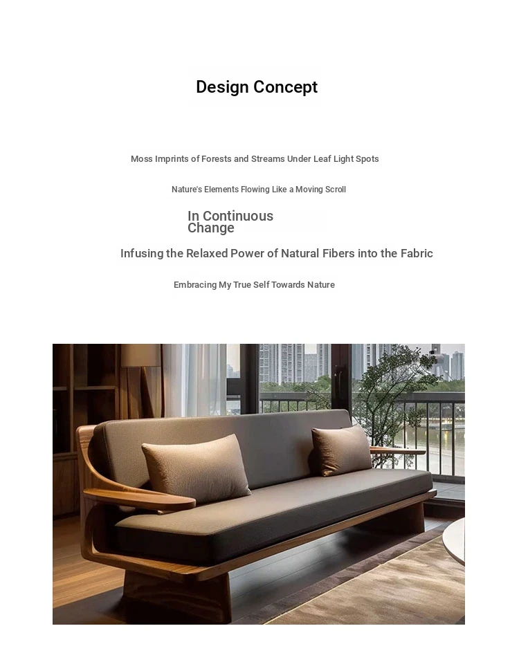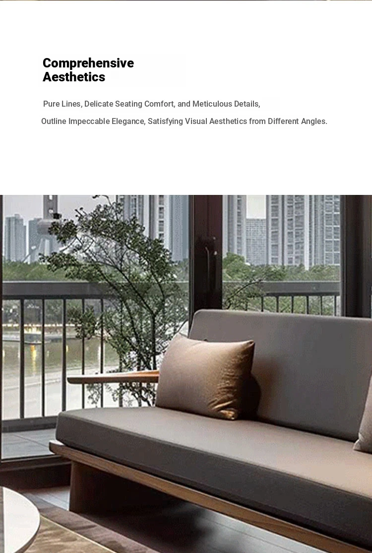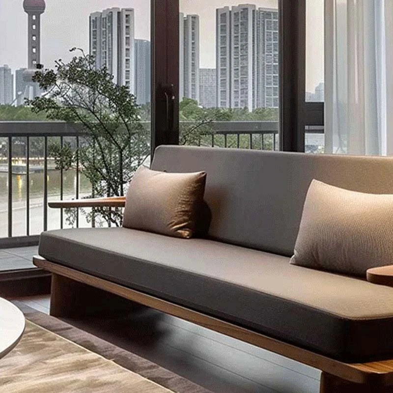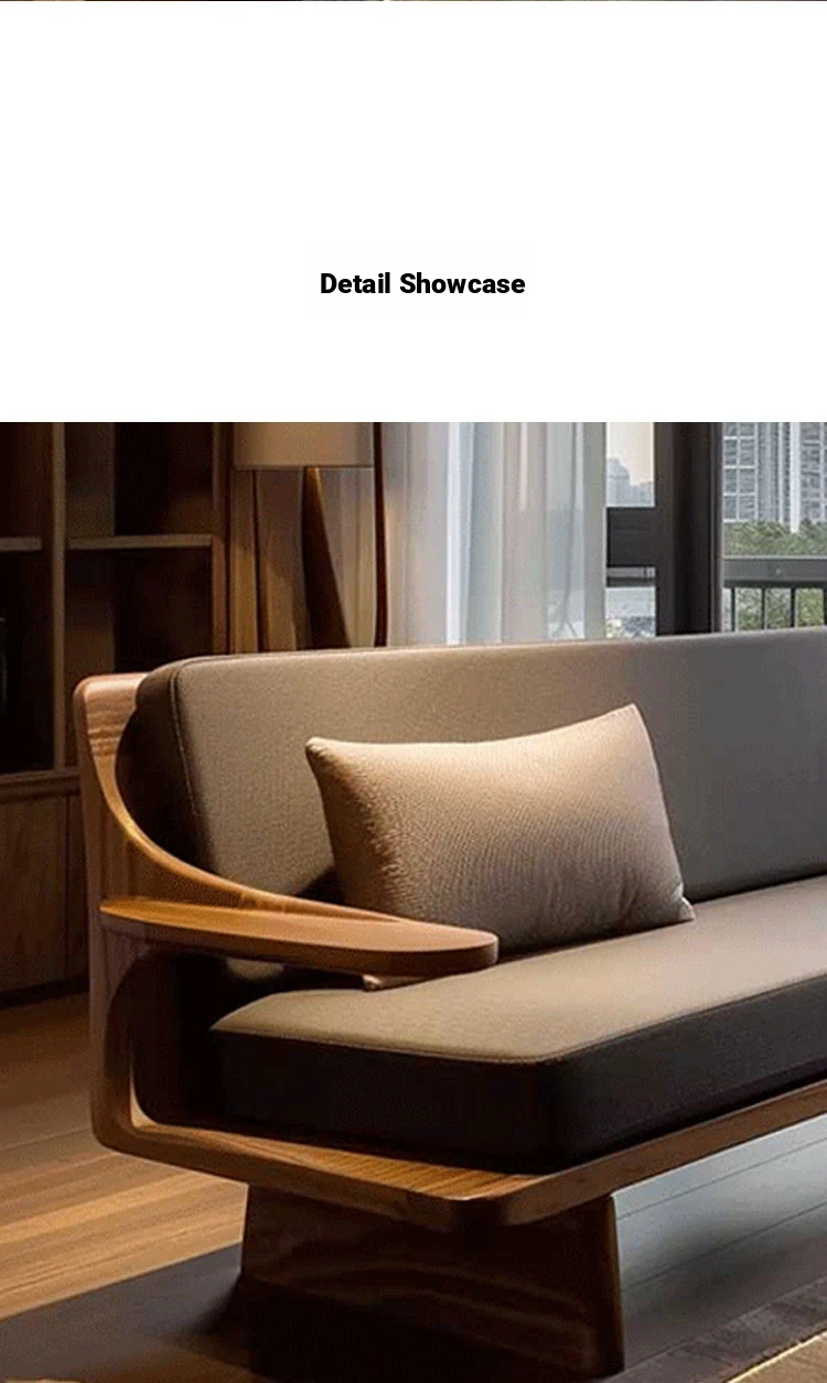 Modern Zen Style Solid Wood Sofa in North American Black Walnut – High-End Real Leather, Minimalist Design for Hotels and Homestays