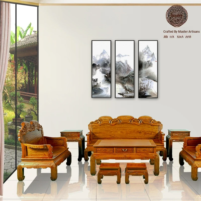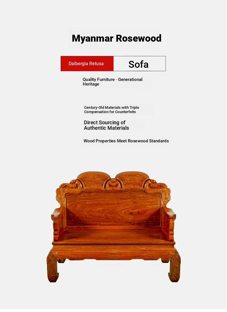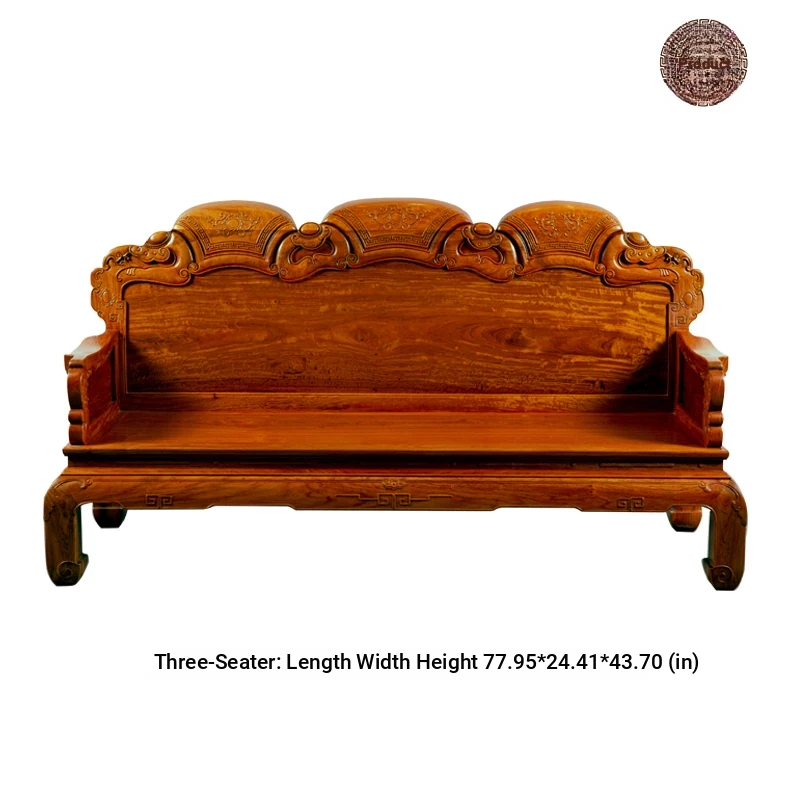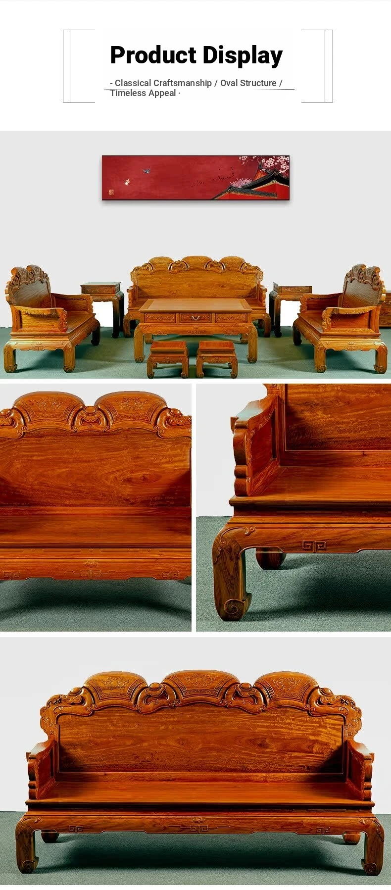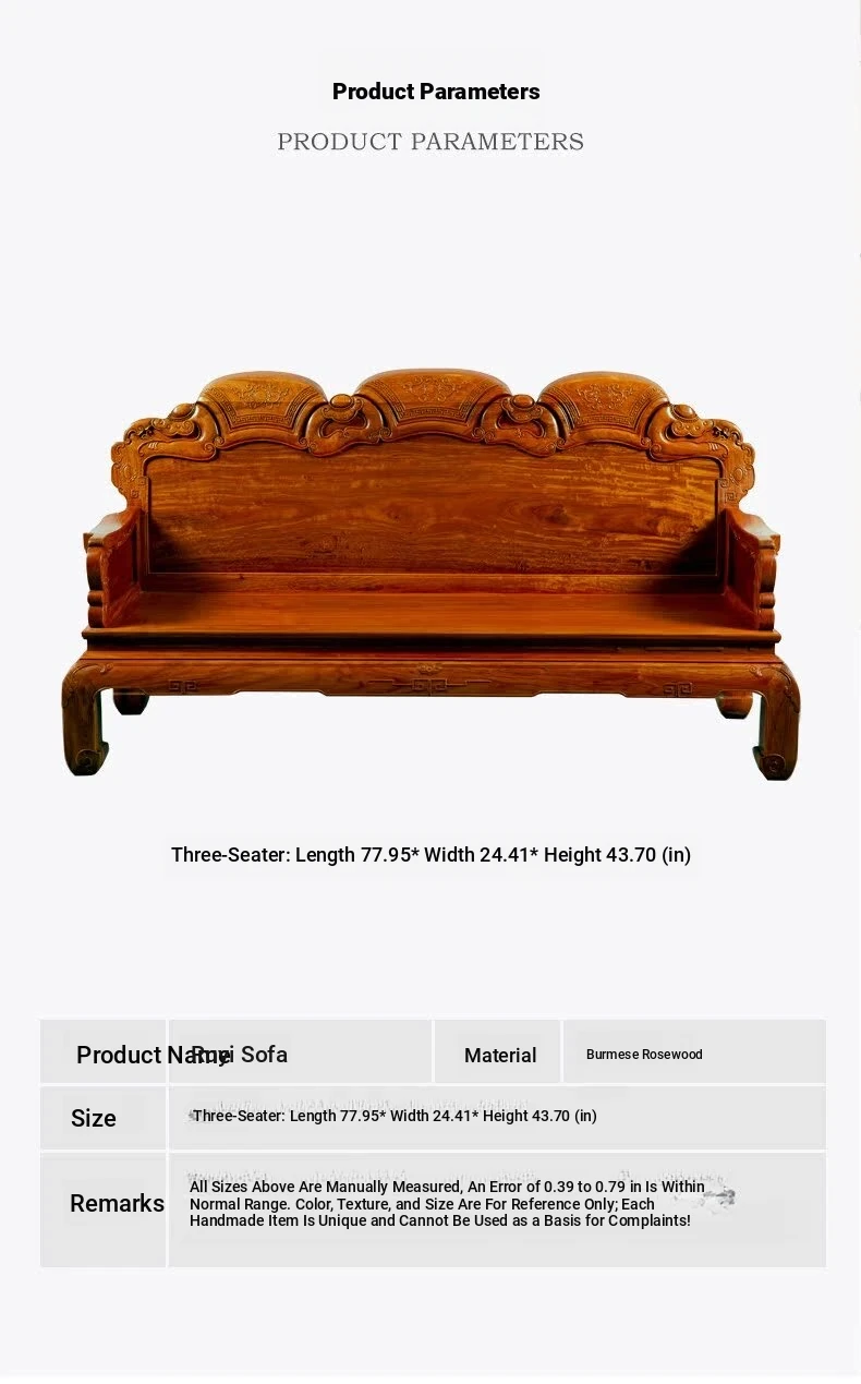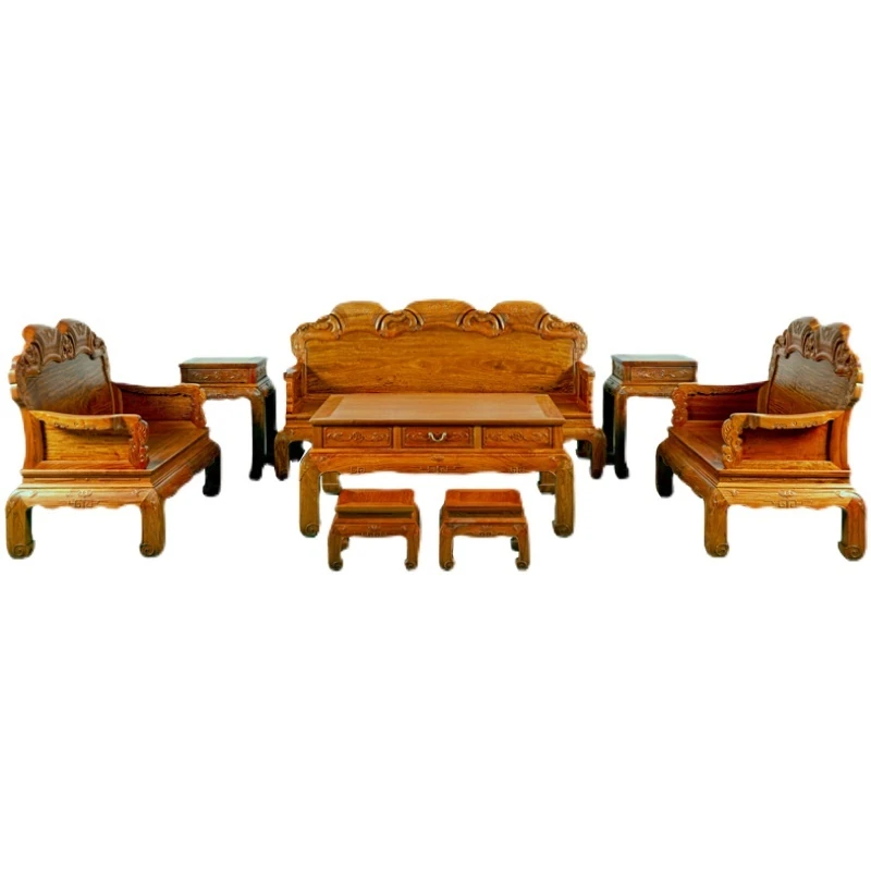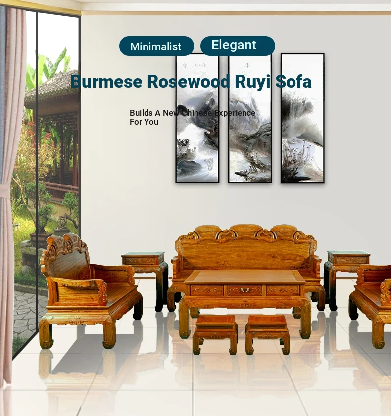Myanmar Rosewood Ruyi Sofa Set - 8-Piece Antique Style Solid Wood Chinese Ming and Qing Living Room Furniture - Elegant Hardwood Combination for Timeless Charm