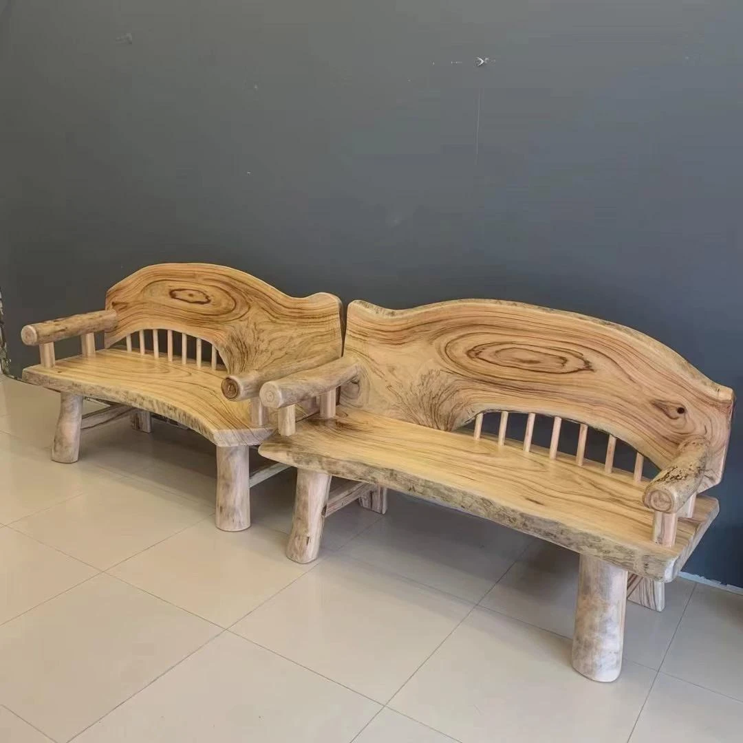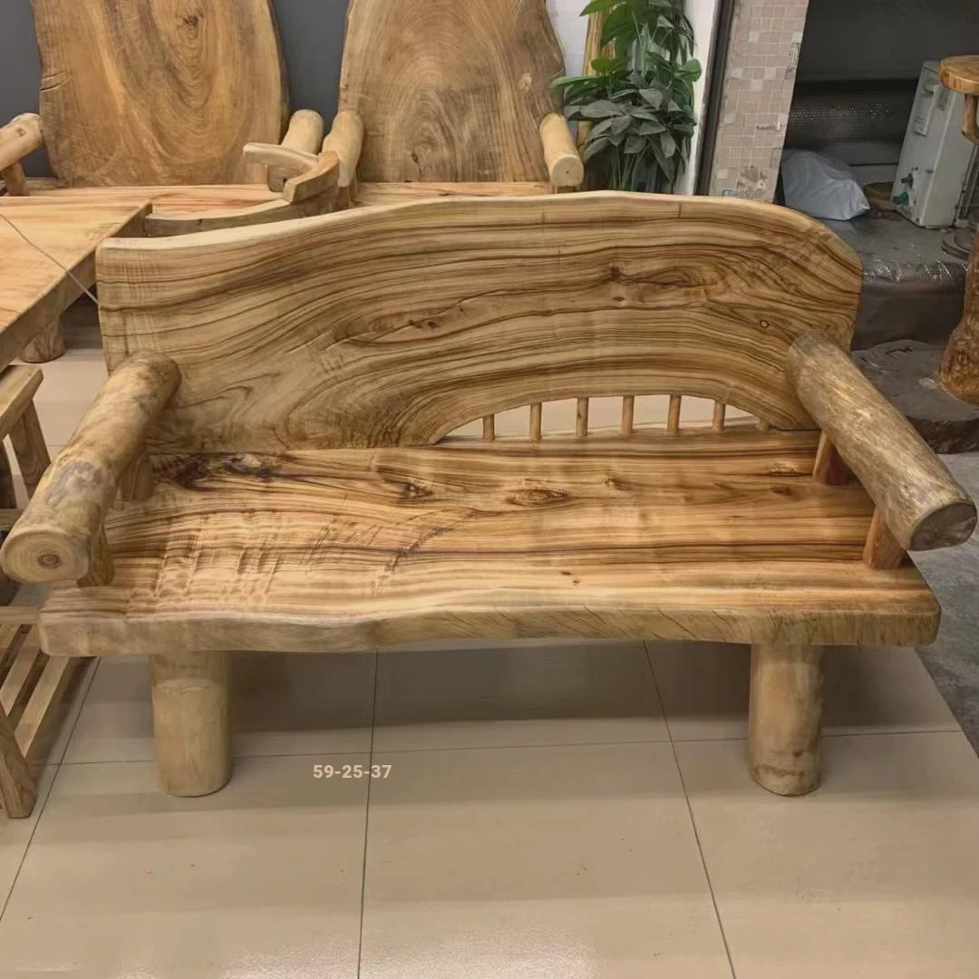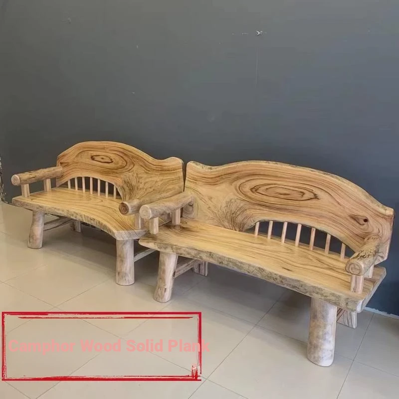Natural Solid Camphor Wood Sofa - 3-Seater Rustic Bench with Unique Design, Minimalist Eco-Friendly Lounge Chair for Living Room and Outdoor Use, Complete Set