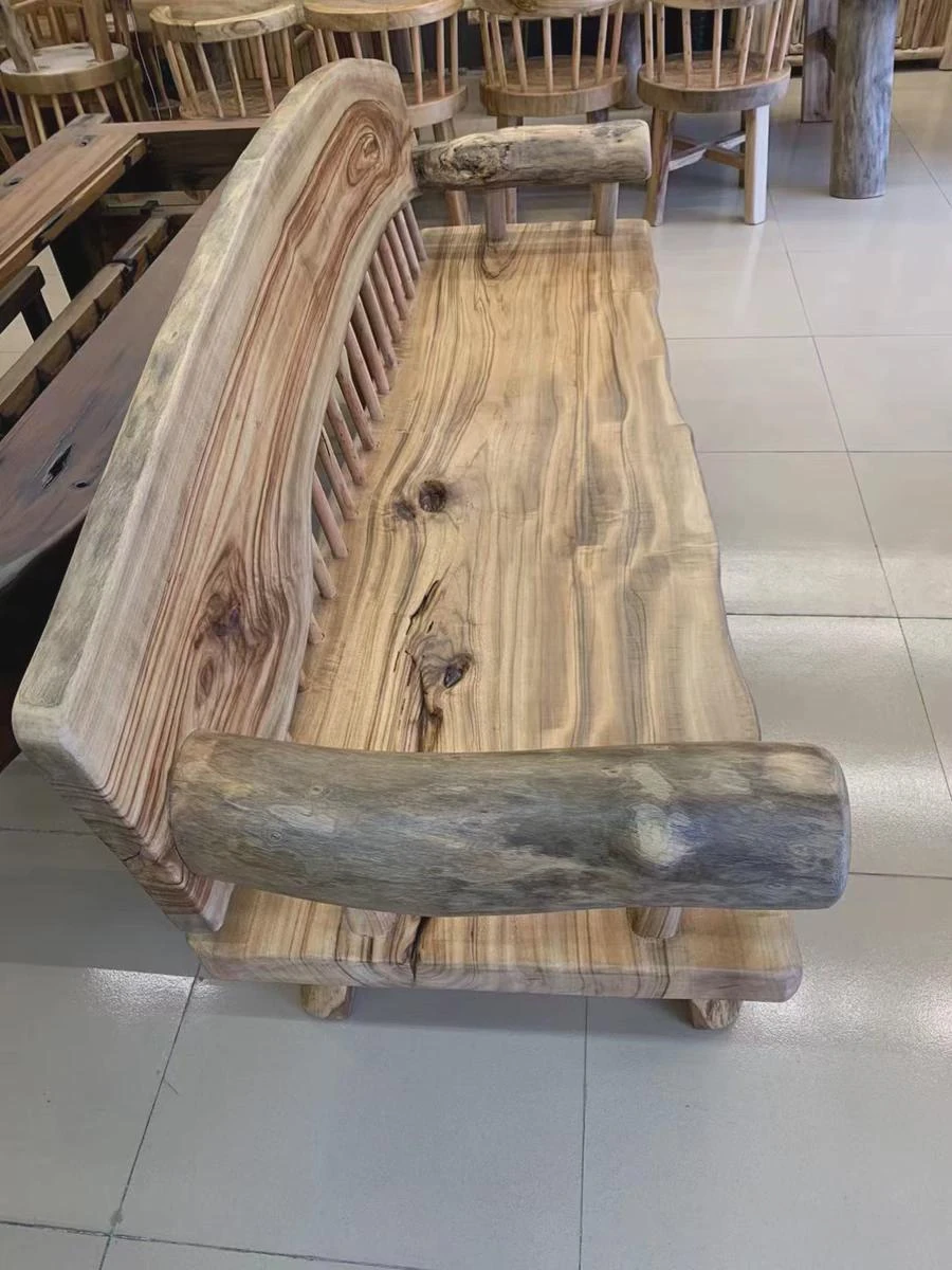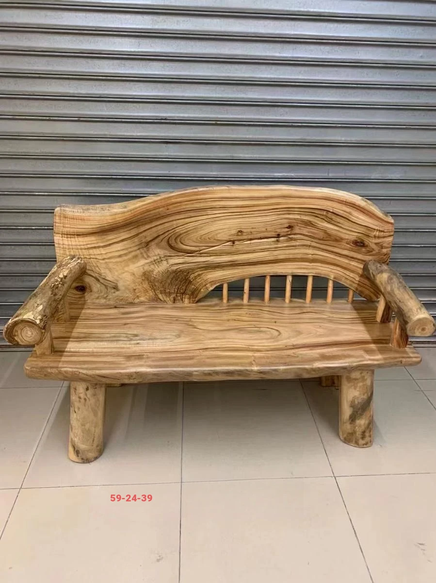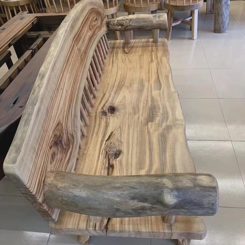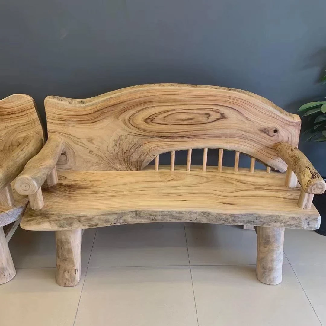 Natural Solid Camphor Wood Sofa - 3-Seater Rustic Bench with Unique Design, Minimalist Eco-Friendly Lounge Chair for Living Room and Outdoor Use, Complete Set