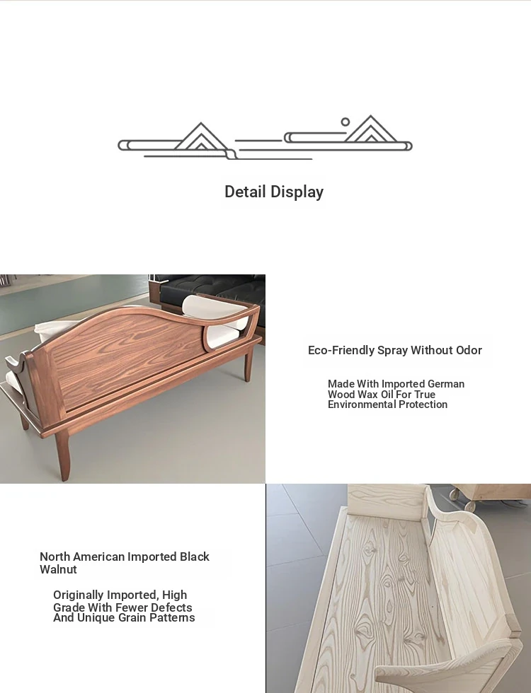 New Chinese Style North American Black Walnut Chaise Lounge - Zen-Inspired Solid Wood Sofa Chair for Hotels, B&Bs, Villas, and Home Living Rooms