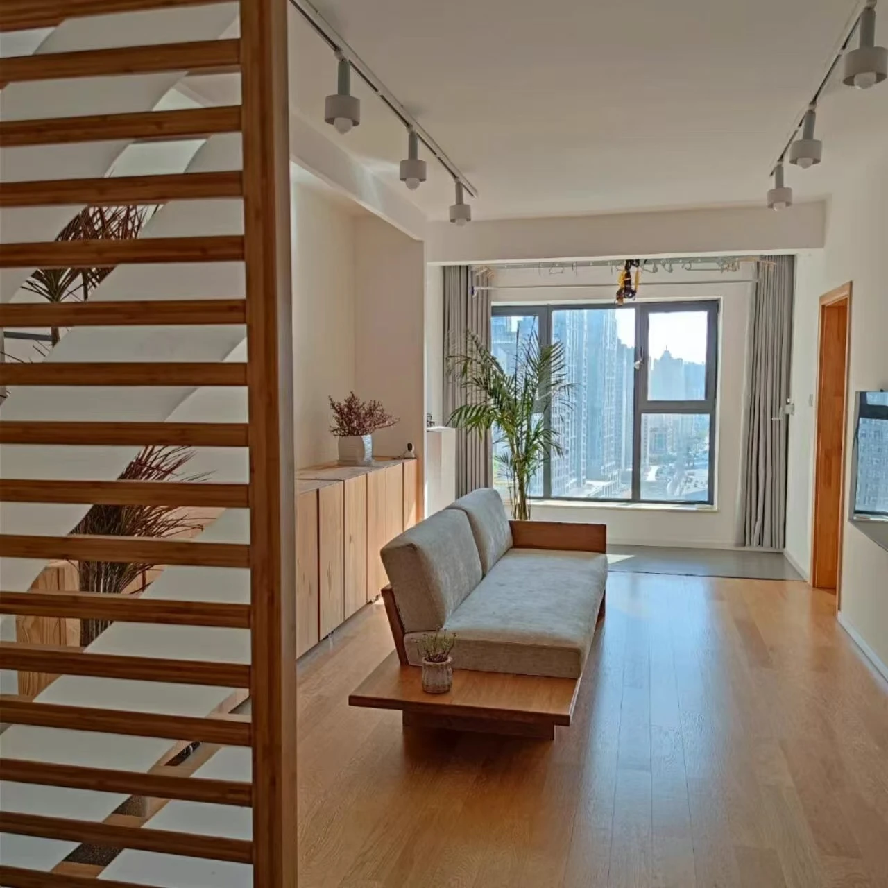 New Chinese Style Solid Ash Wood Floor Sofa - Wabi-Sabi Aesthetic with Natural Fabric, Perfect for Hotels and Guesthouses Living Rooms