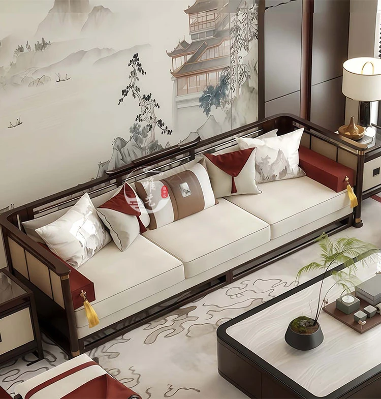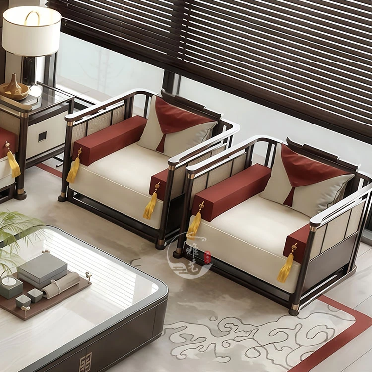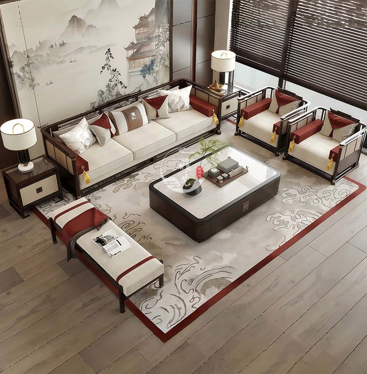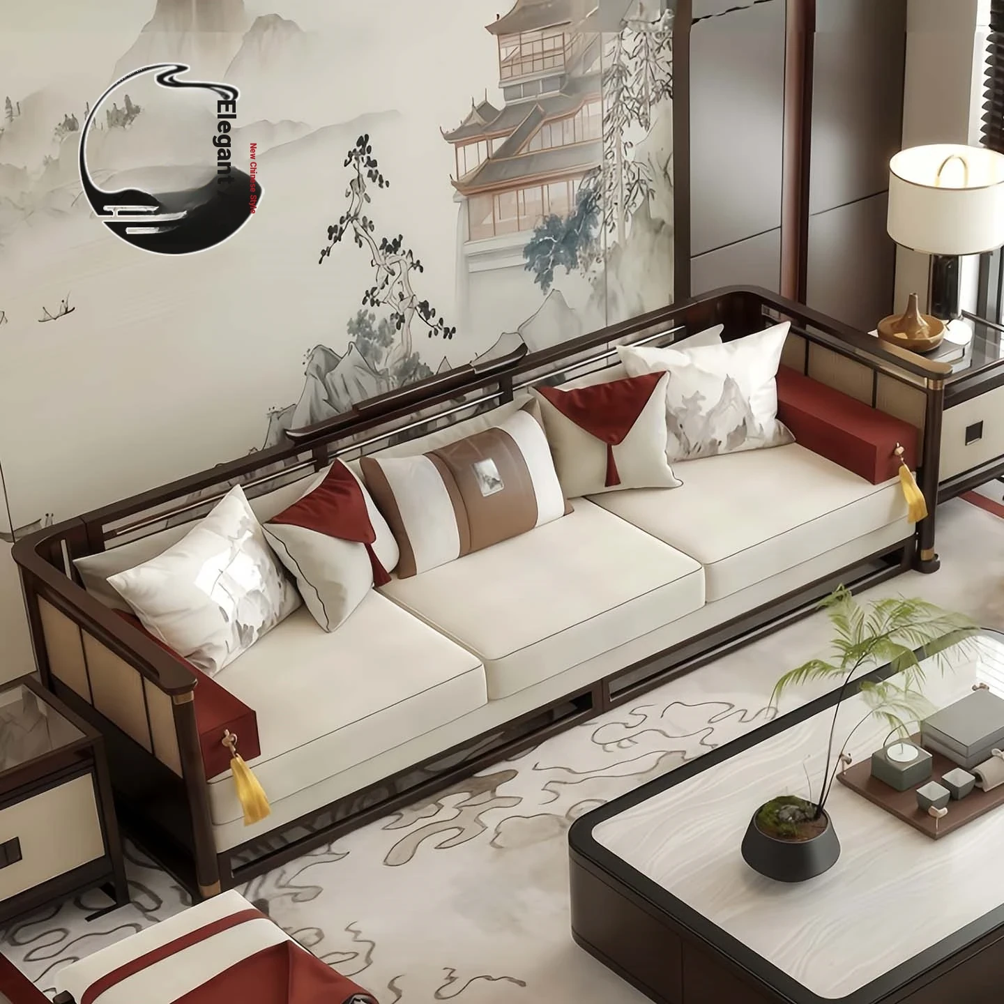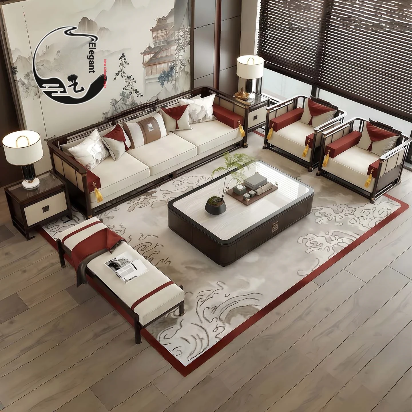 New Chinese Style Solid Wood Sofa Set in Ash Wood - 2025 Latest Model for Showroom, Hotel, and Villa Living Room Reception. Elevate Your Space with Elegance!