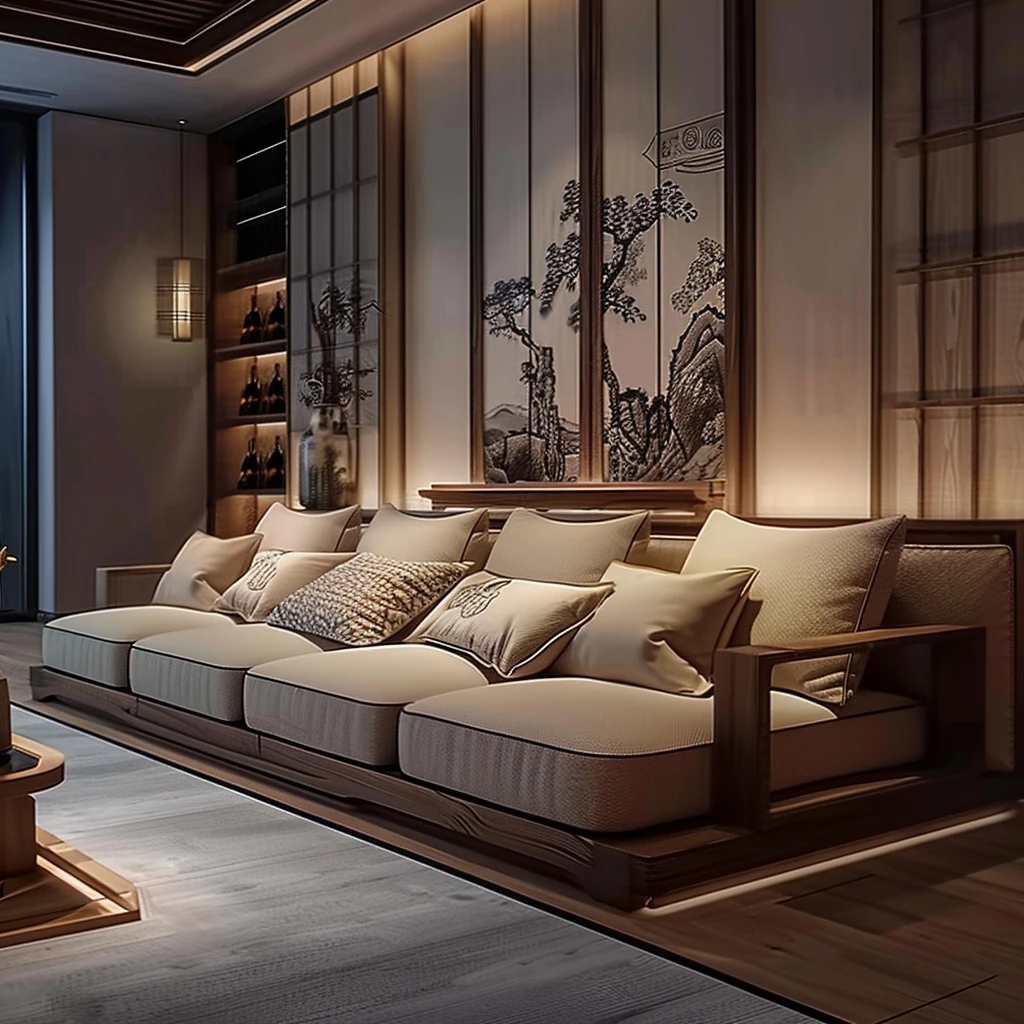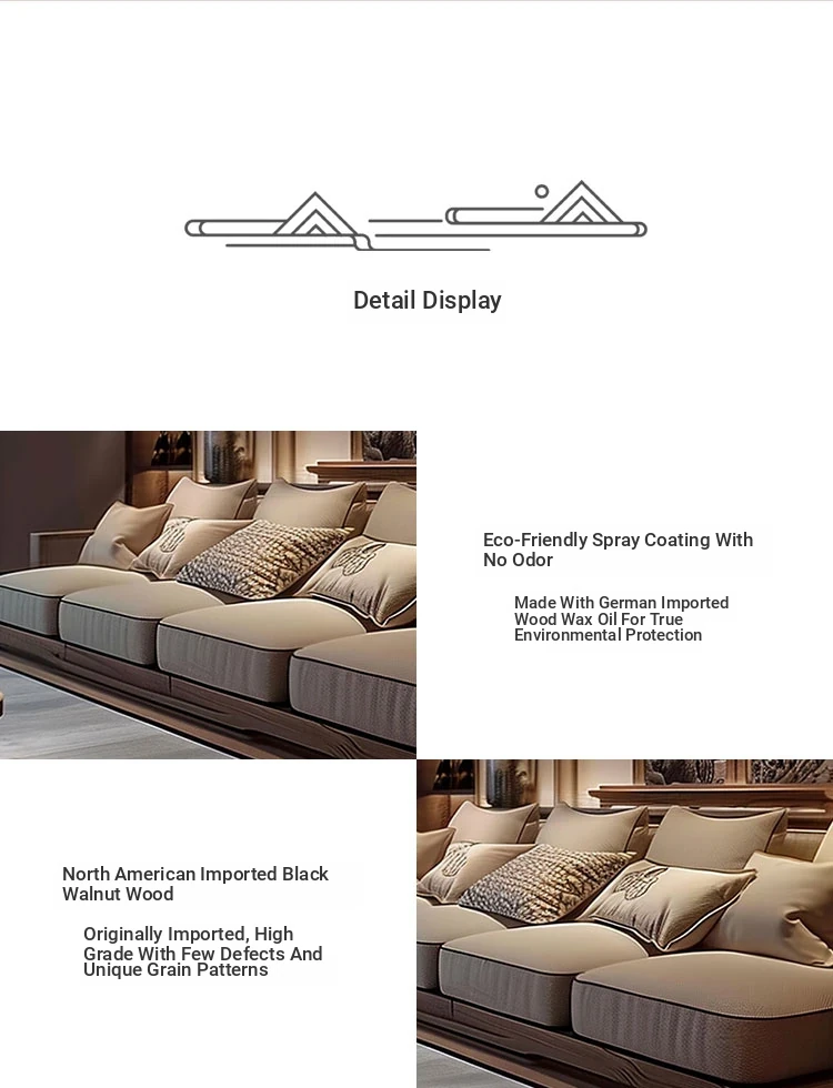 North American Black Walnut Straight Sofa - New Chinese Zen Style, Ash Wood, Multi-Person, High-End Luxury Furniture for Home Living Room