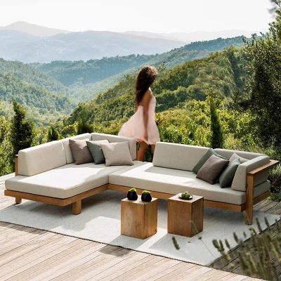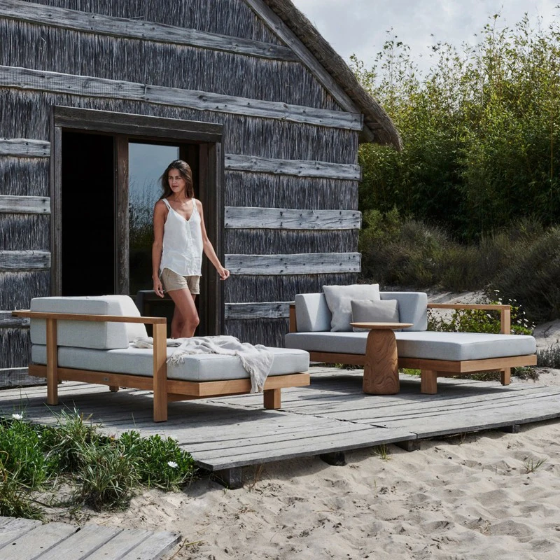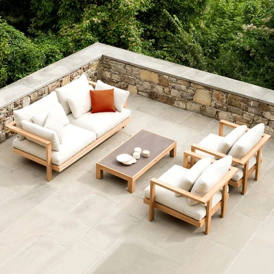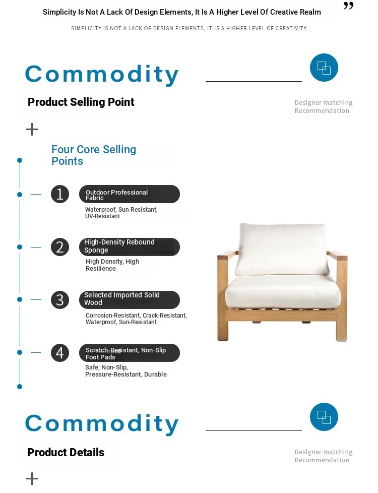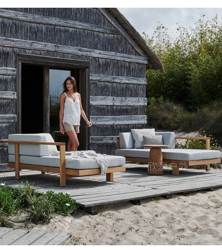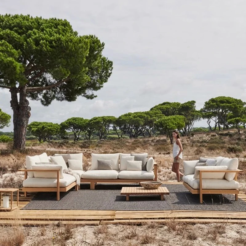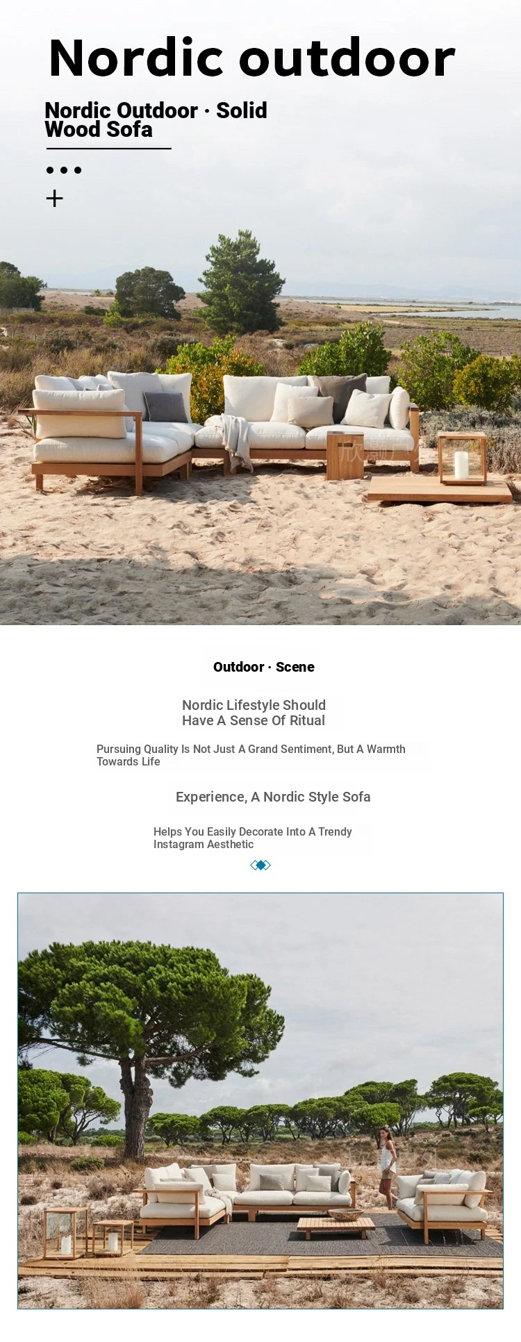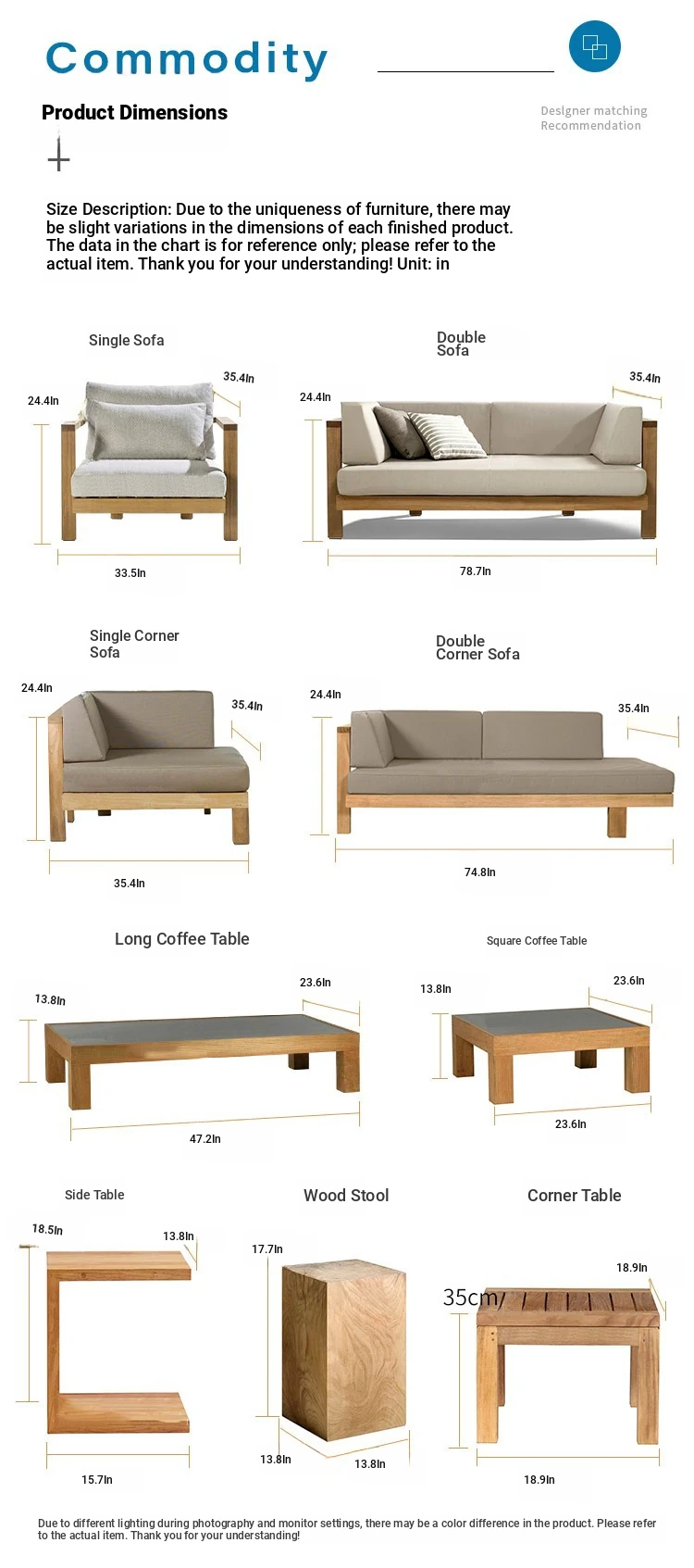 Outdoor Teak Sofa Set - Premium Solid Wood, Weather-Resistant, Scandinavian Style for Villas and Hotels, Perfect for Courtyards and Gardens, Luxurious Outdoor Leisure Furniture