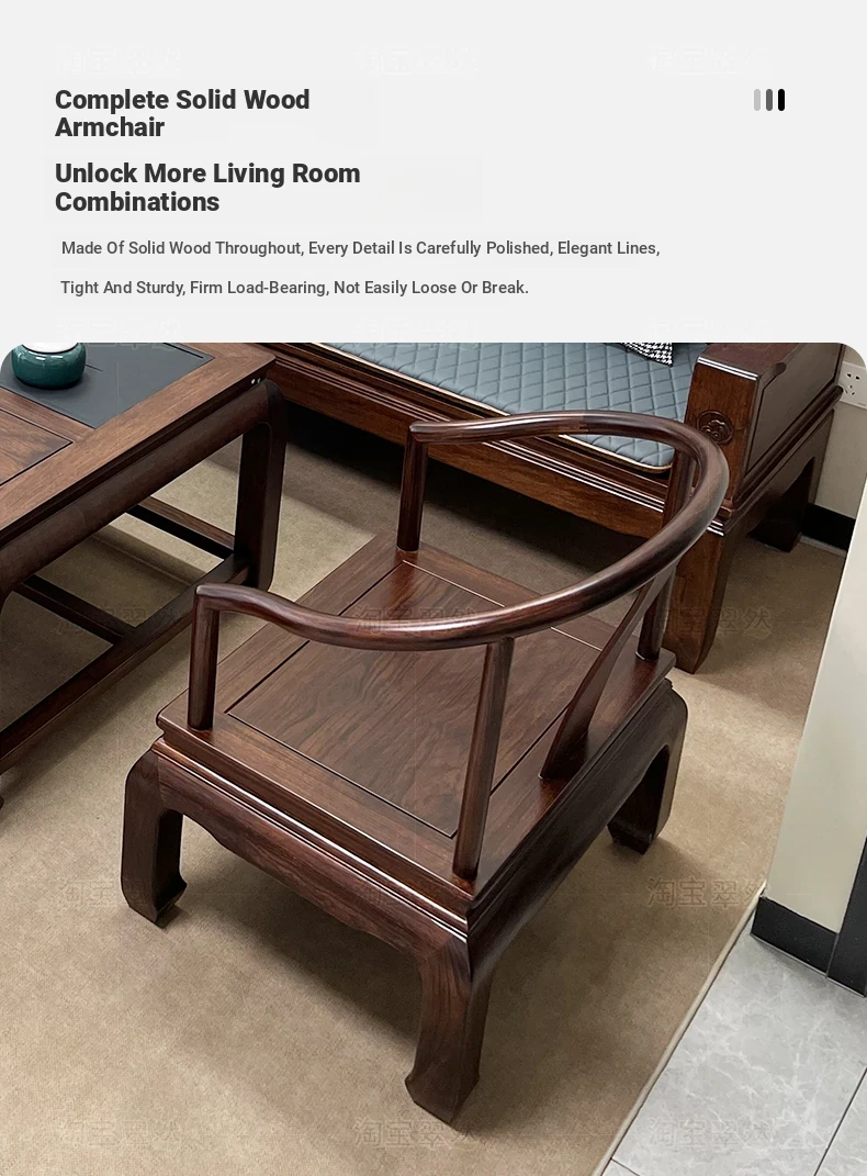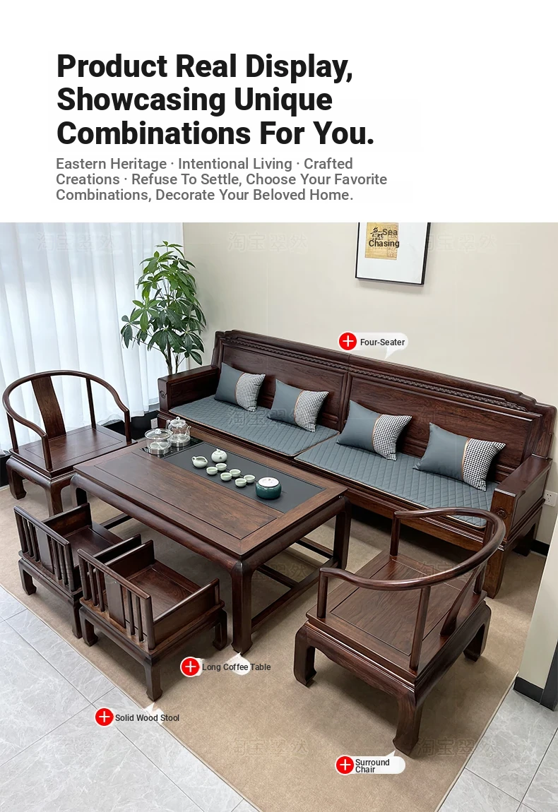 Premium African Rosewood Mortise and Tenon Solid Wood Sofa - Elegant Small Living Room Chaise Lounge in Antique Style, New Chinese Furniture Design for Modern Spaces
