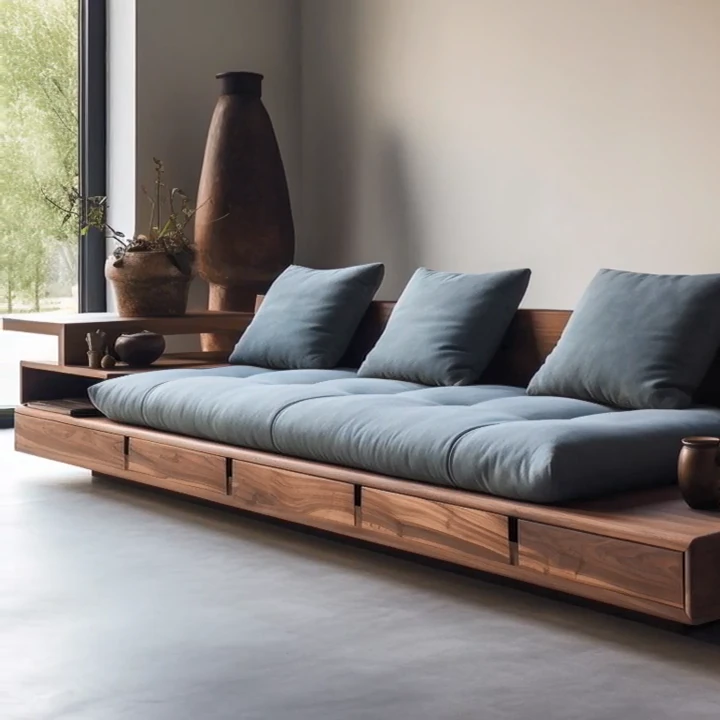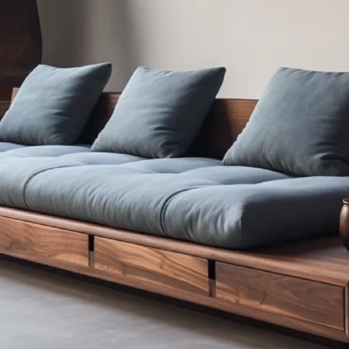 Premium Minimalist Solid Walnut Sofa for Small Living Rooms – Elegant and Durable Hardwood Furniture for Modern Homes