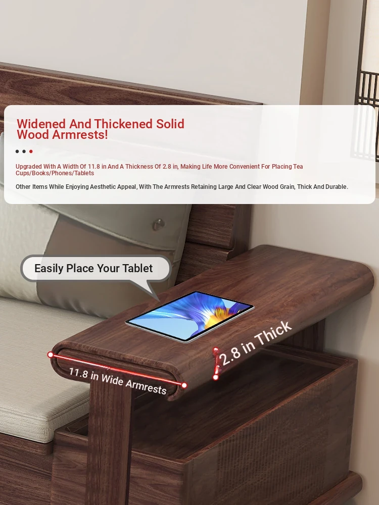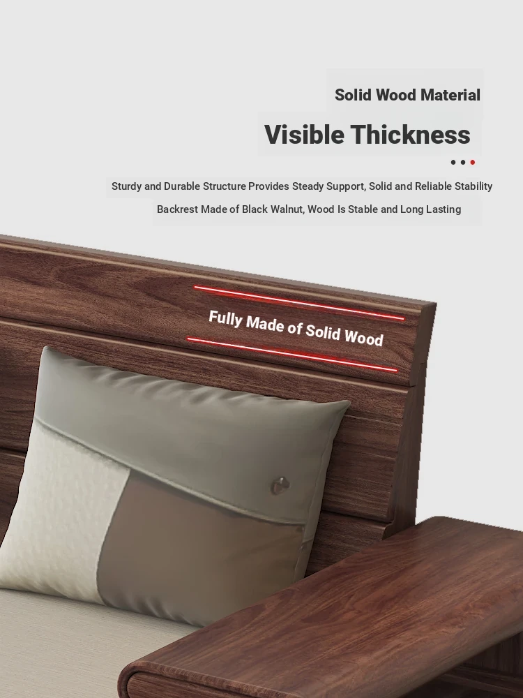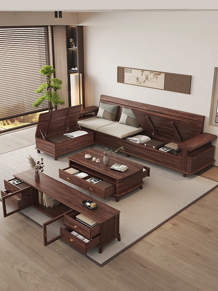 Solid Black Walnut Wood Sofa Set with Storage - Versatile Chaise Lounge for Small Spaces, Ideal for Both Winter and Summer, Modern Chinese Furniture for Your Living Room