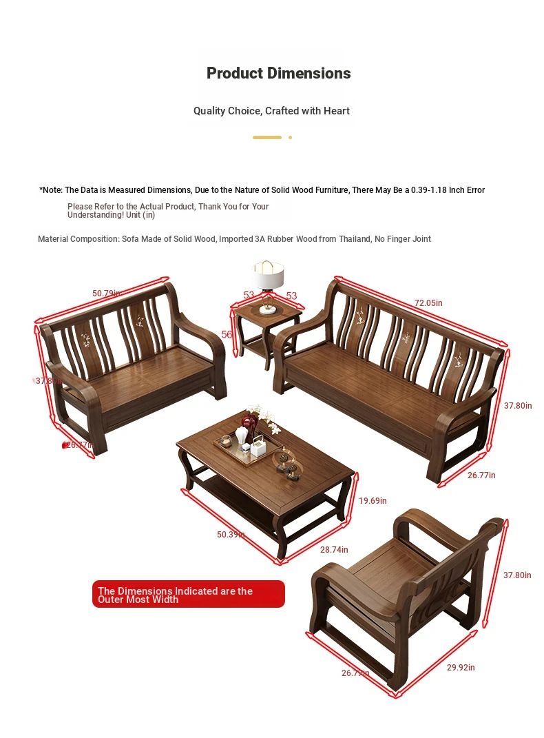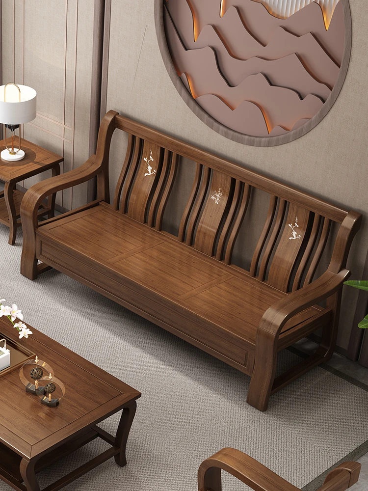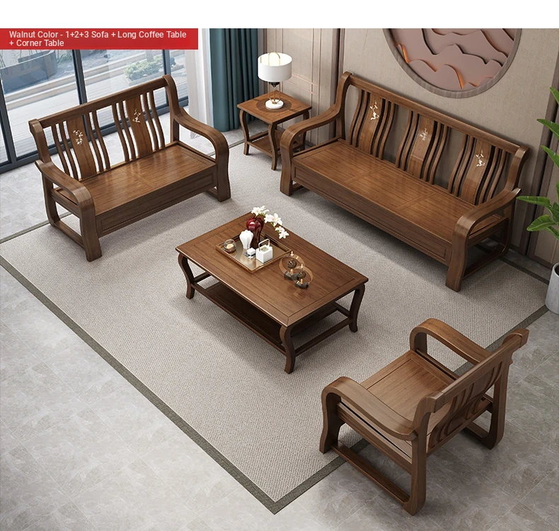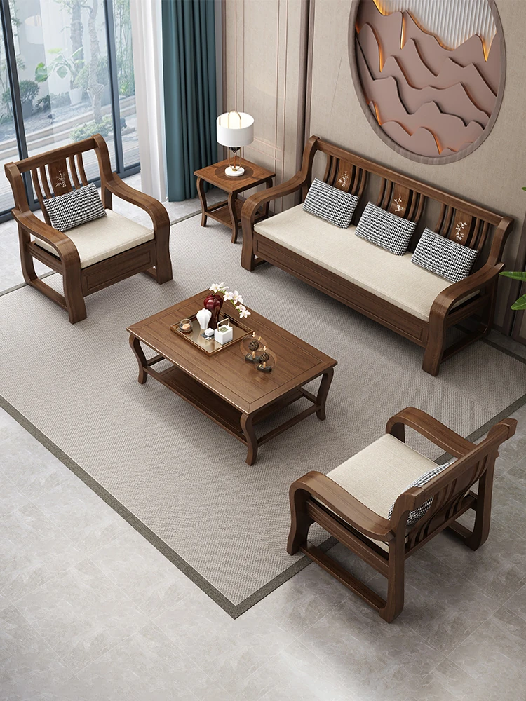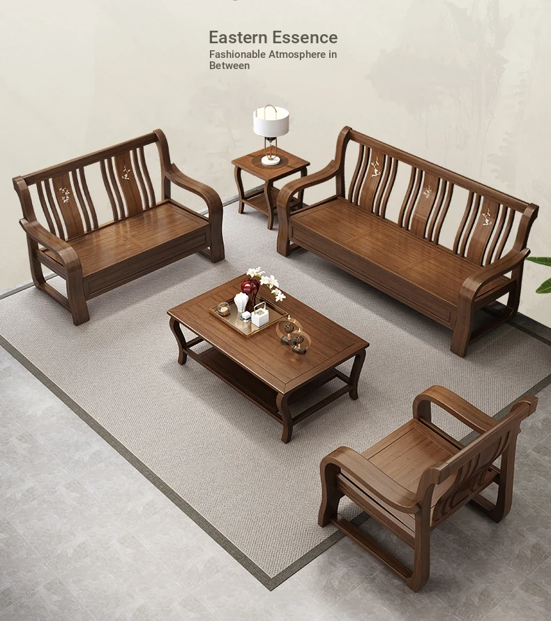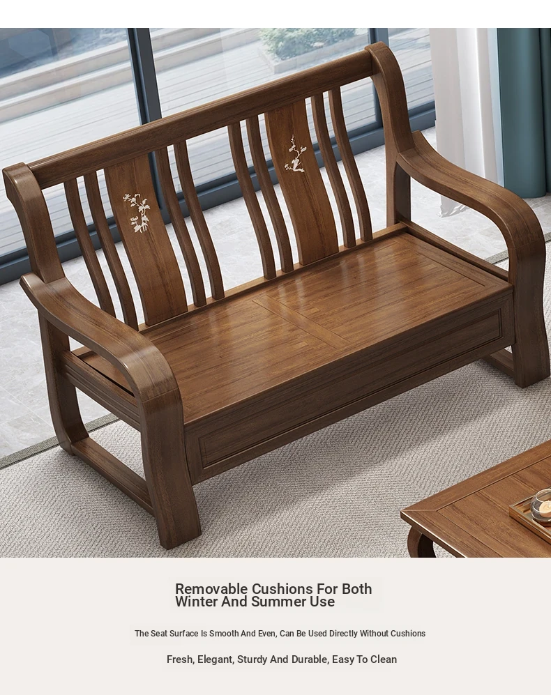 Solid Wood Sofa Set for Small Chinese Living Rooms - Eco-Friendly, Water-Based Finish, Perfect for Year-Round Comfort, Seats Three, Ideal for Rural Homes.