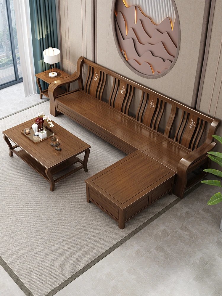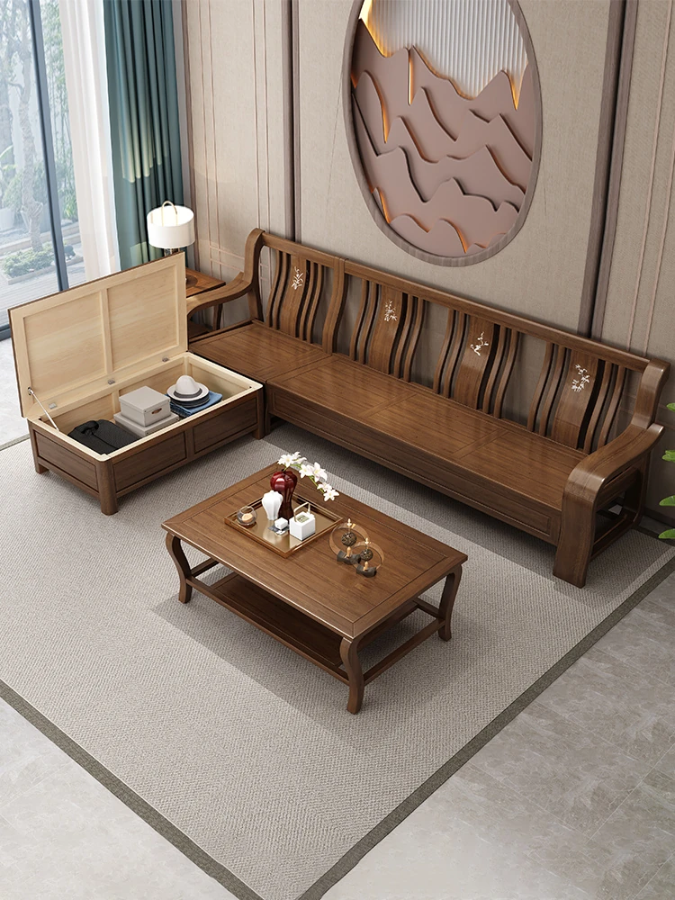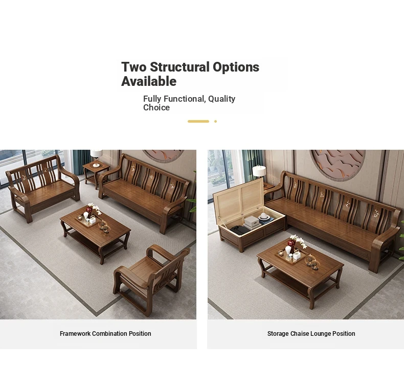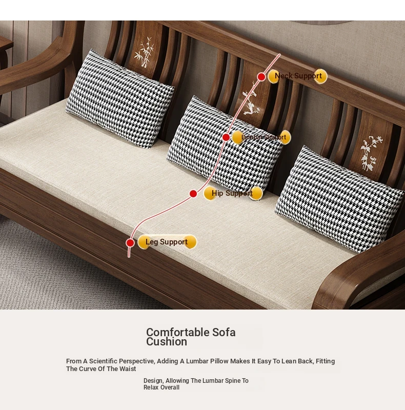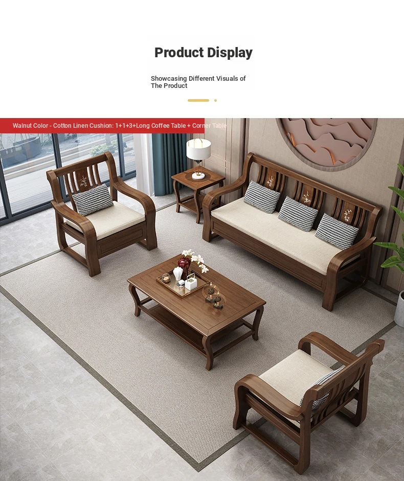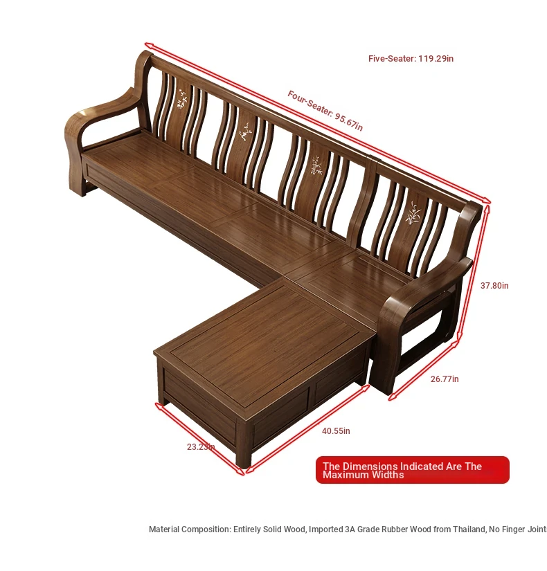 Solid Wood Sofa Set for Small Chinese Living Rooms - Eco-Friendly, Water-Based Finish, Perfect for Year-Round Comfort, Seats Three, Ideal for Rural Homes.