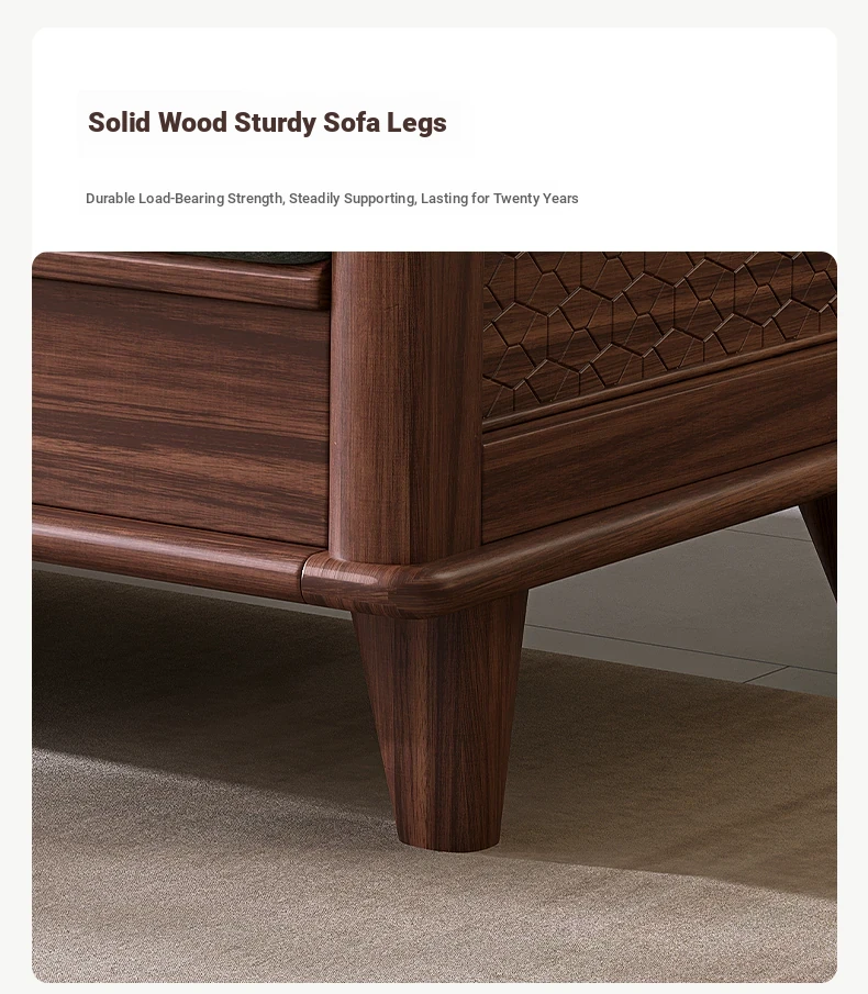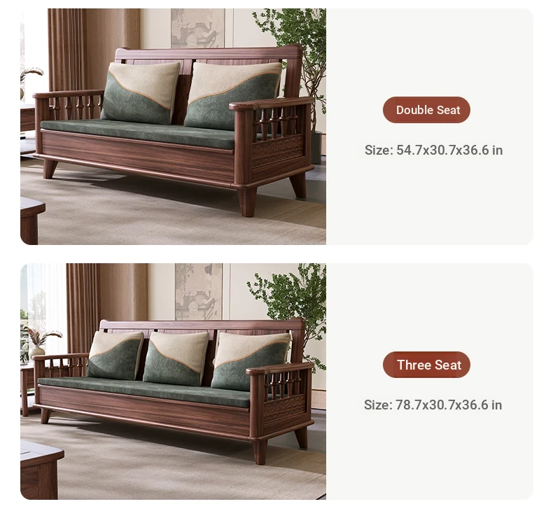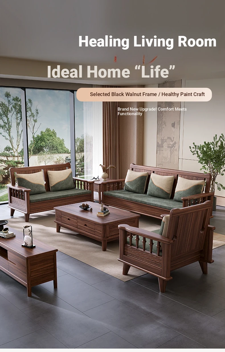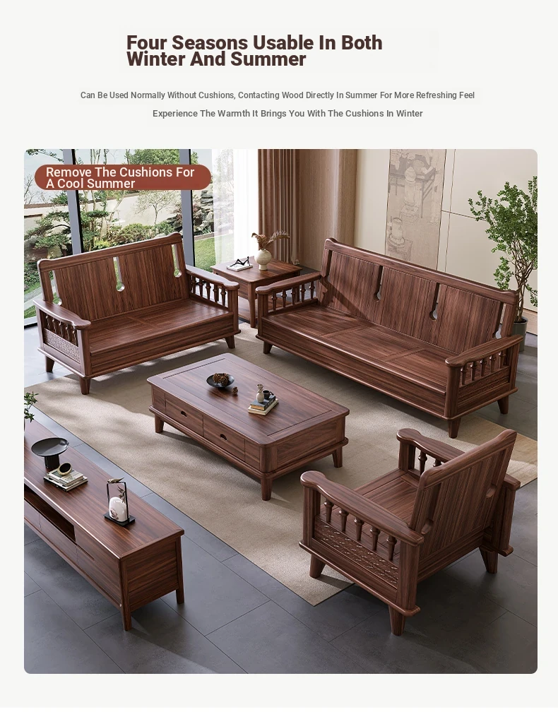 South American Walnut Solid Wood Sofa Set for Small Living Rooms - Versatile Three-Seater for Year-Round Use - Minimalist Chinese Style Furniture