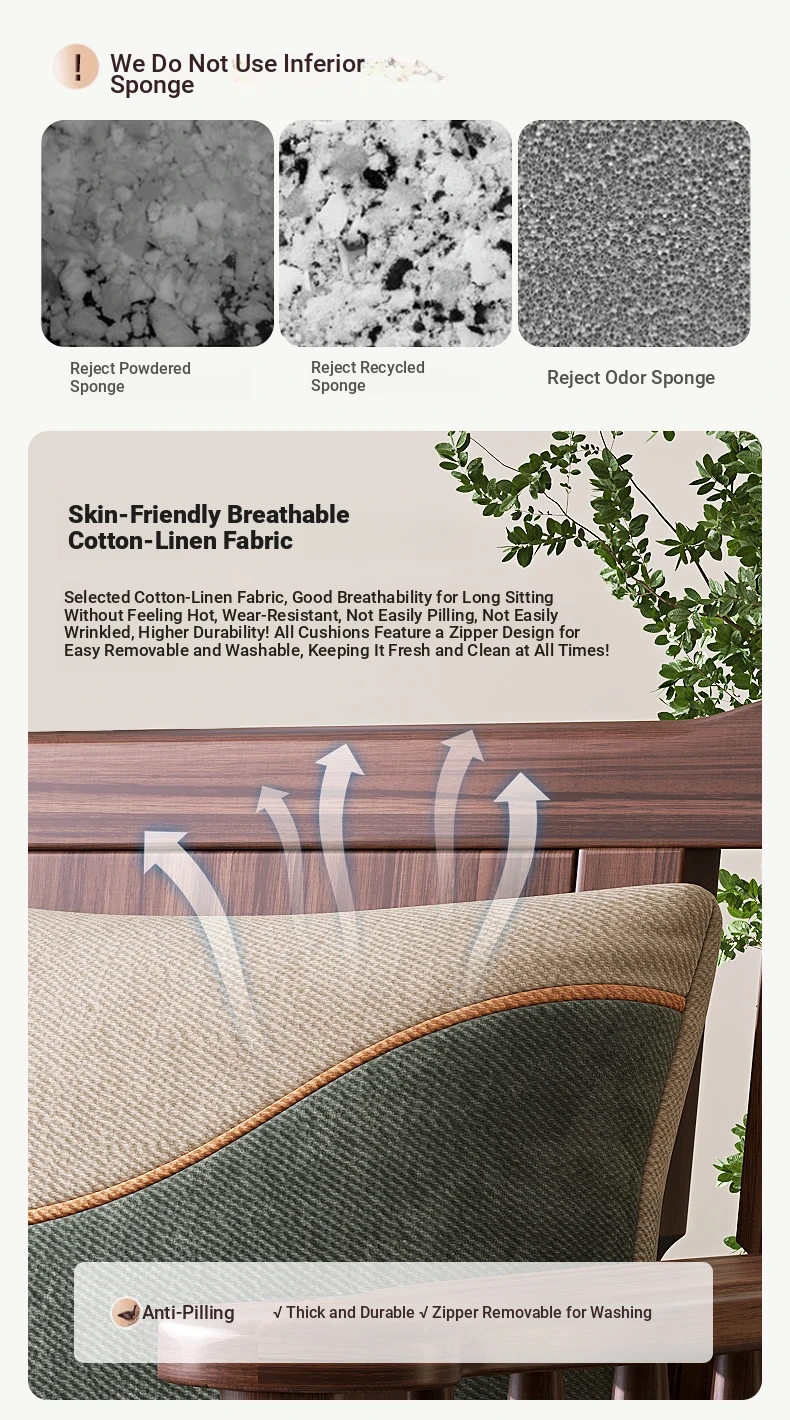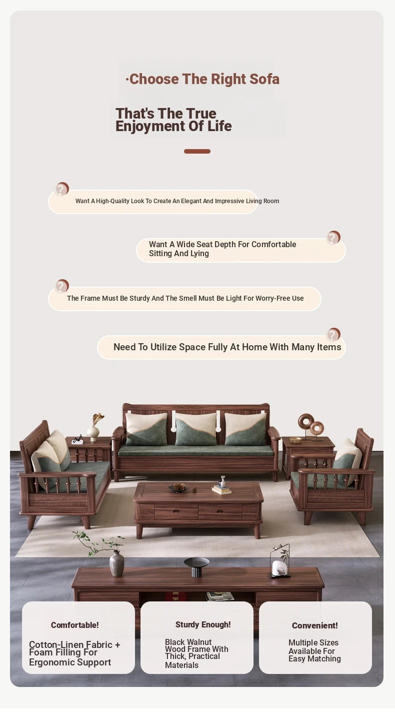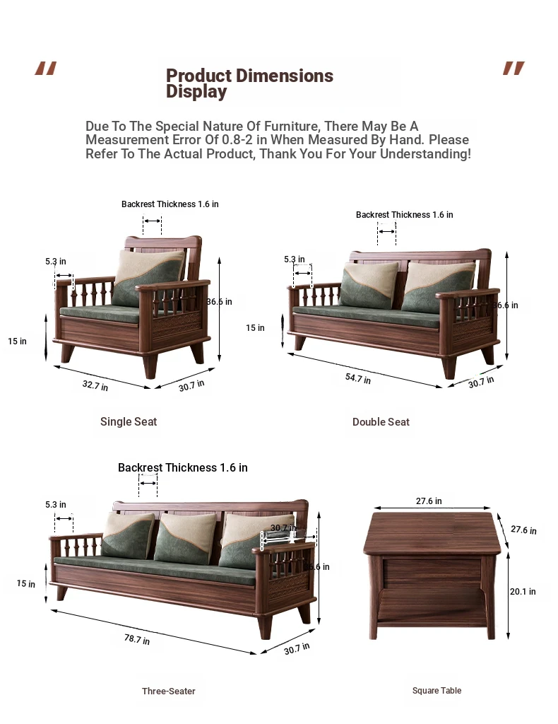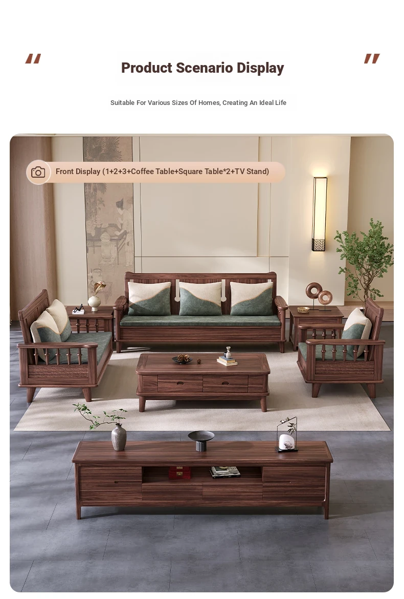 South American Walnut Solid Wood Sofa Set for Small Living Rooms - Versatile Three-Seater for Year-Round Use - Minimalist Chinese Style Furniture