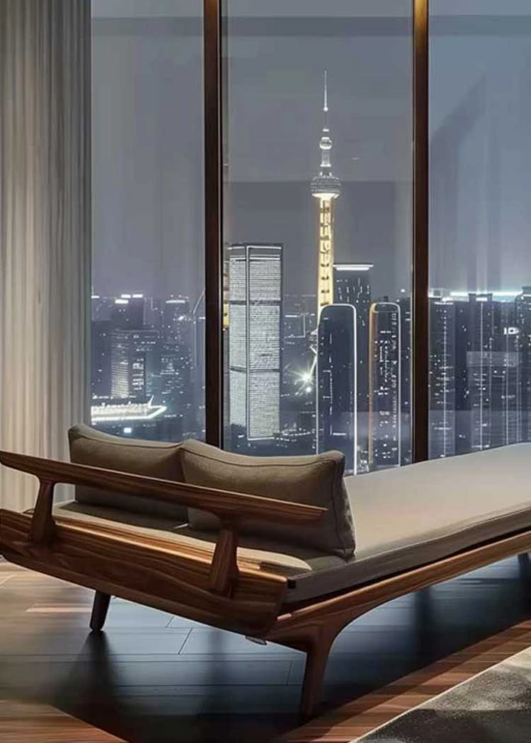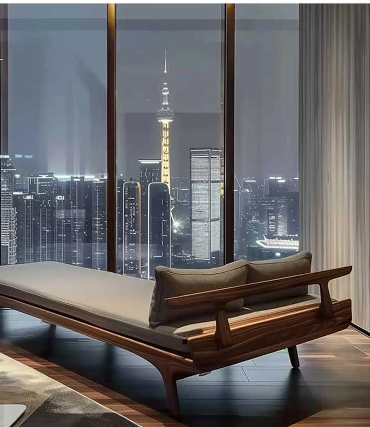 Stylish New Chinese Black Walnut and Ash Wood Zen Chaise Lounge Chair - Perfect for Offices, Hotels, and Guesthouses. Embrace Comfort and Elegance in Your Space!
