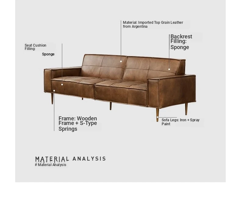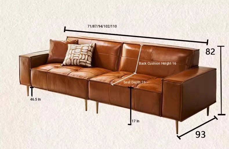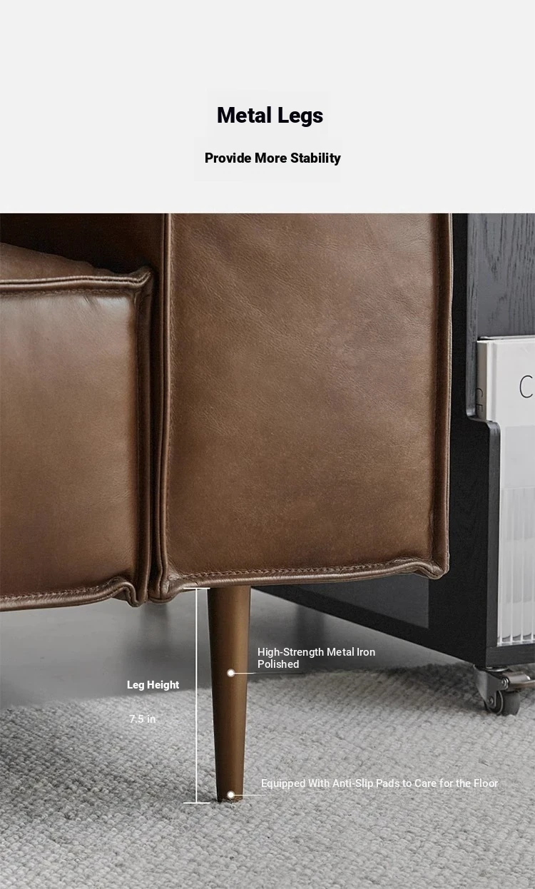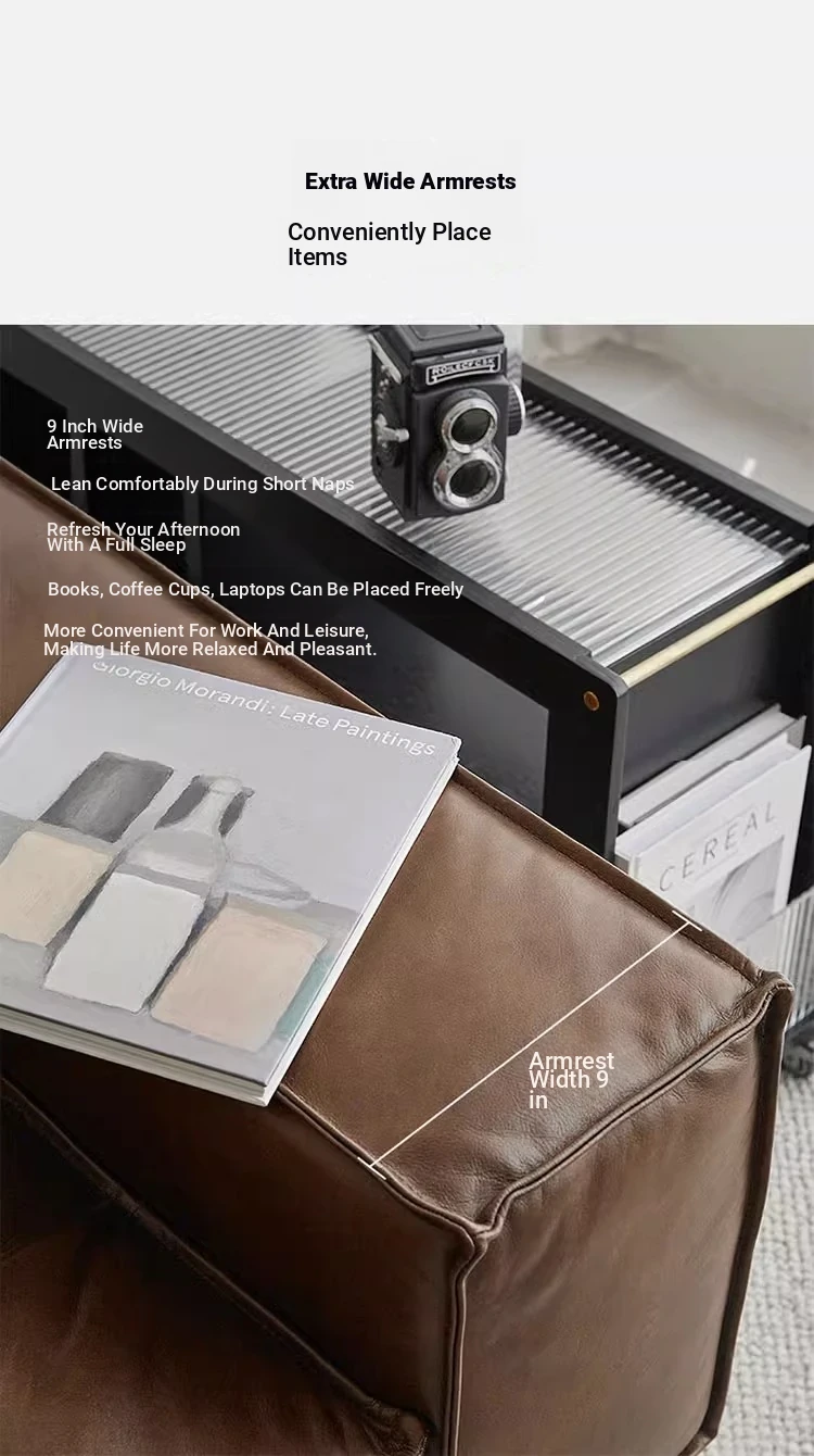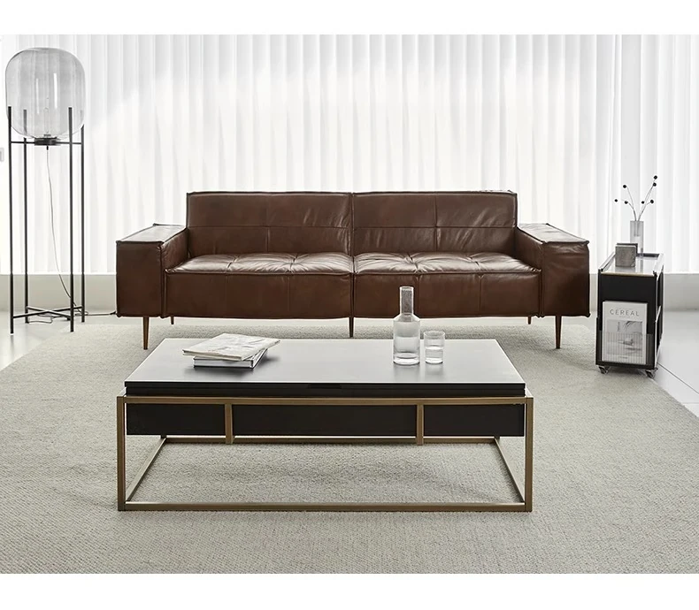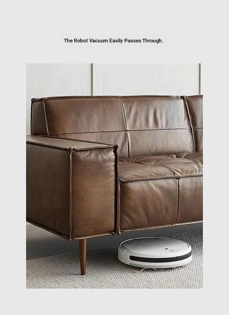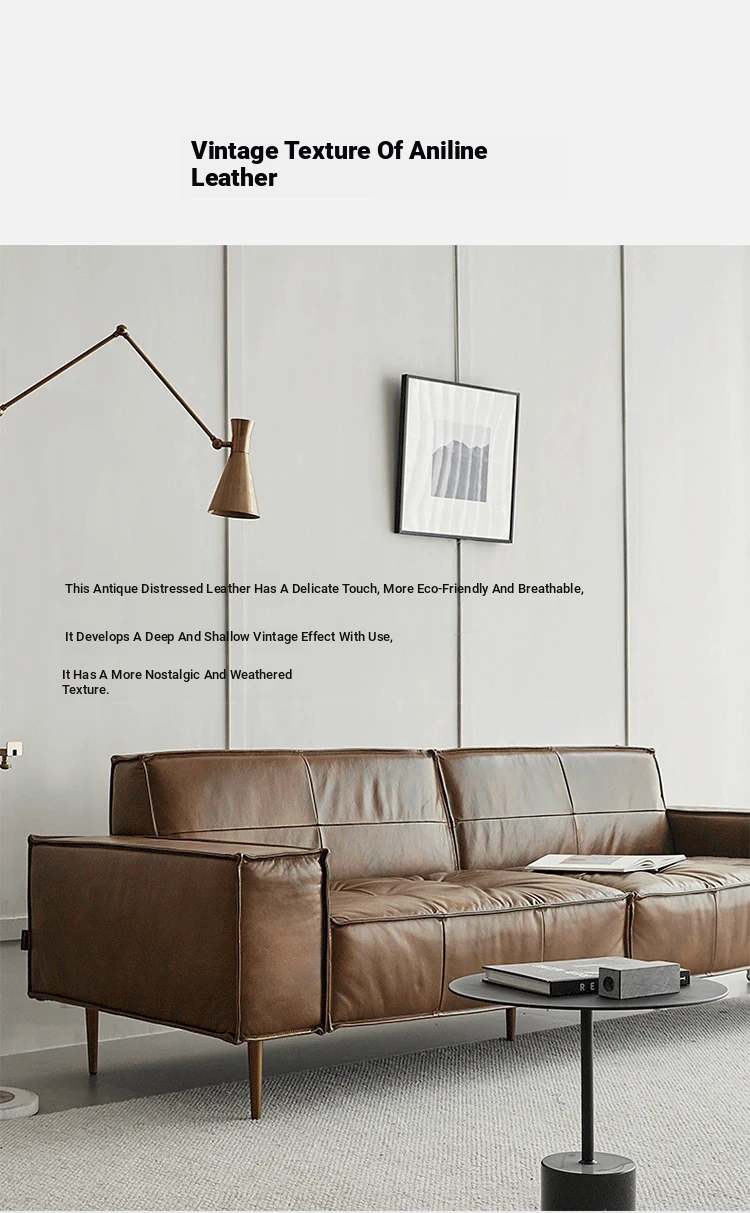 Vintage Retro Waxed Leather Sofa - Genuine Top-Grain Cowhide for Small Living Rooms - Stylish American-Style Block Design