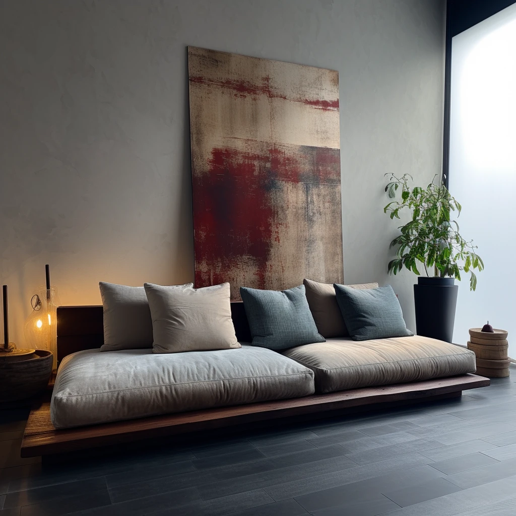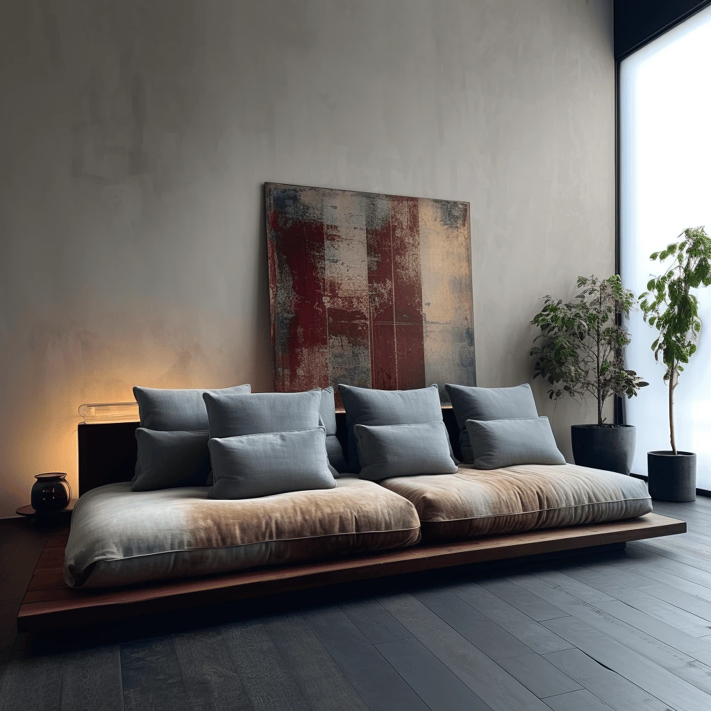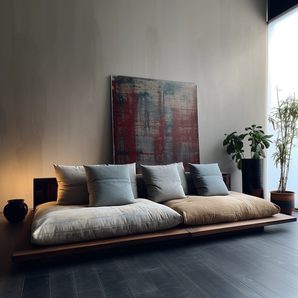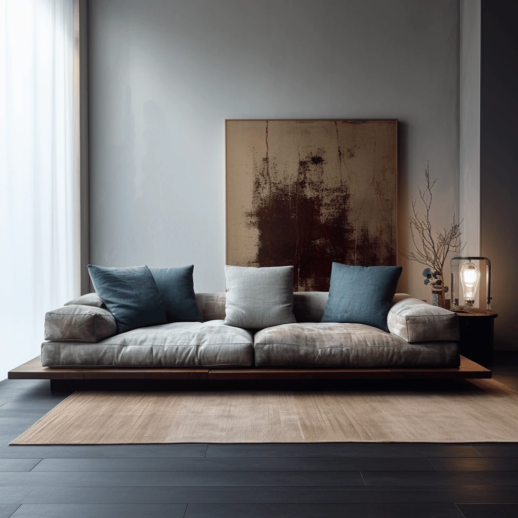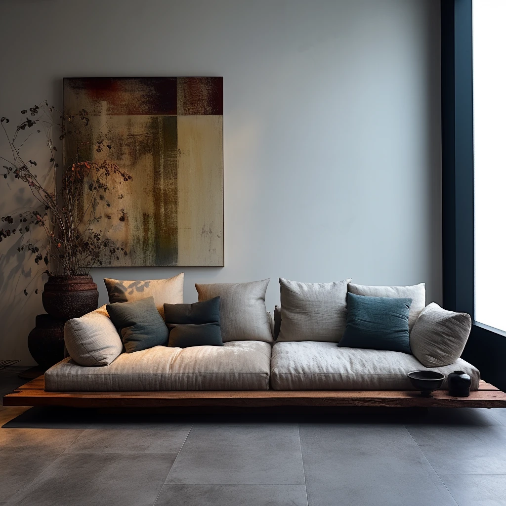 Wabi-Sabi Style Solid Wood Sofa for 3-4 People - Relaxed and Cozy Living Room Furniture for Guesthouses and Homes
