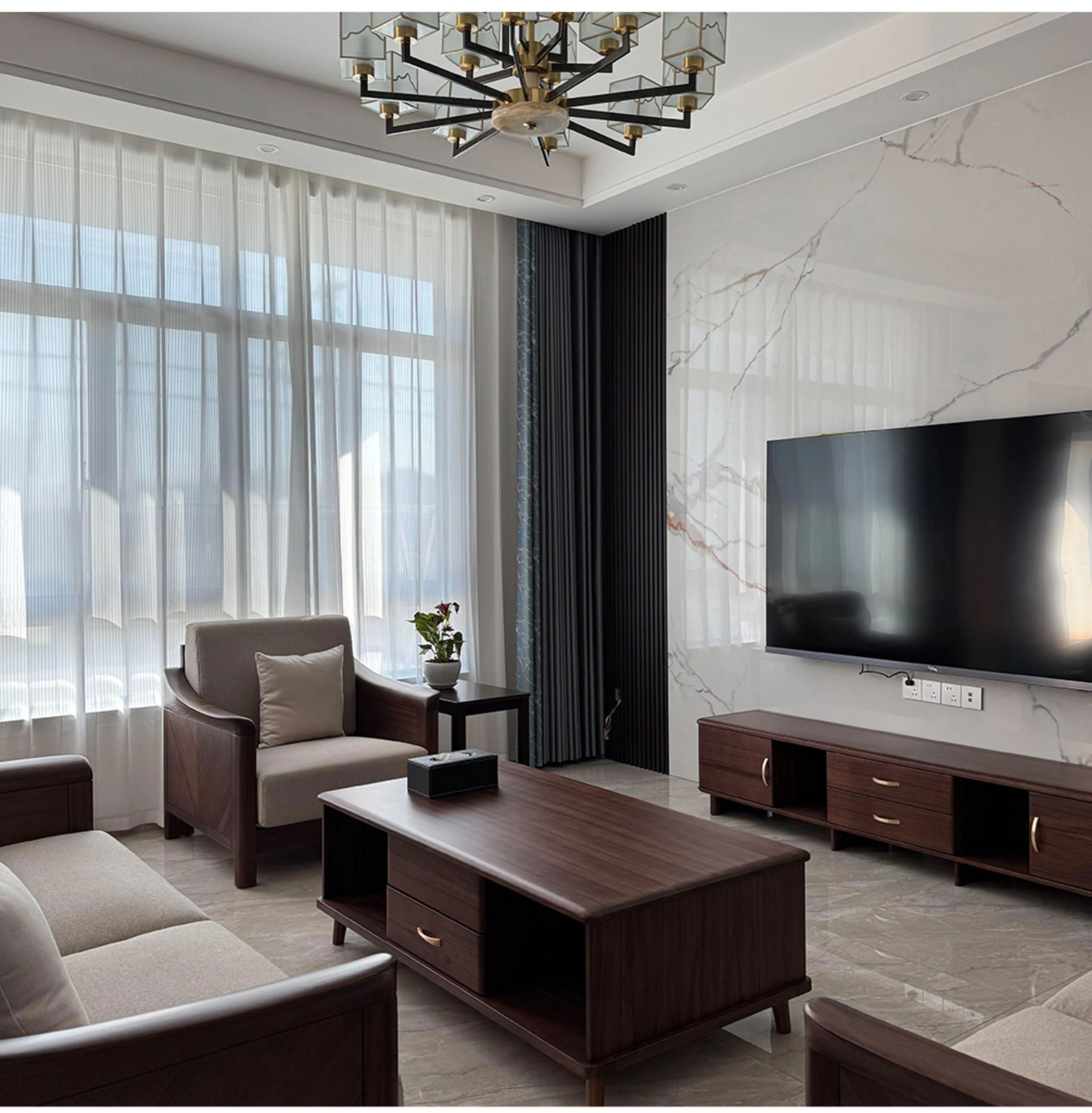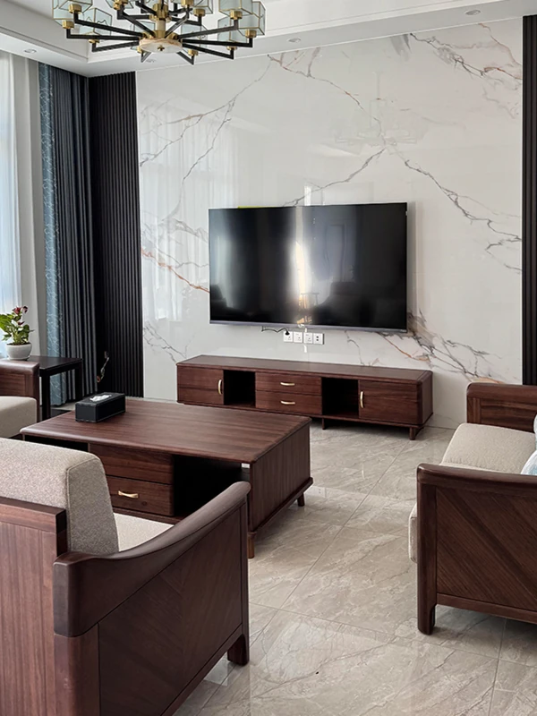 Wujin Wood Solid Wood Sofa - Modern Chinese Minimalist Design for Villas, Versatile Fabric Sofa for All Seasons, Ideal for Small to Large Living Rooms