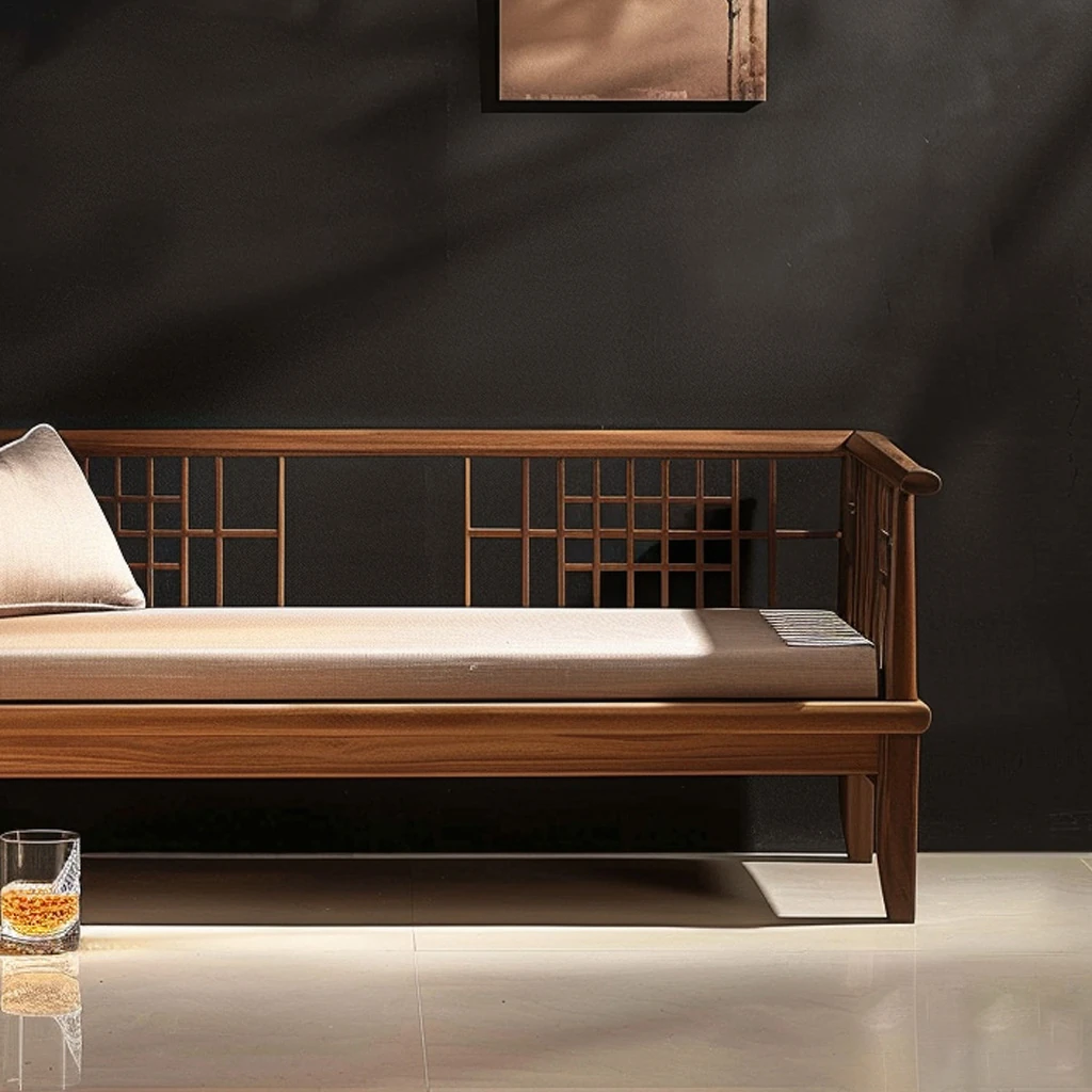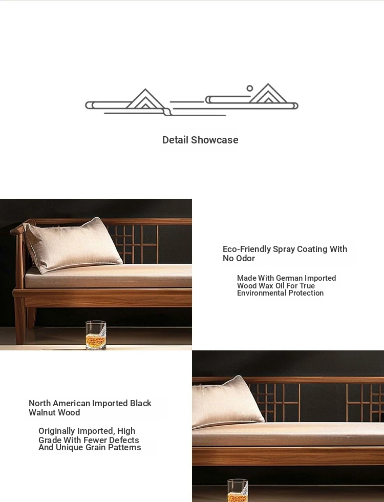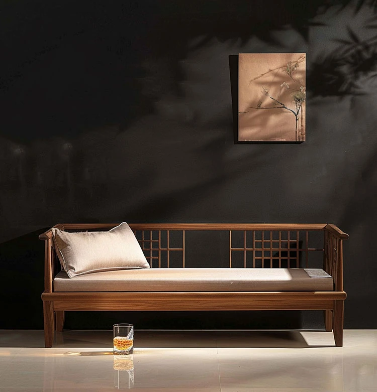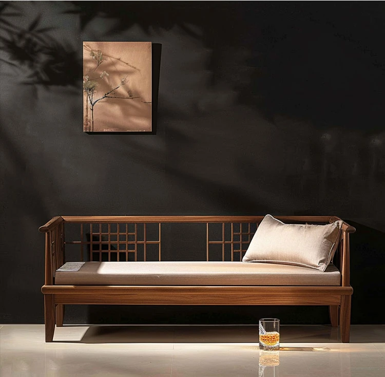 Zen-inspired New Chinese Style North American Black Walnut Chaise Lounge - Minimalist High-end Luxury Sofa for Hotels, Guesthouses, and Home Use
