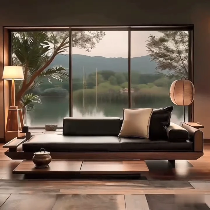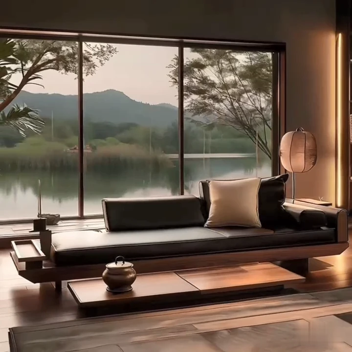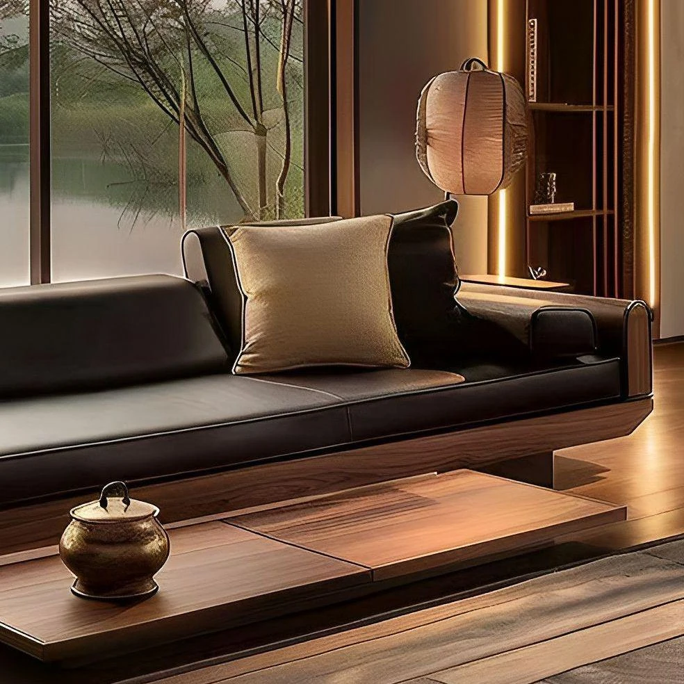 新中式高級実木ソファ2025年モデル|北米産ウォールナット材使用のラグジュアリーな別荘リビング用ストレートソファ|おしゃれで快適な空間を演出!