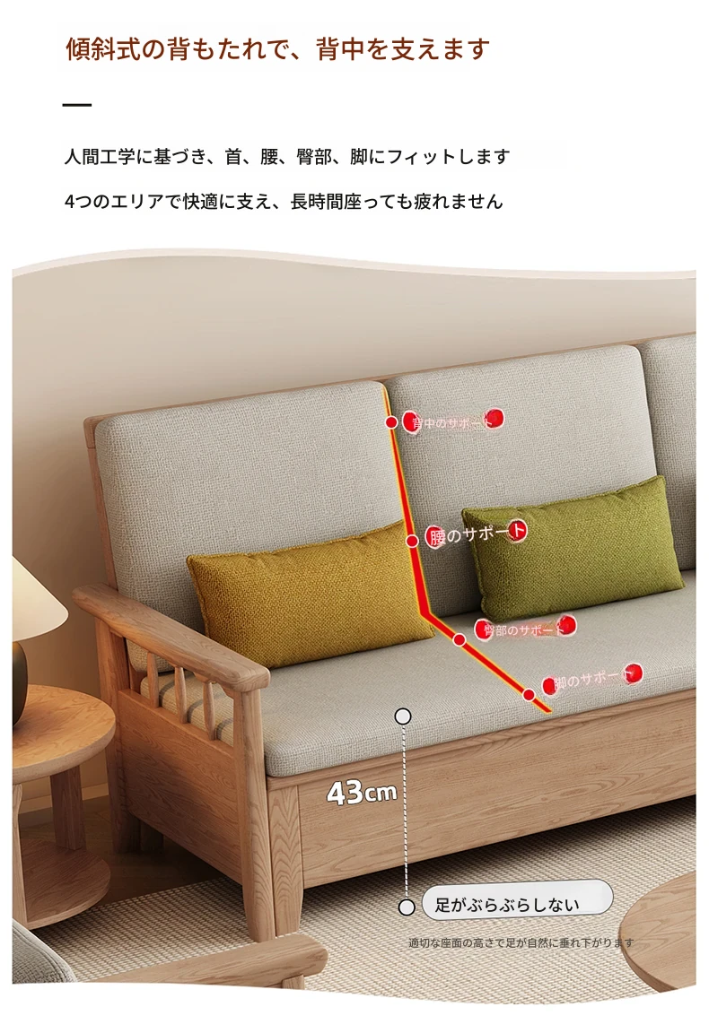 四人掛けソファ+貴妃ソファ+ロングコーヒーテーブル