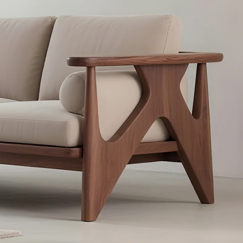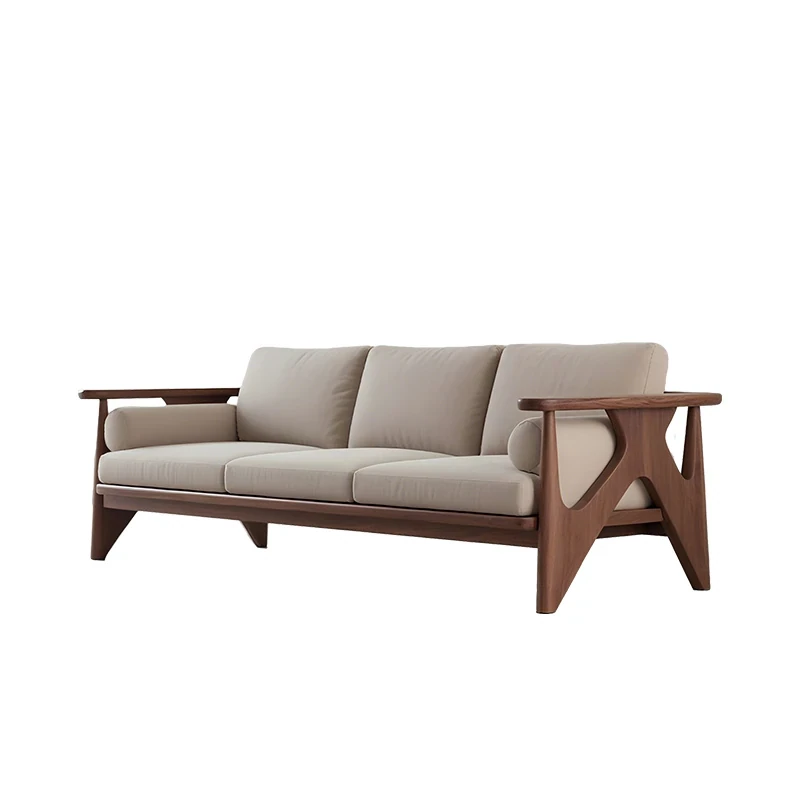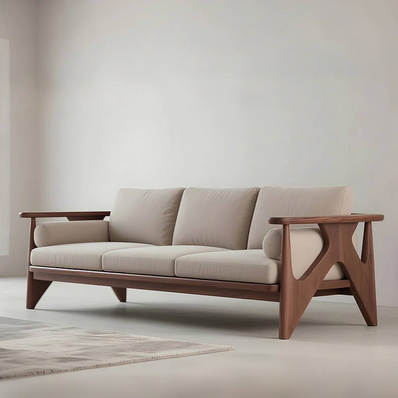 2025年新作!宋式美学のブラックウォールナット無垢材ソファ - 高級感あふれるリビング用3人掛けソファで、優雅な空間を演出します。快適さと美しさを兼ね備えた一品をお見逃しなく!