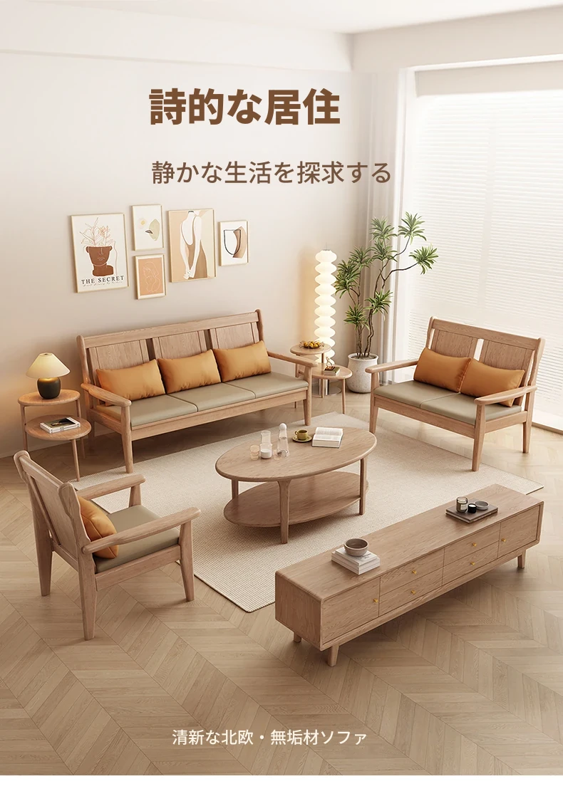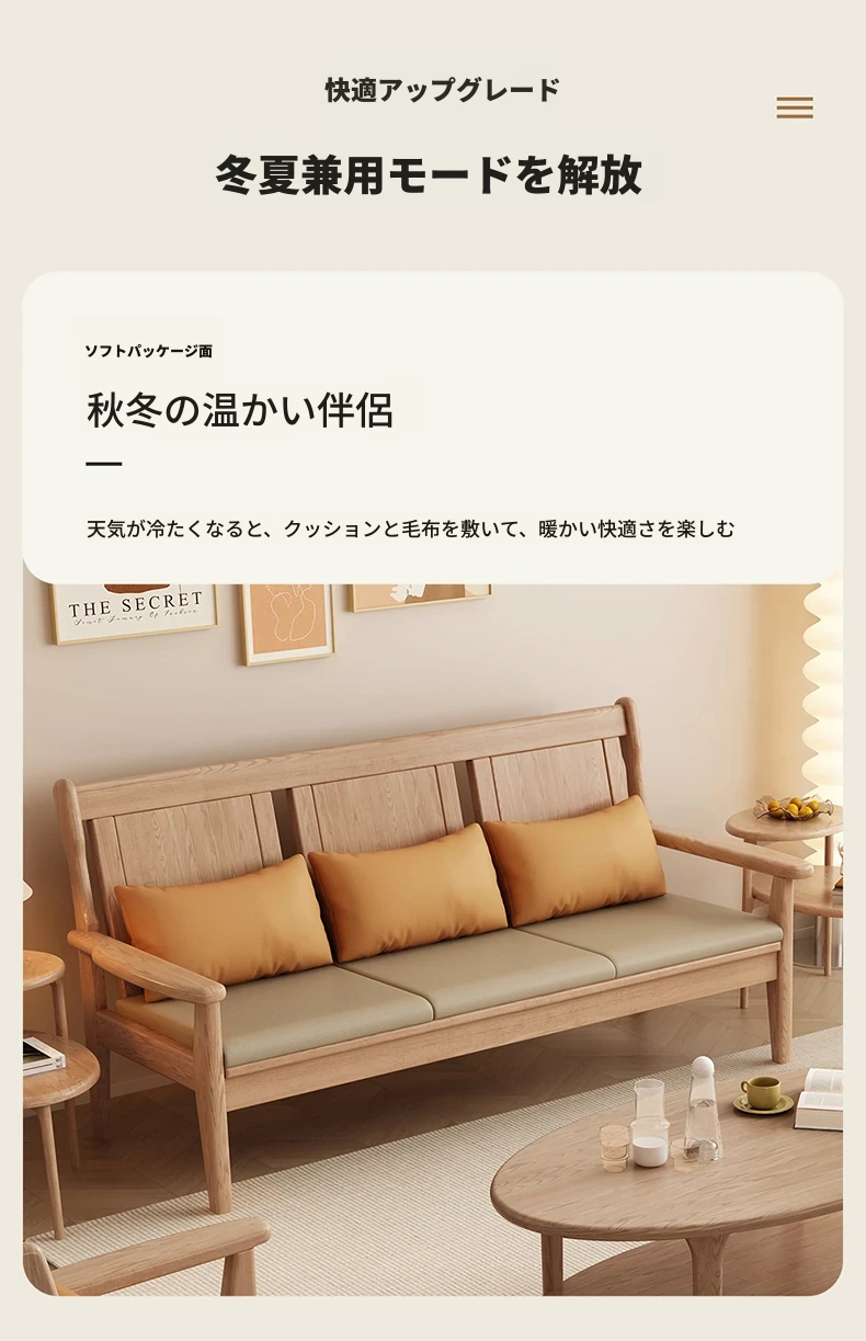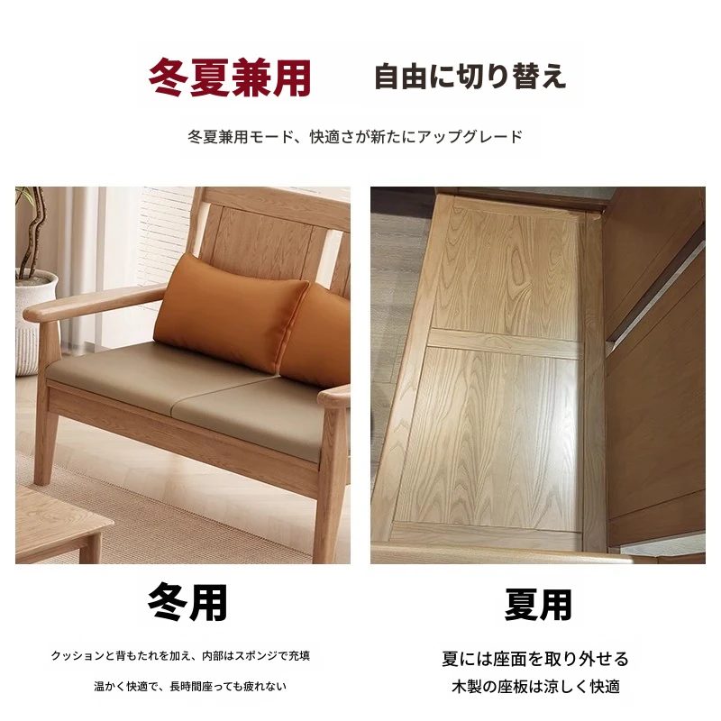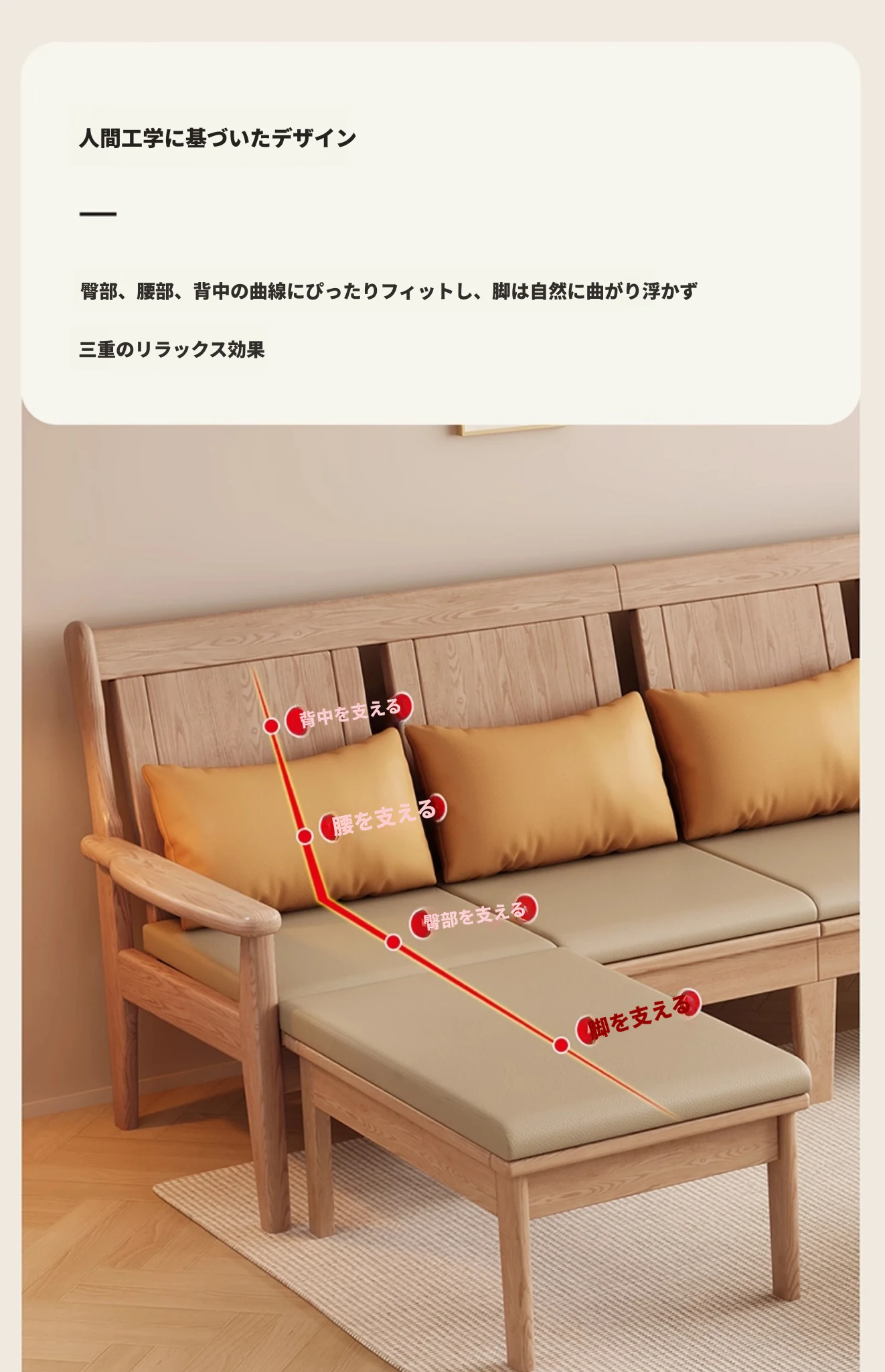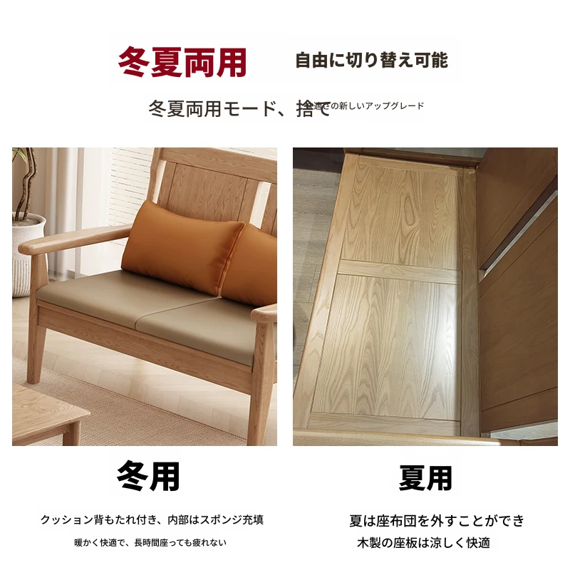 2025年新作!全実木ホワイトアッシュ製のストレートソファ - モダンでシンプルなデザイン、小型住宅に最適。冬も夏も快適に過ごせる、理想的なリビング空間を演出します!