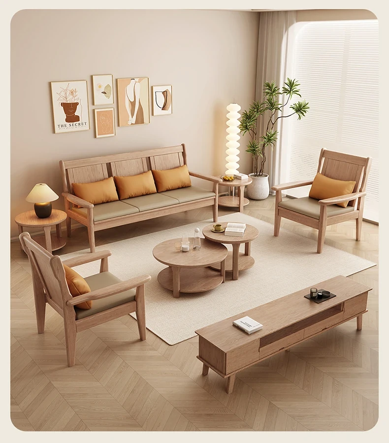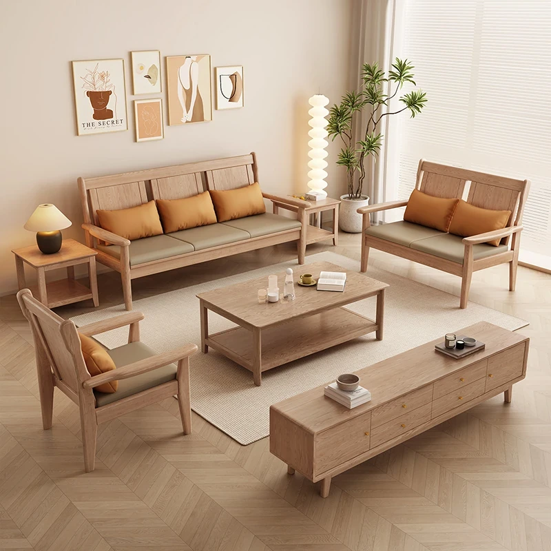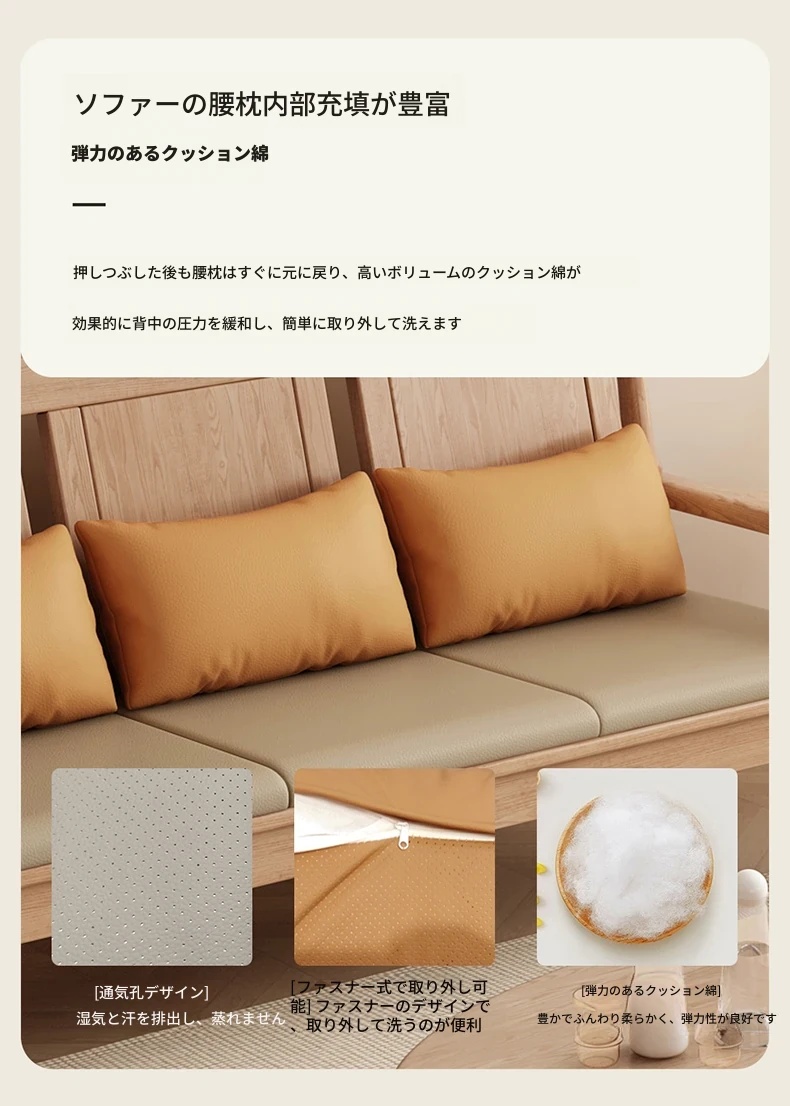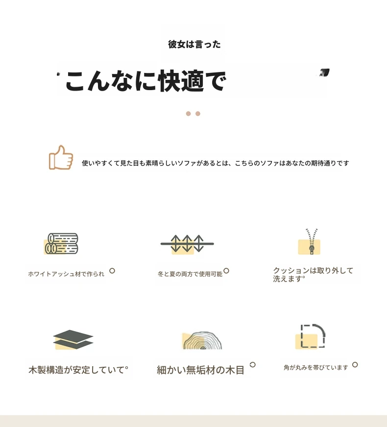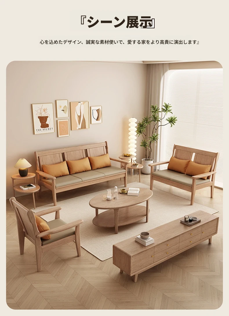 2025年新作!全実木ホワイトアッシュ製のストレートソファ - モダンでシンプルなデザイン、小型住宅に最適。冬も夏も快適に過ごせる、理想的なリビング空間を演出します!