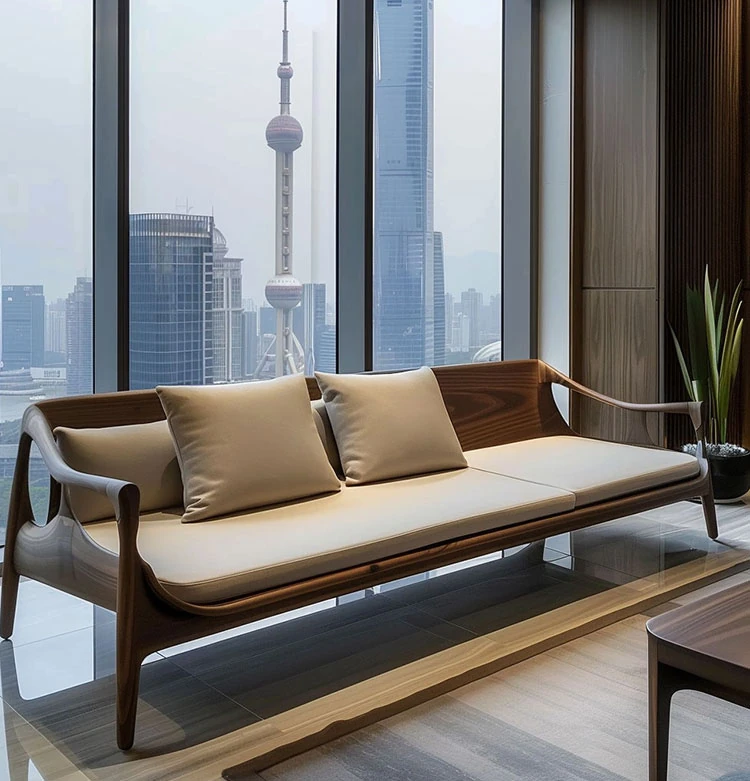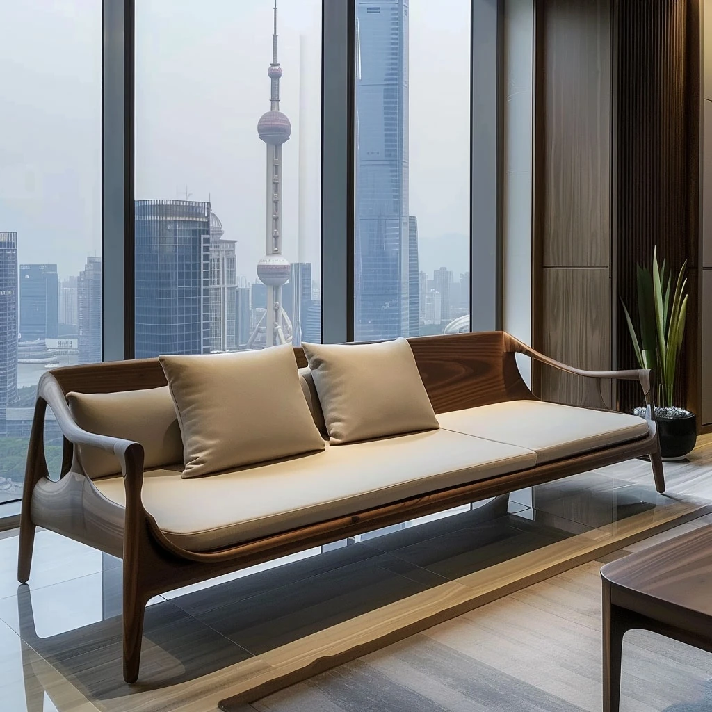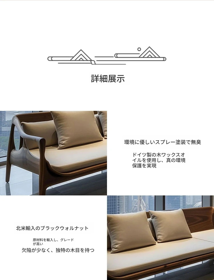 2025年新作!新中式胡桃木実木ソファ - モダンでラグジュアリーなシンプルデザイン、リビングにぴったりのストレートソファ。高品質な実木家具で、心地よいひとときをお届けします。