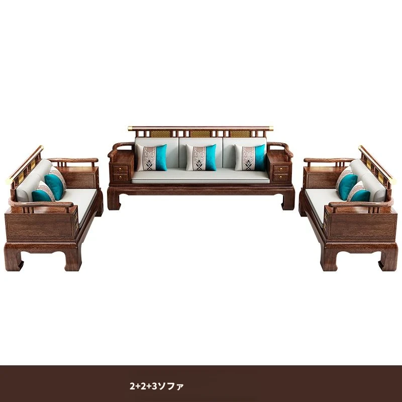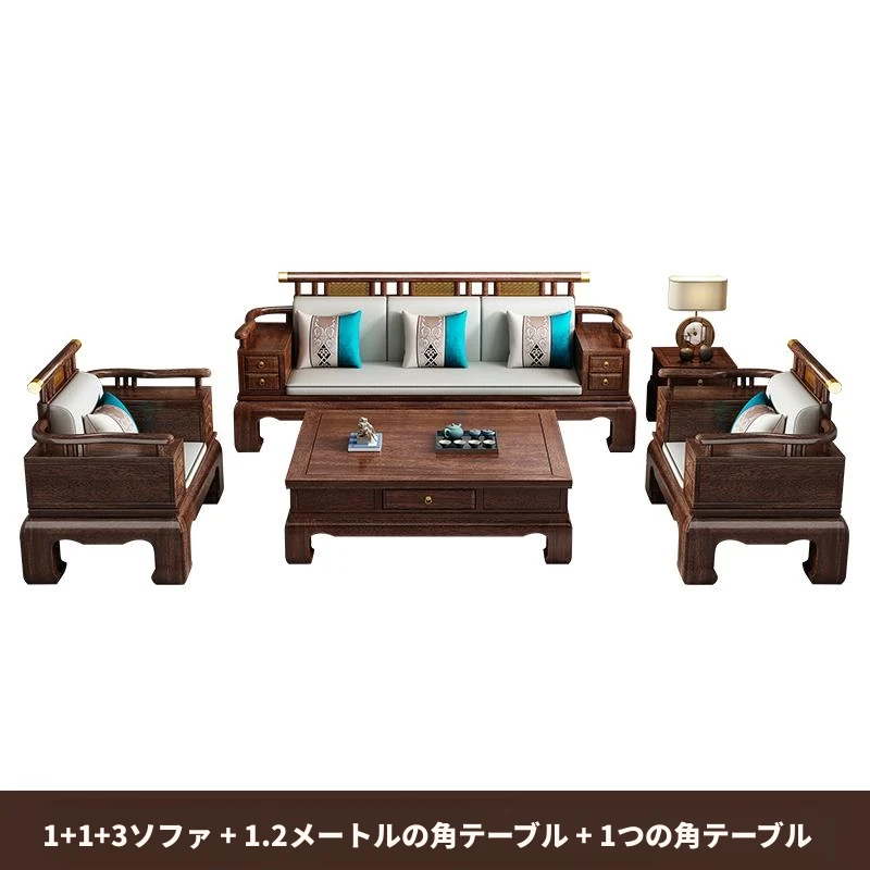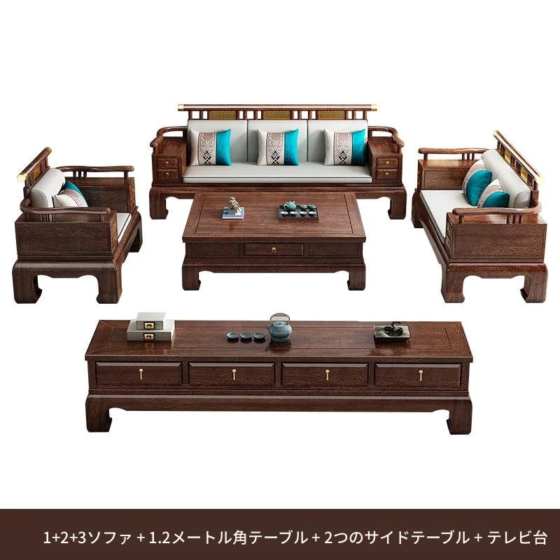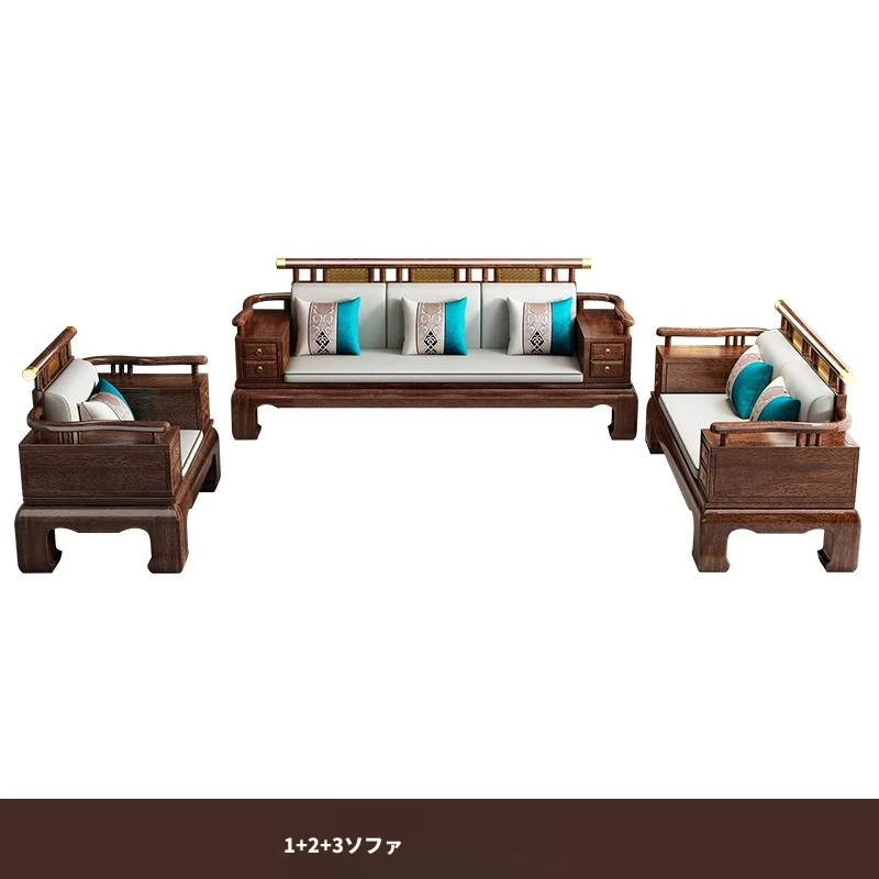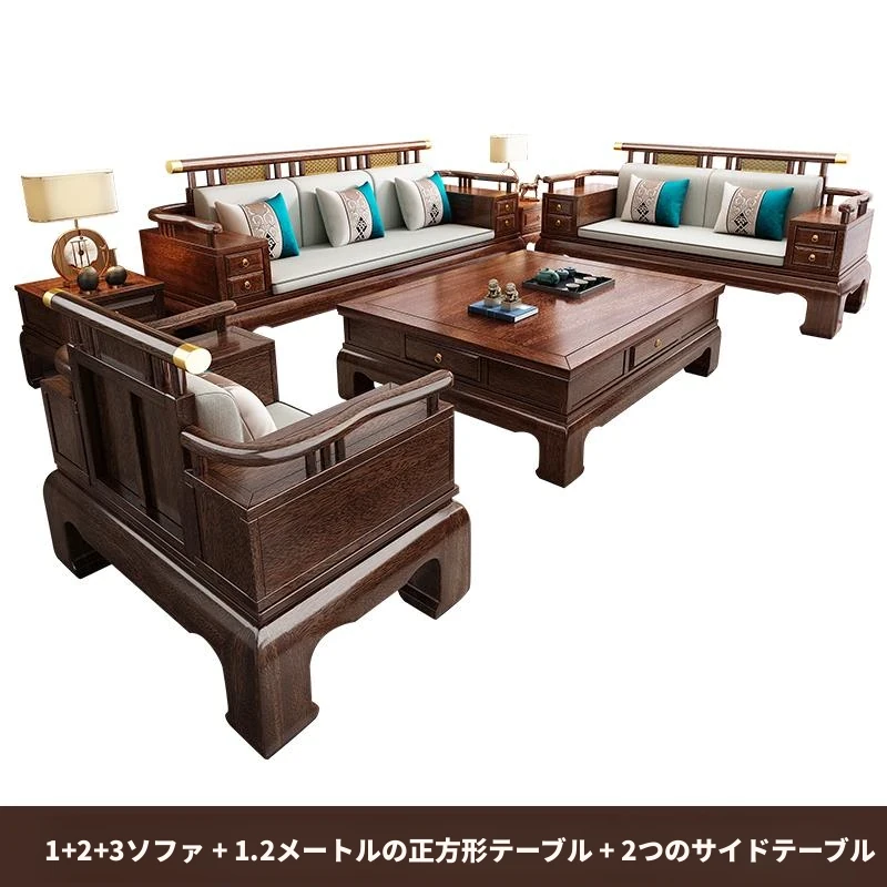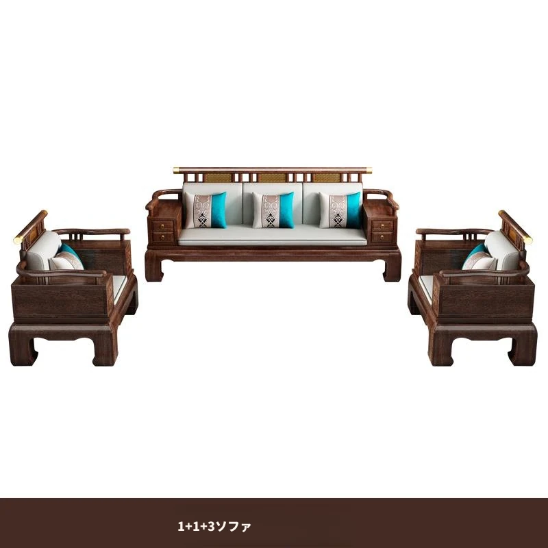 2025年新中式スタイルの高級ウッディソファセット|冬も夏も快適な大サイズリビング向けの純粋な黒檀無垢材家具で、上質な空間を演出!