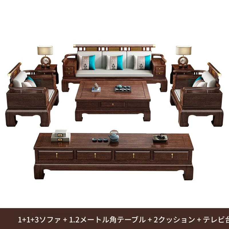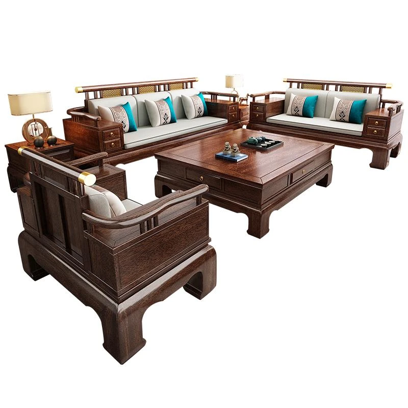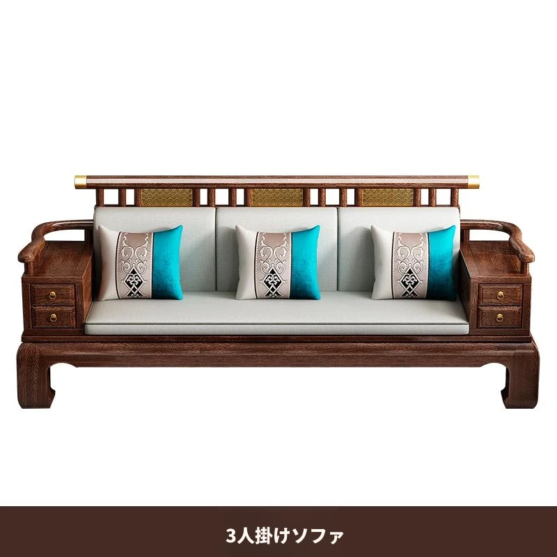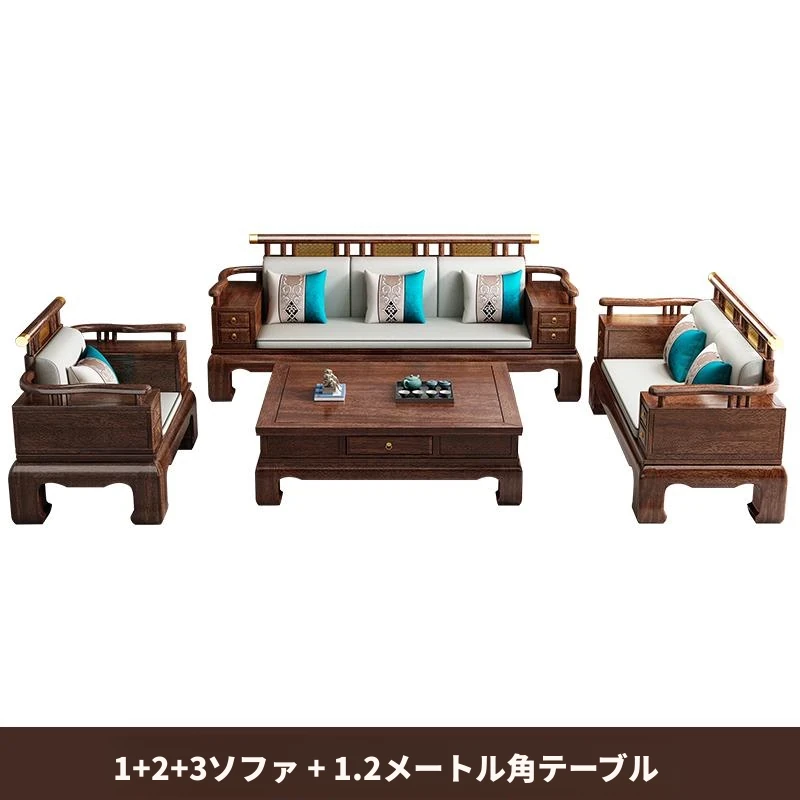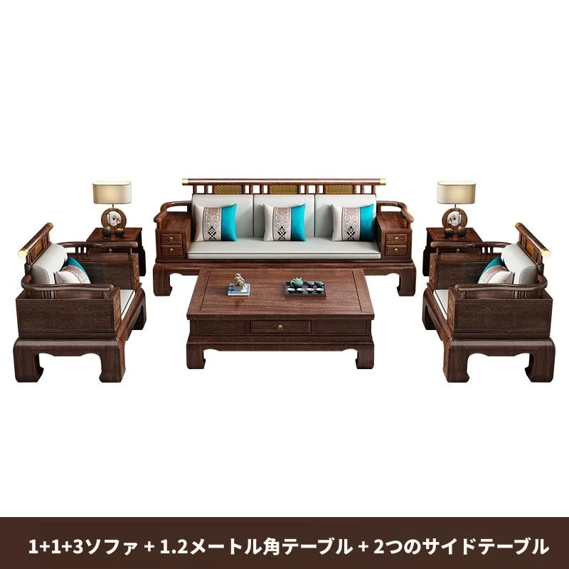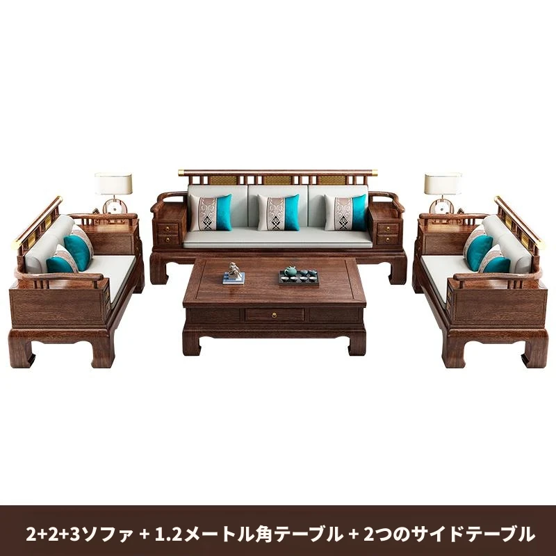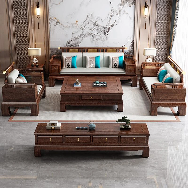 2025年新中式スタイルの高級ウッディソファセット|冬も夏も快適な大サイズリビング向けの純粋な黒檀無垢材家具で、上質な空間を演出!