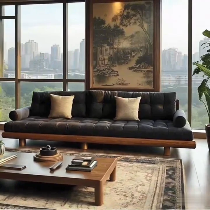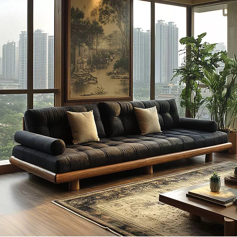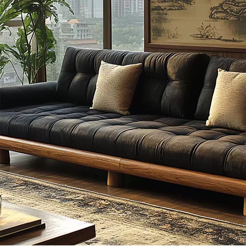 2025 New Chinese Style Solid Wood Sofa - Luxury North American Black Walnut Furniture for Villas and Living Rooms - Elegant Vintage Design