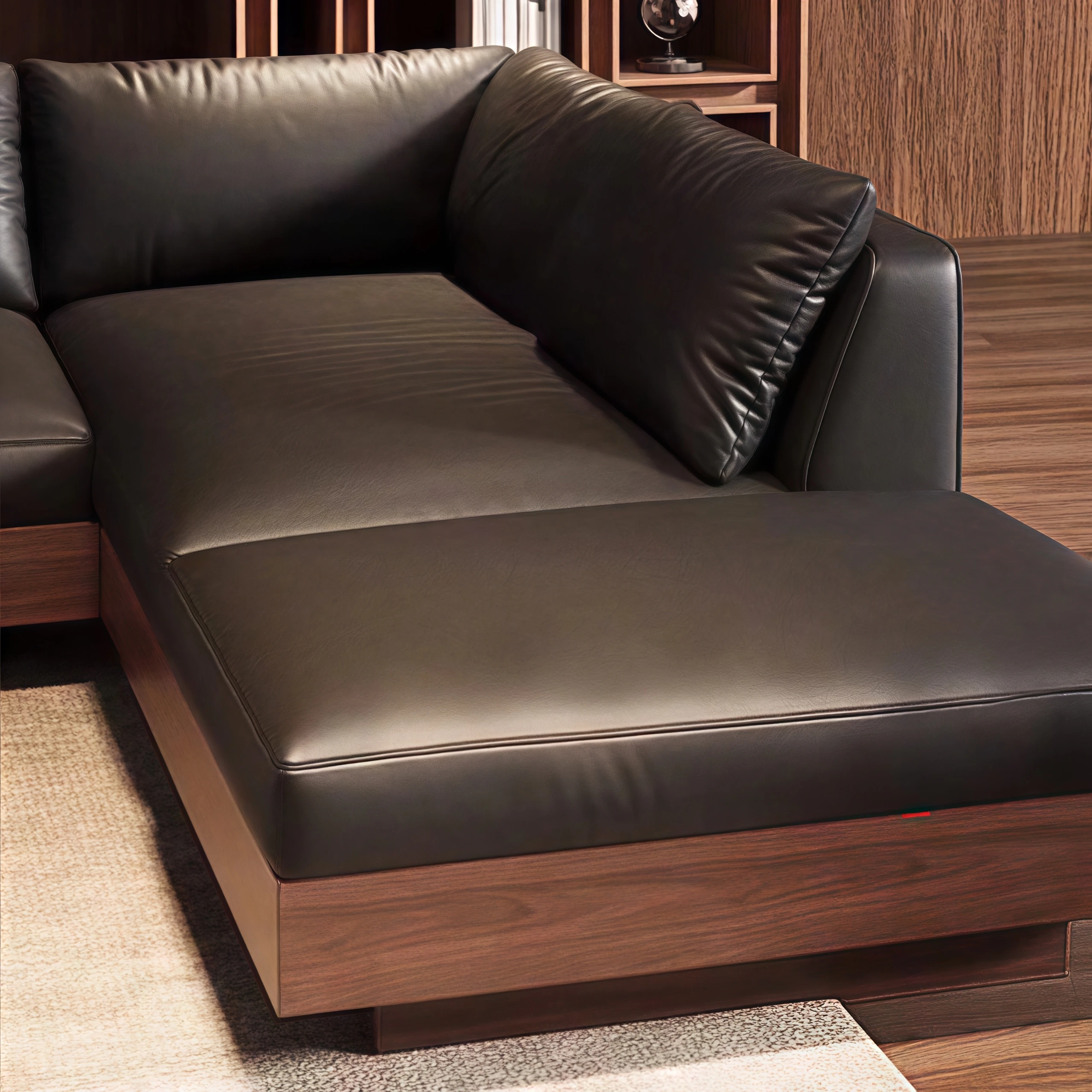 角にぴったりの本革ソファ!高級木製フレームと贅沢な牛革を使用したモダン欧風デザイン。広々としたリビングに最適なコンビネーションで、上質な座り心地を提供します。あなたの居間を特別な空間に変えましょう!