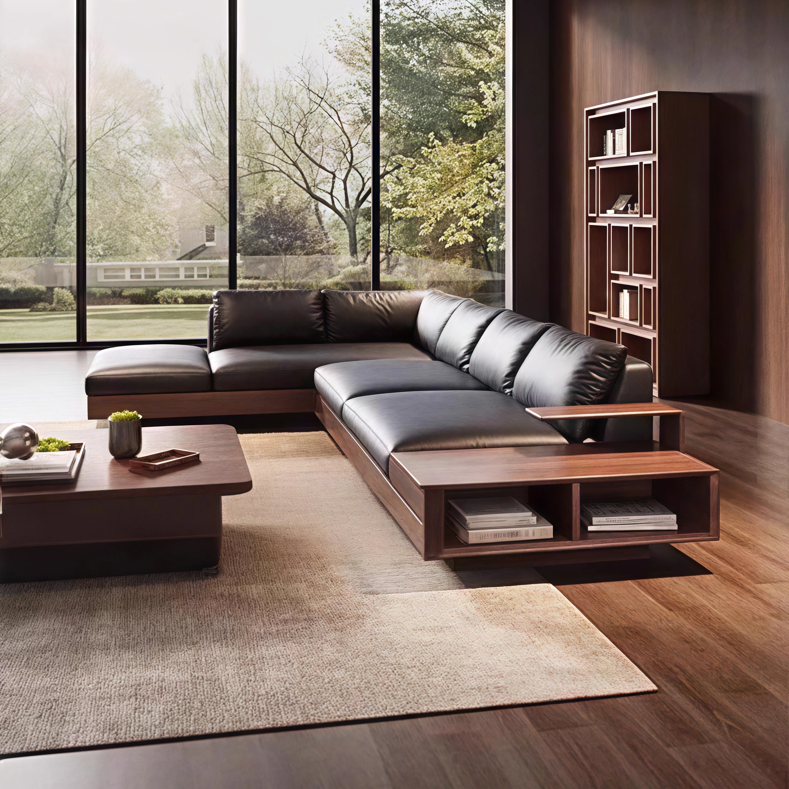 高級新中式ソファー ウーキン材の無垢材使用!リビングにぴったりな広々としたデザインで、別荘や豪邸、クラブハウスにも最適。モダンでシンプルなスタイルが魅力の大空間向けソファーです。