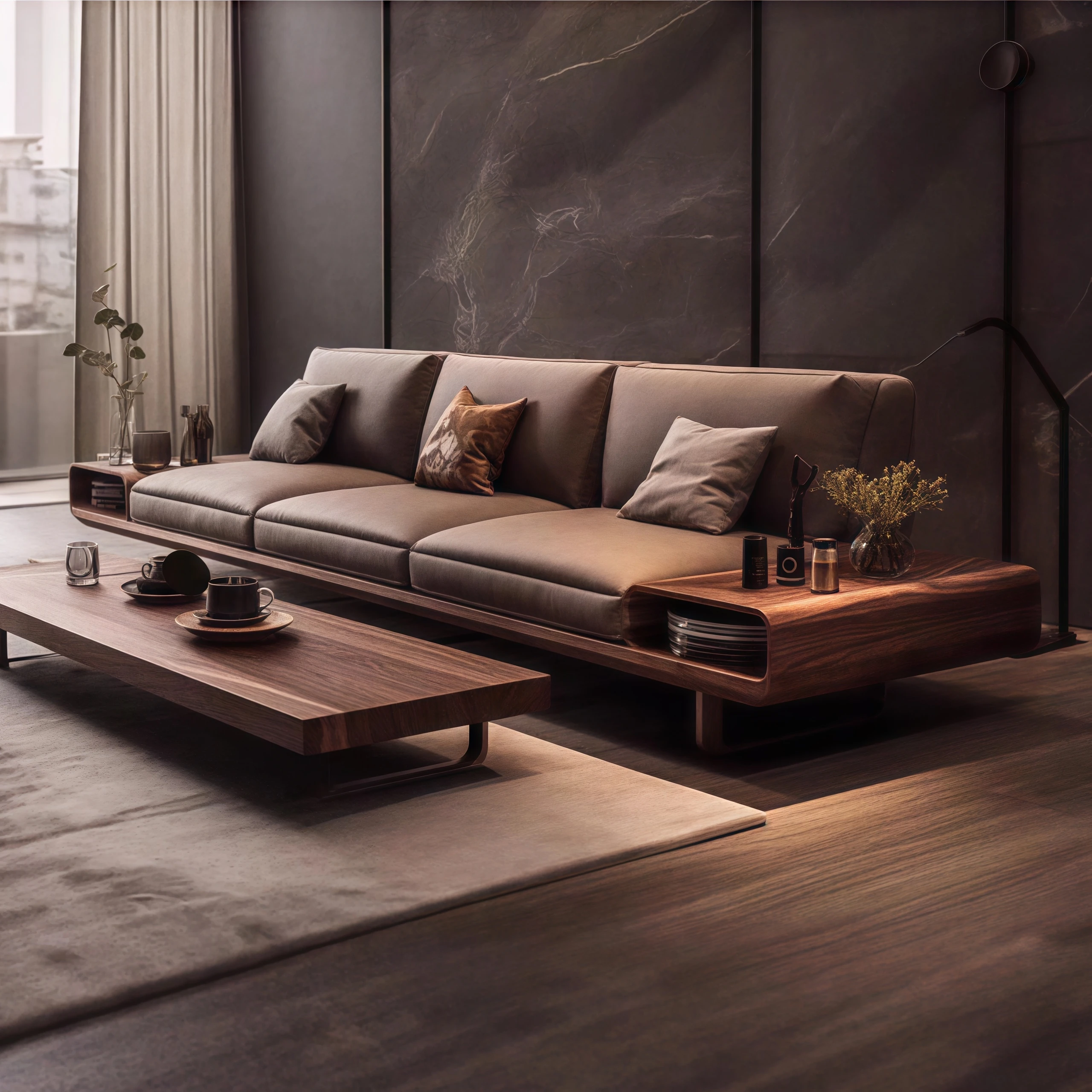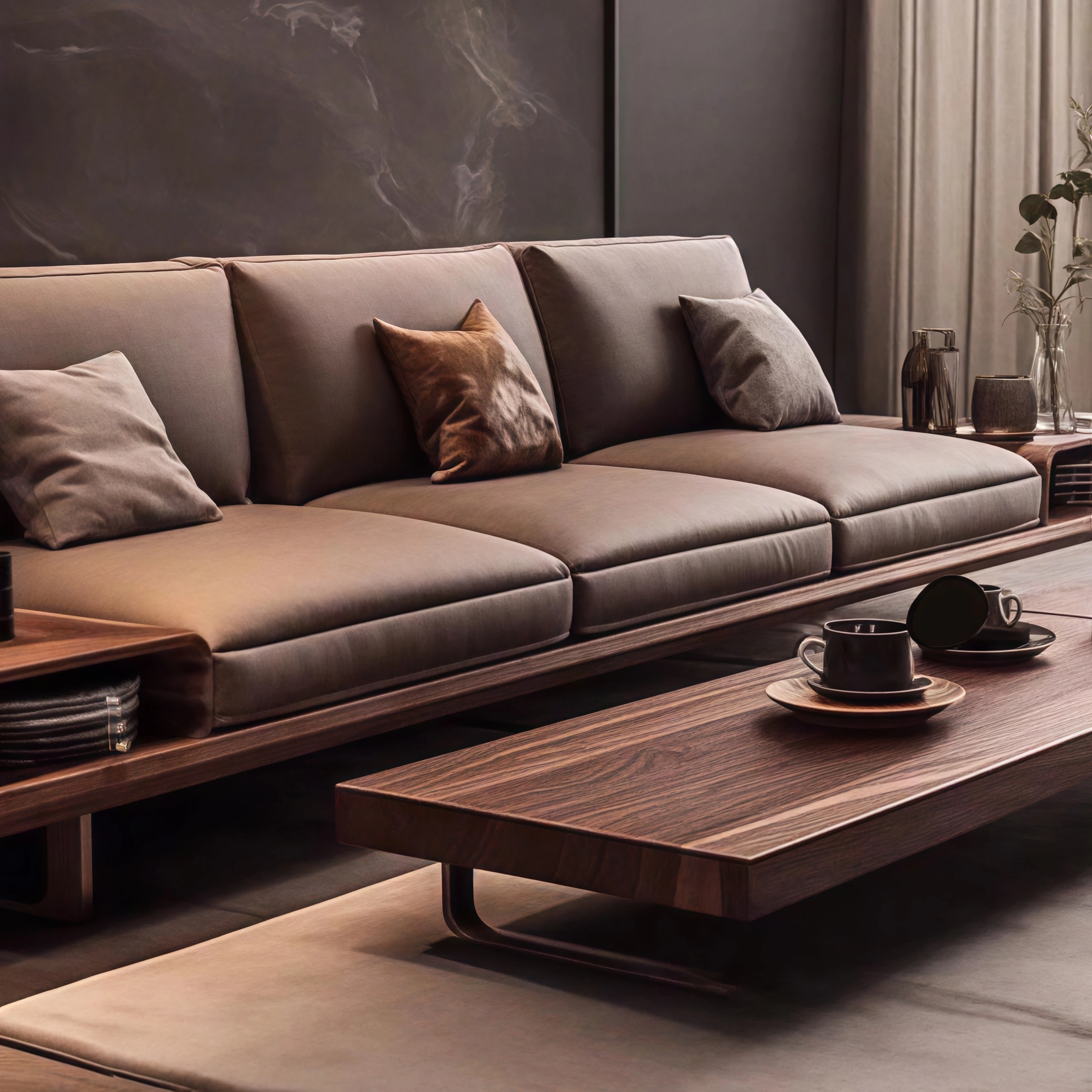 2025年新作!新中式胡桃木直排ソファ - モダンでシンプルなデザイン、大小さまざまなリビングに最適な無垢材ソファ!快適な座り心地で、上質なひとときを演出します。