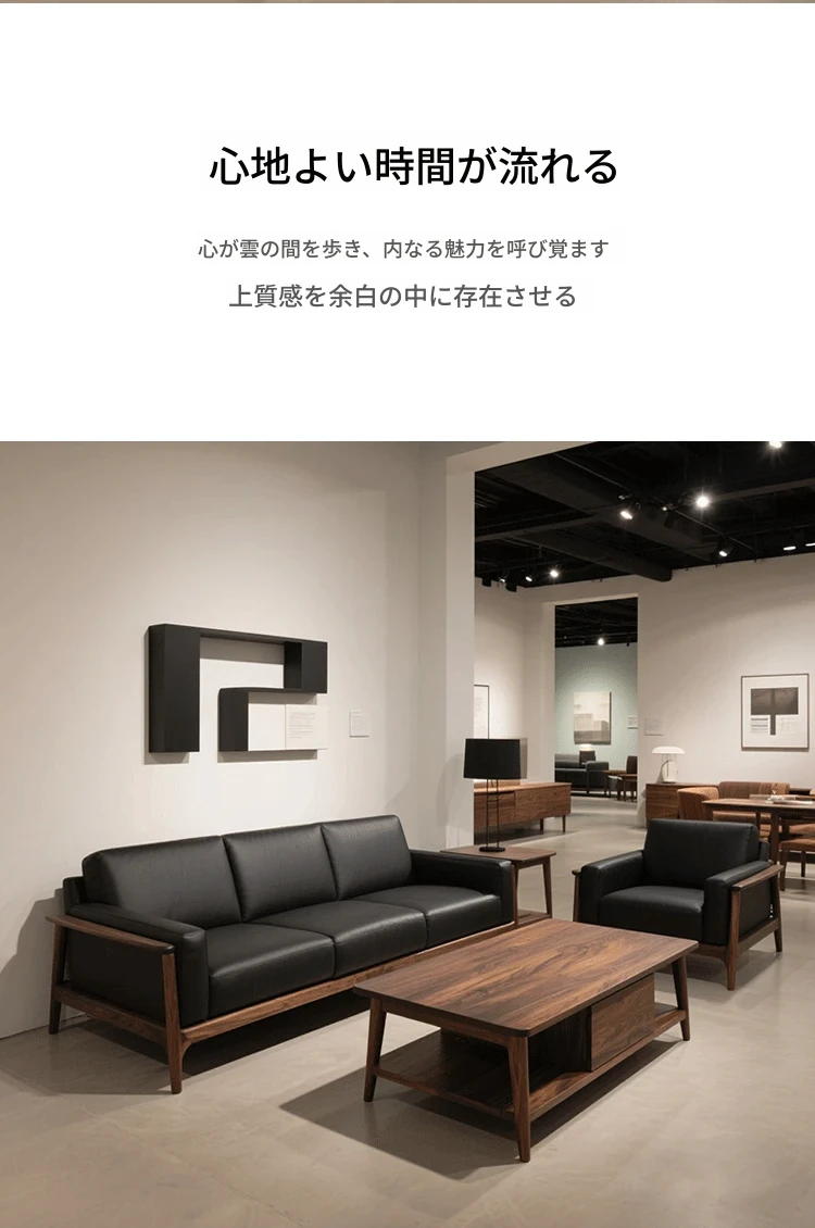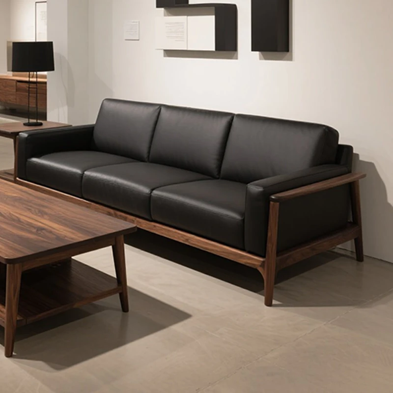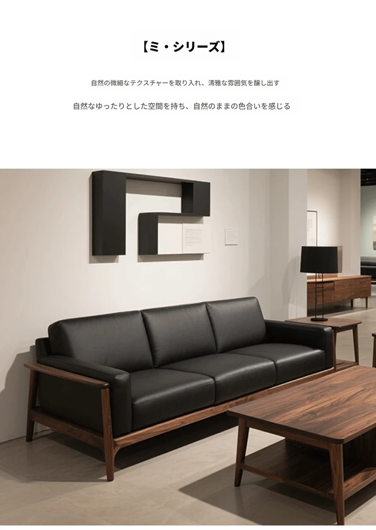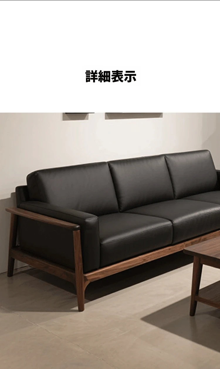 2025年新作!高級感あふれるミッドセンチュリースタイルのブラックウォールナット無垢材ソファ - 1人用&3人用、現代的なリビングにぴったりの直排デザイン!